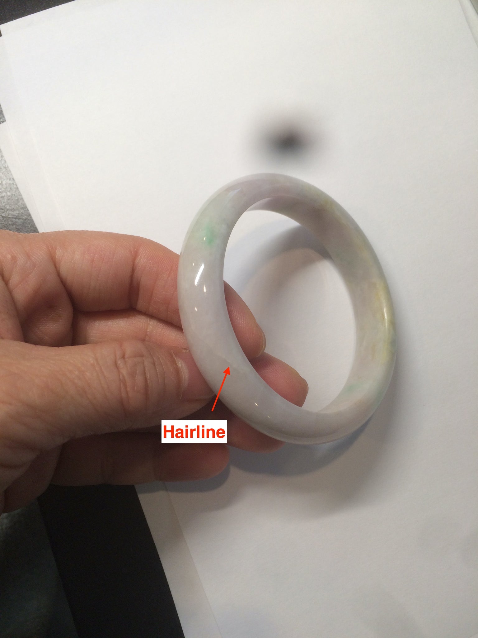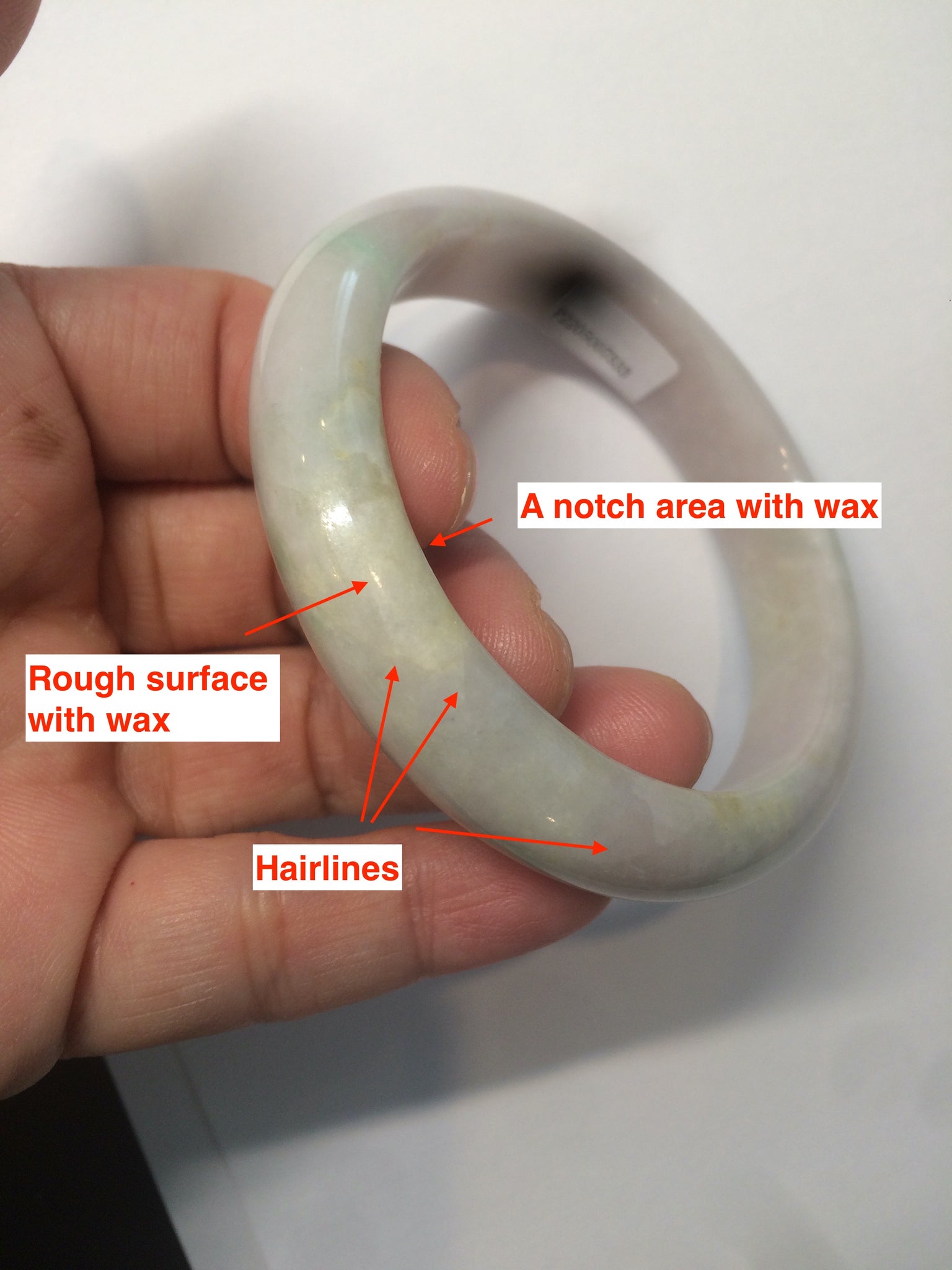 Imperfections: 2 color root cracks on the inner side of the bangle with wax. Some rough surfaces with wax. A notch area with quite amout of wax(price consider this already). Some hairlines. Some cotton areas, white cotton spots, or lines. TThe purple is lighter than in the photos due to purple being always camera-friendly.