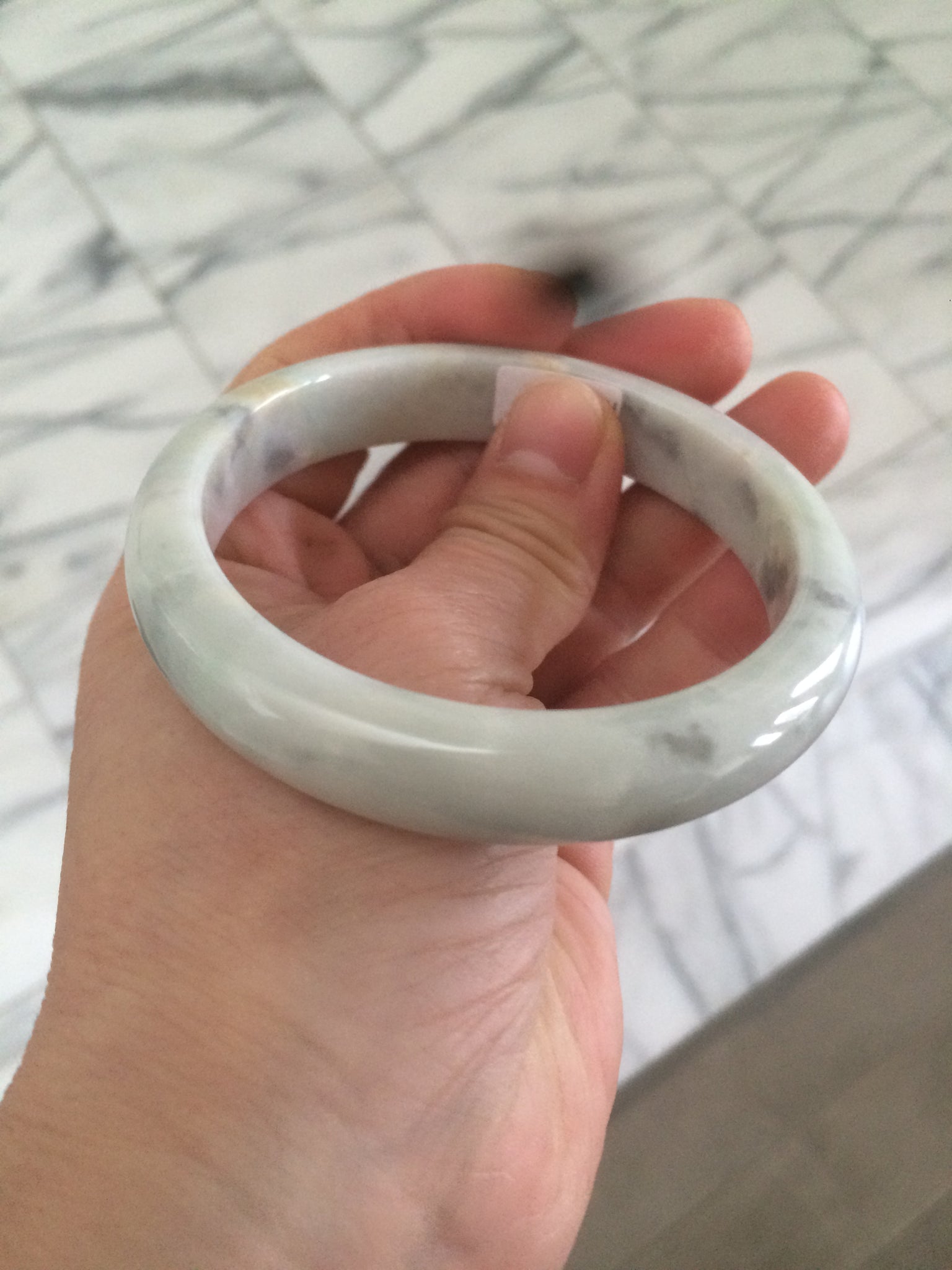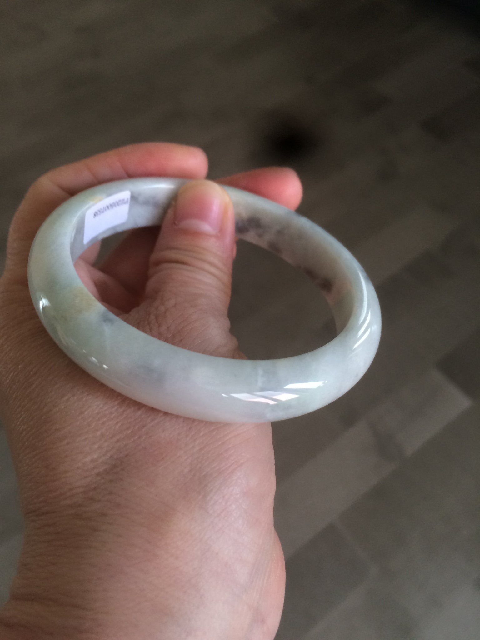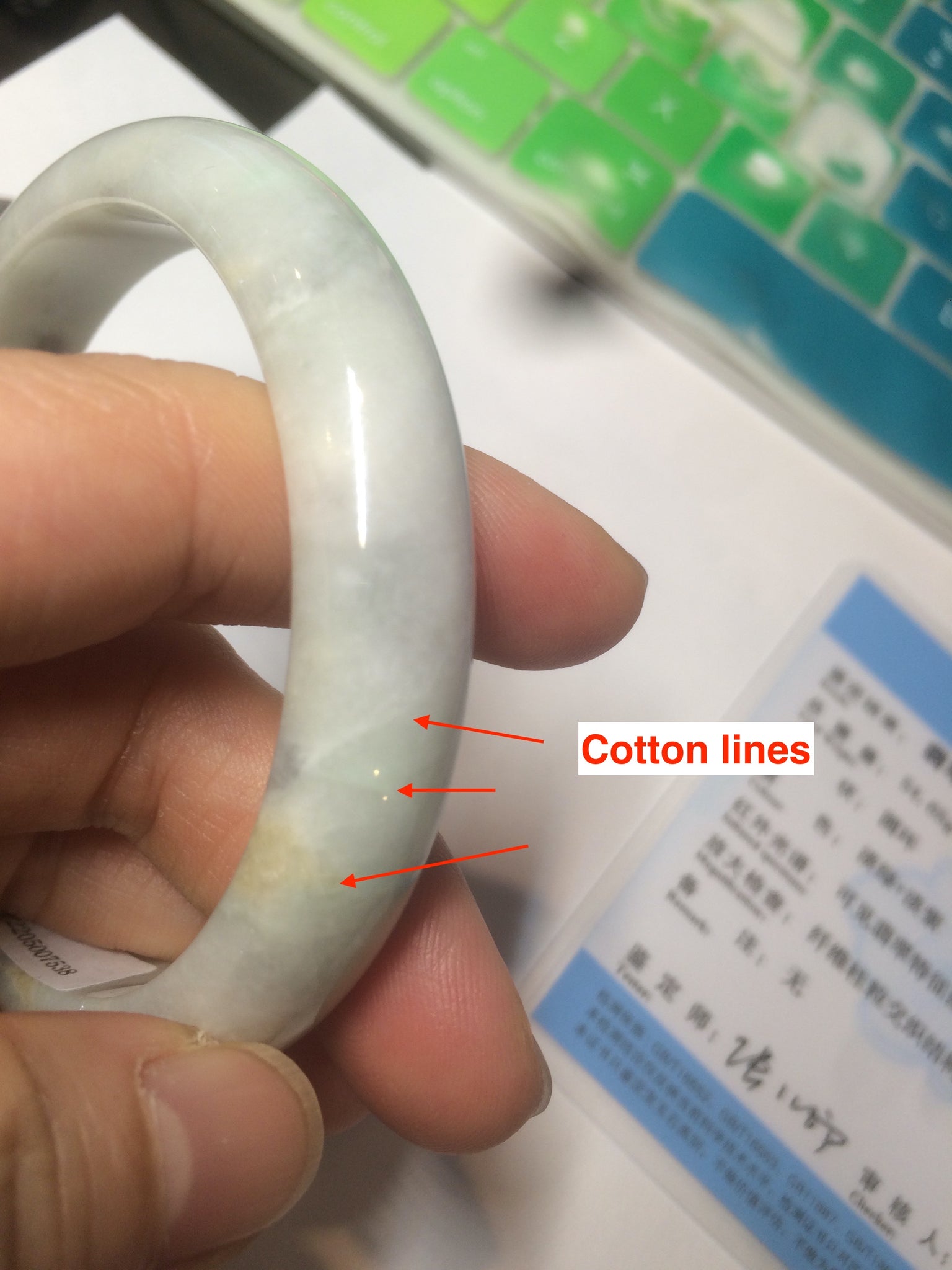 No crack. No hairline. Some cotton lines and structure lines. Porcelain background. Fine texture but not transparent. Cotton spots and areas. The purple is really light. Lighter than in the photos. Has some gray color.