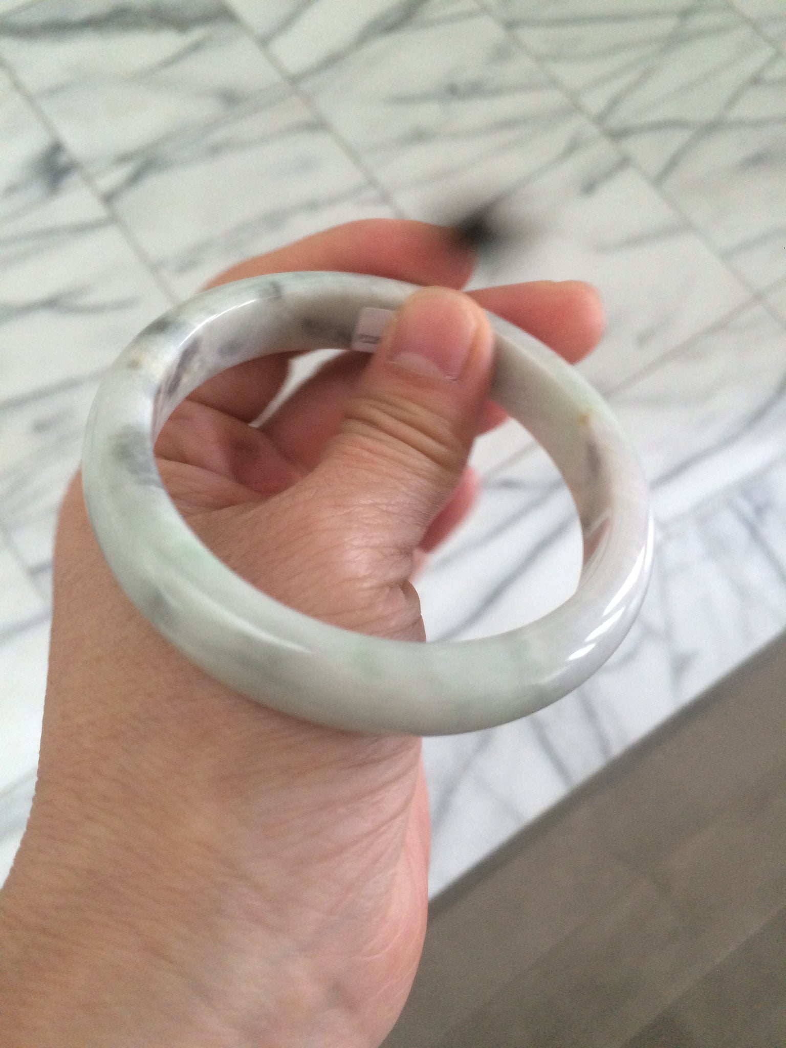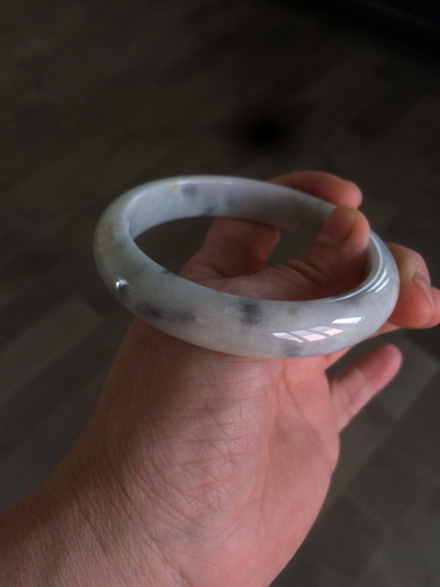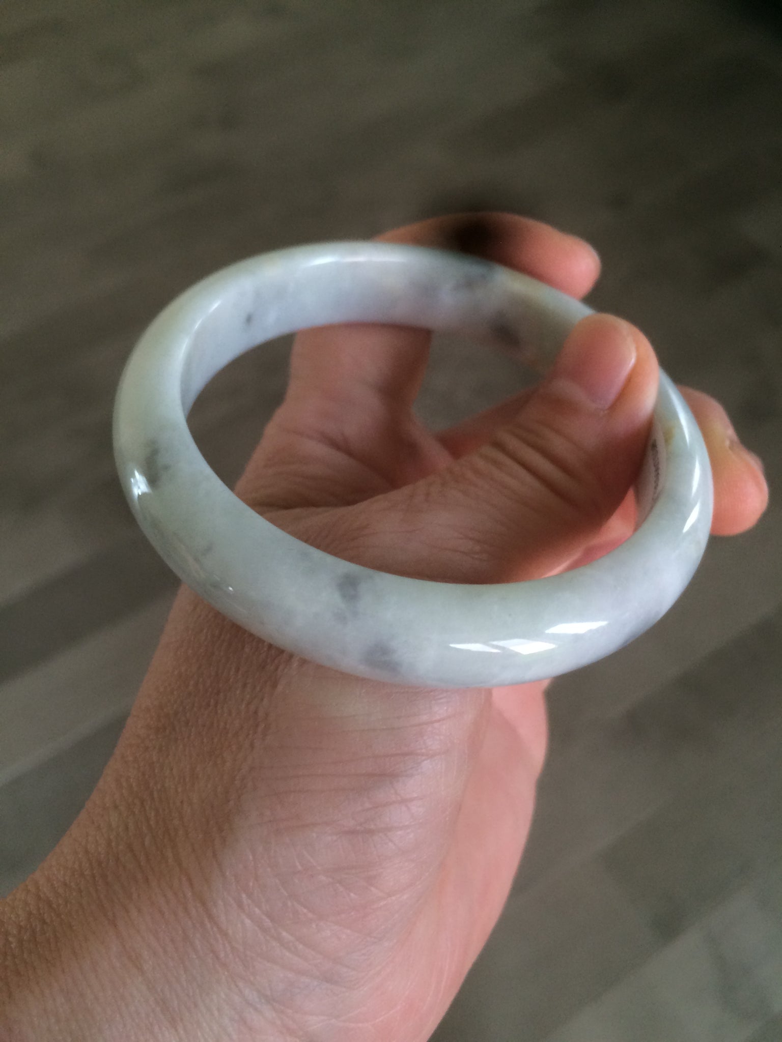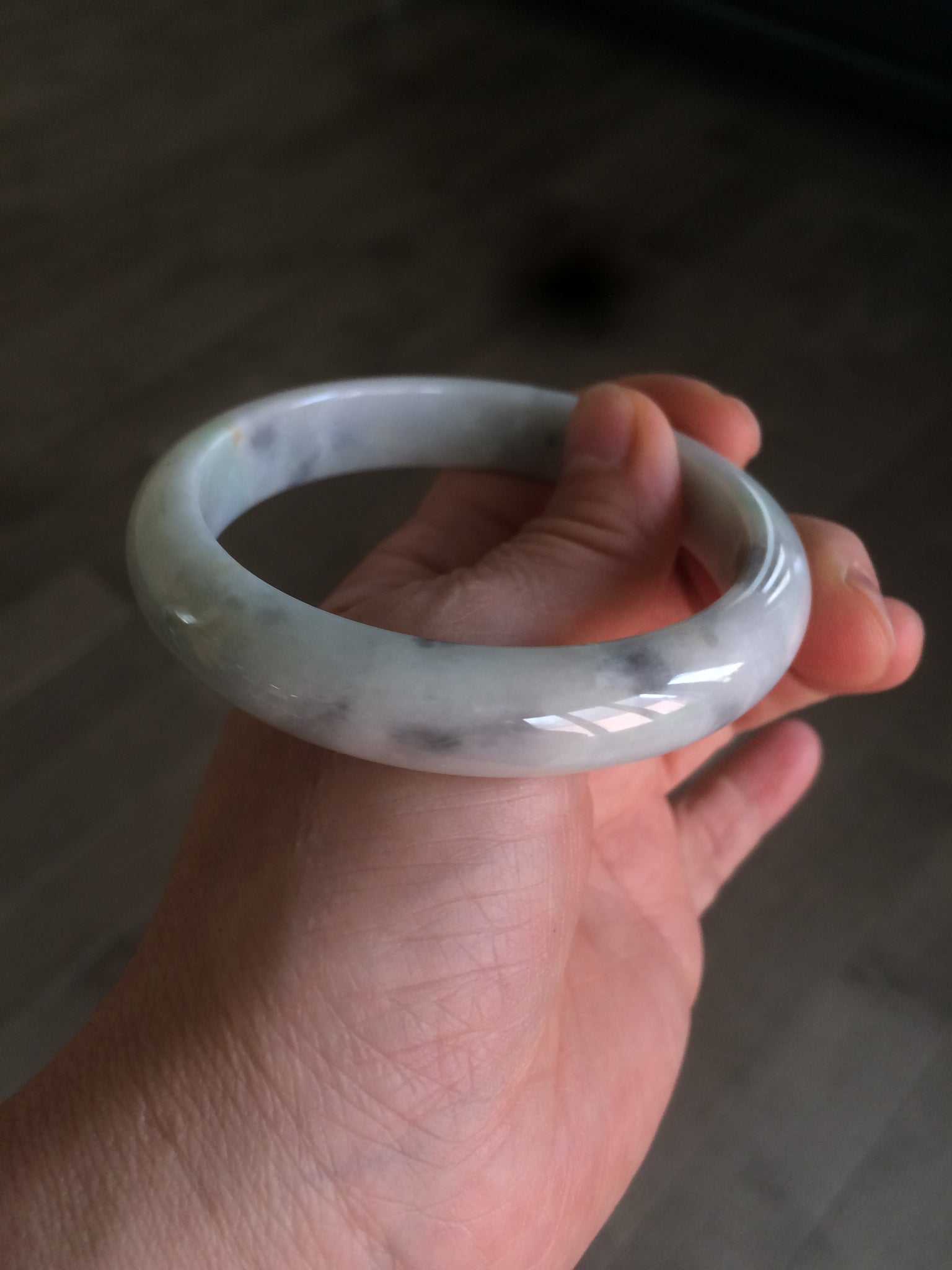 No crack. No hairline. Some cotton lines and structure lines. Porcelain background. Fine texture but not transparent. Cotton spots and areas. The purple is really light. Lighter than in the photos. Has some gray color.