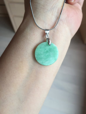 23.5/4.9mm Type A 100% Natural green white Jadeite Jade Safety Guardian Button donuts Pendant BP115