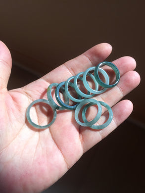 18.8mm size 8 3/4 100% natural type A icy watery green/blue slim style Guatemala jadeite jade band ring group BP73
