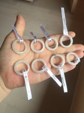 Size 5-10 1/4 100% natural type A white light green jadeite jade band ring group E93