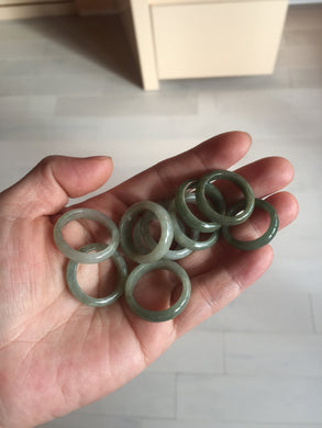 14.3-17.3mm 100% natural type A icy watery light green jadeite jade band ring beads group BL10