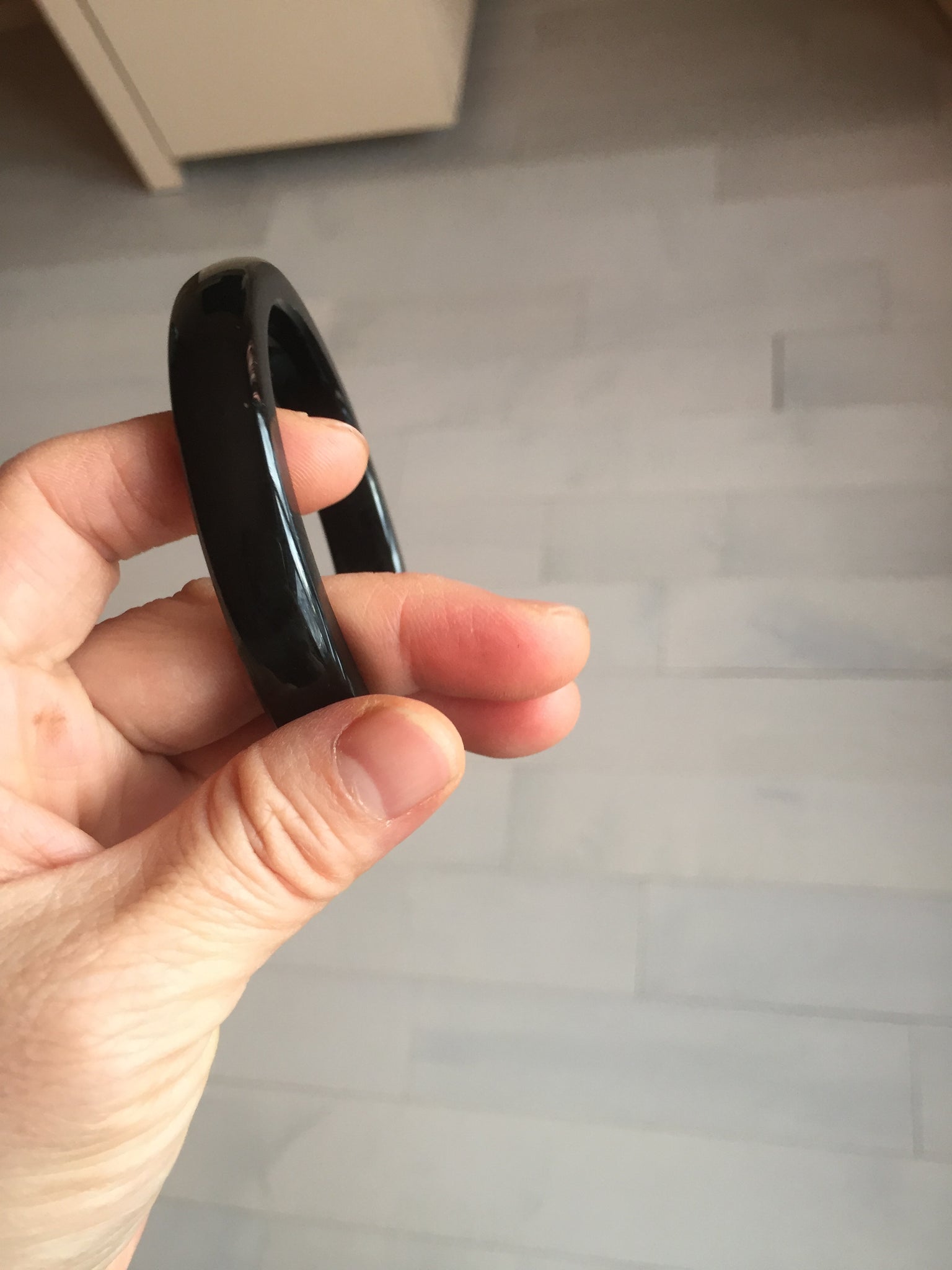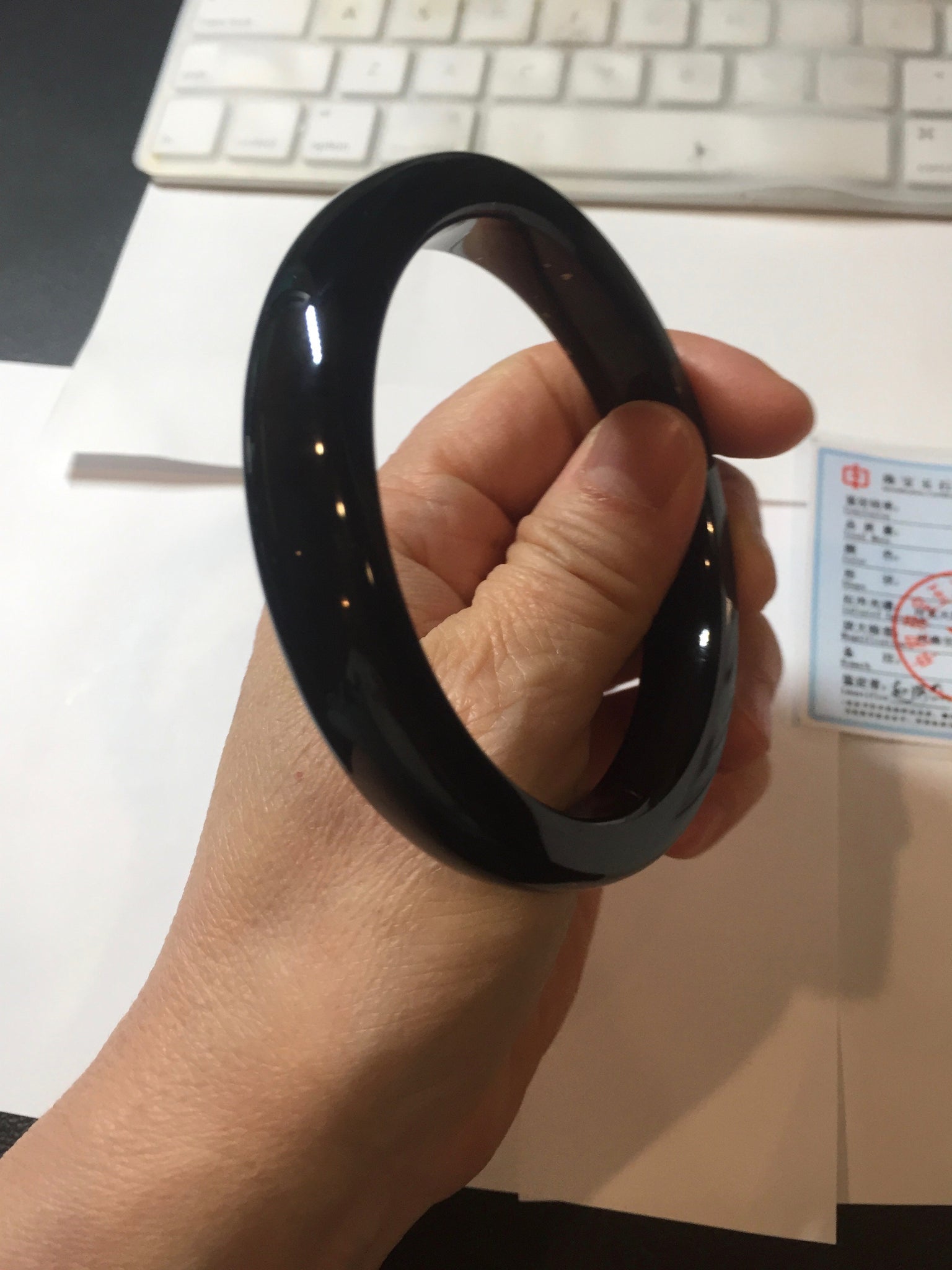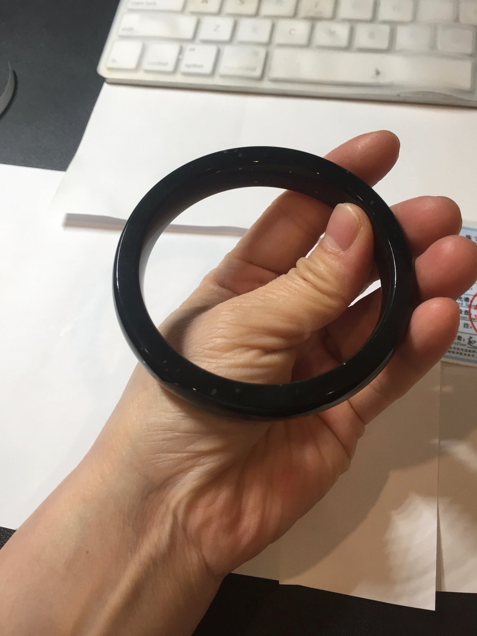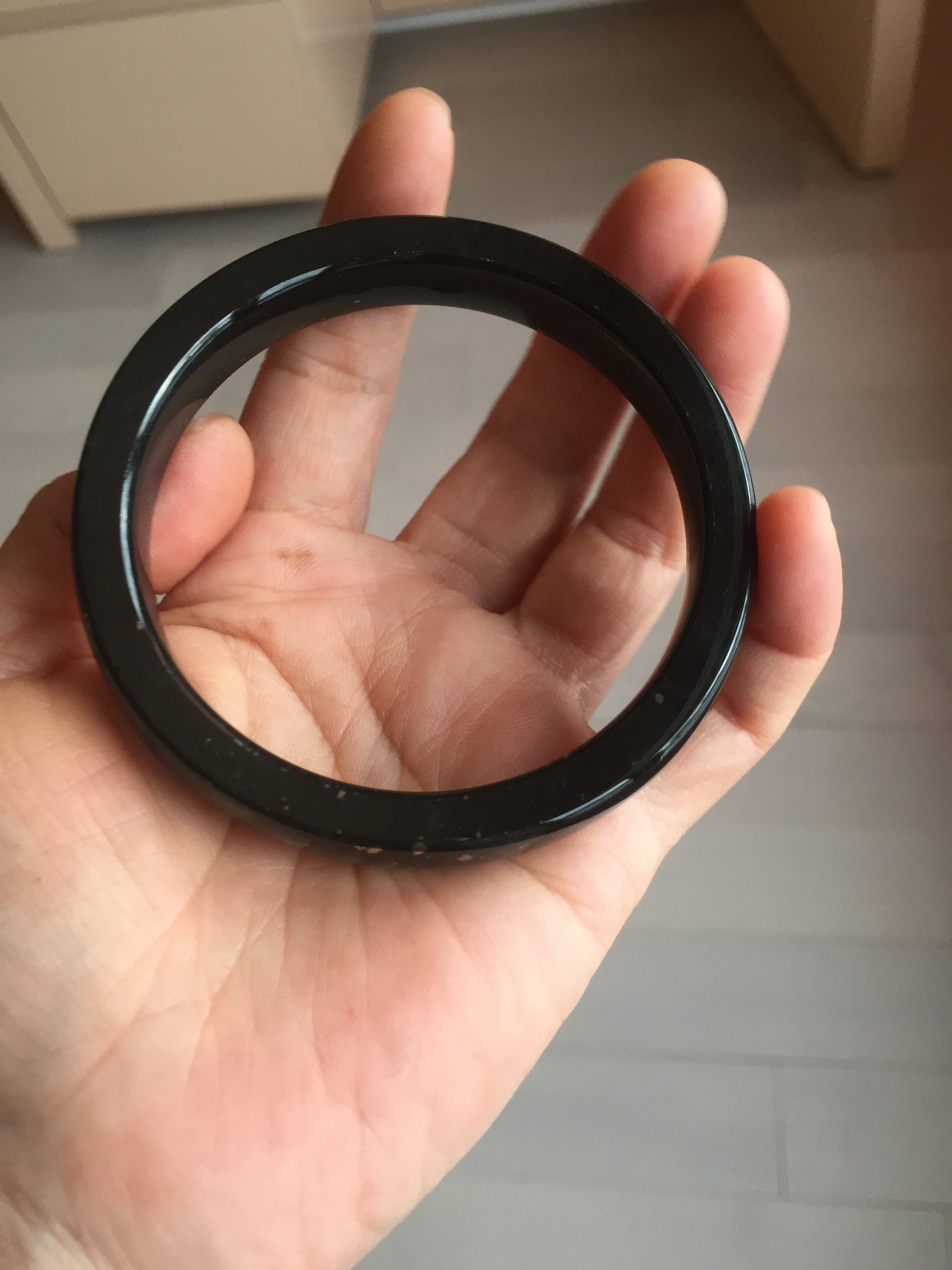 No crack. No hairline. A few metal spots. The metal spots are naturally formed, not inlaid. It is dark green. Under normal light, it is more close to black.