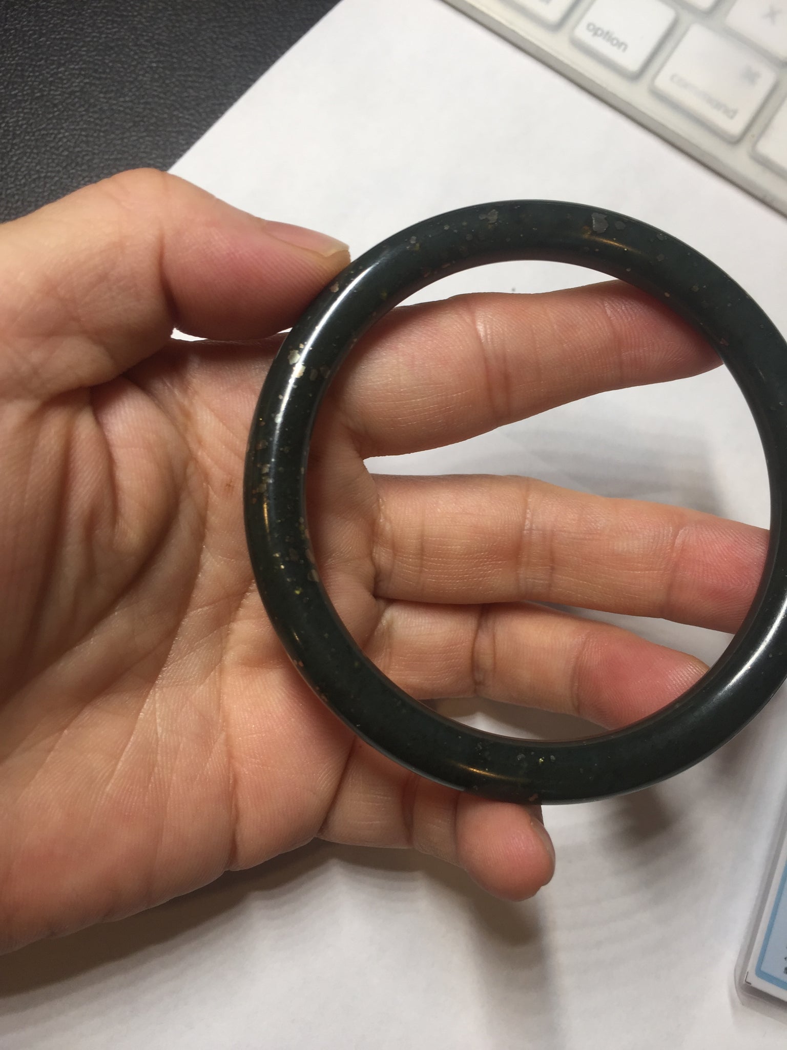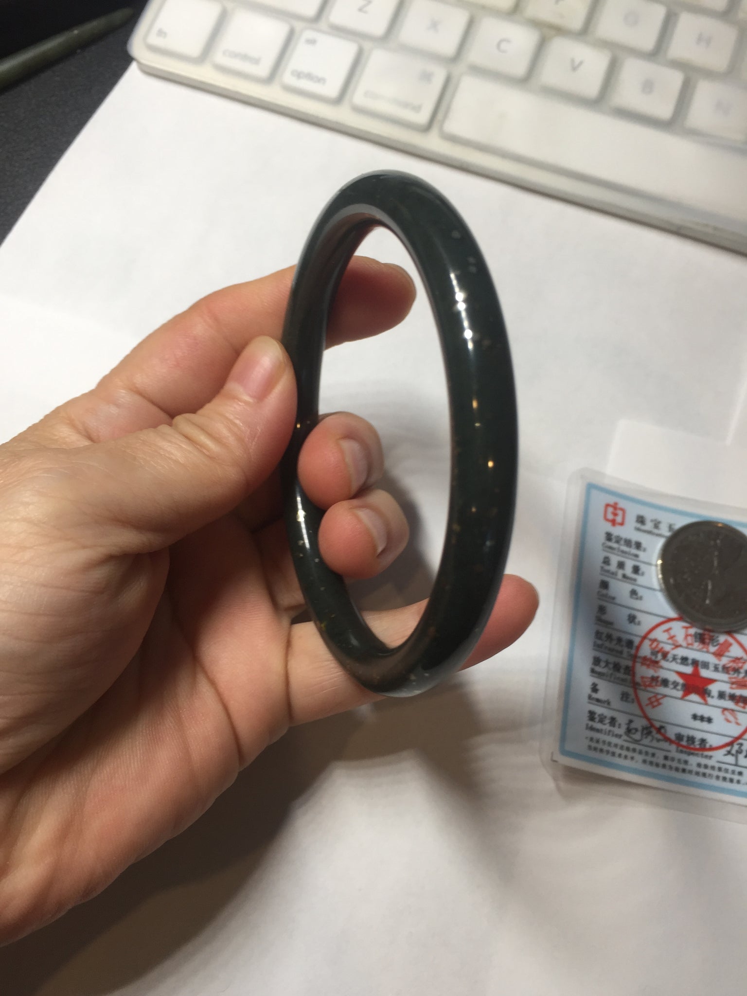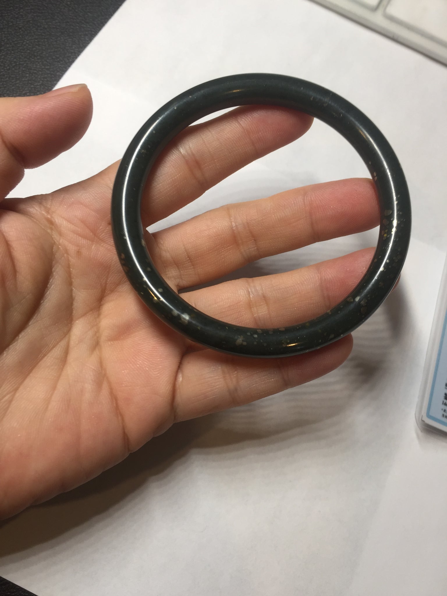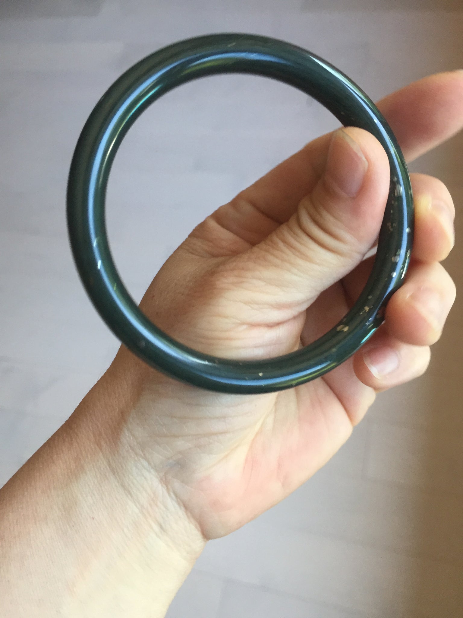 60.8mm 100% Natural dark green/black meteorite Stellar Night sky slim round cut nephrite bangle HT118-0759