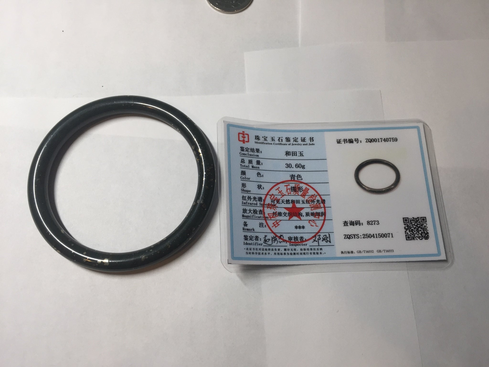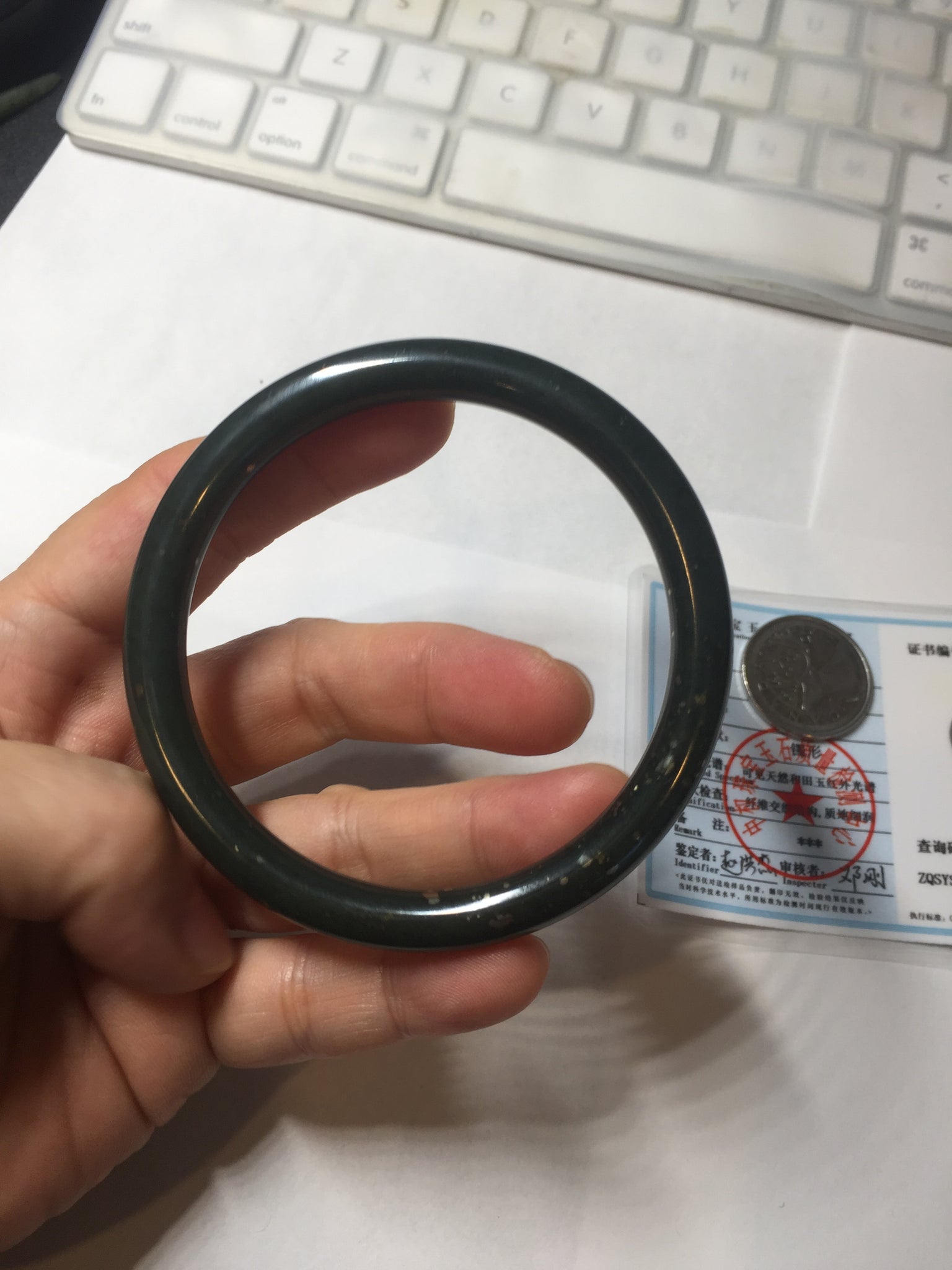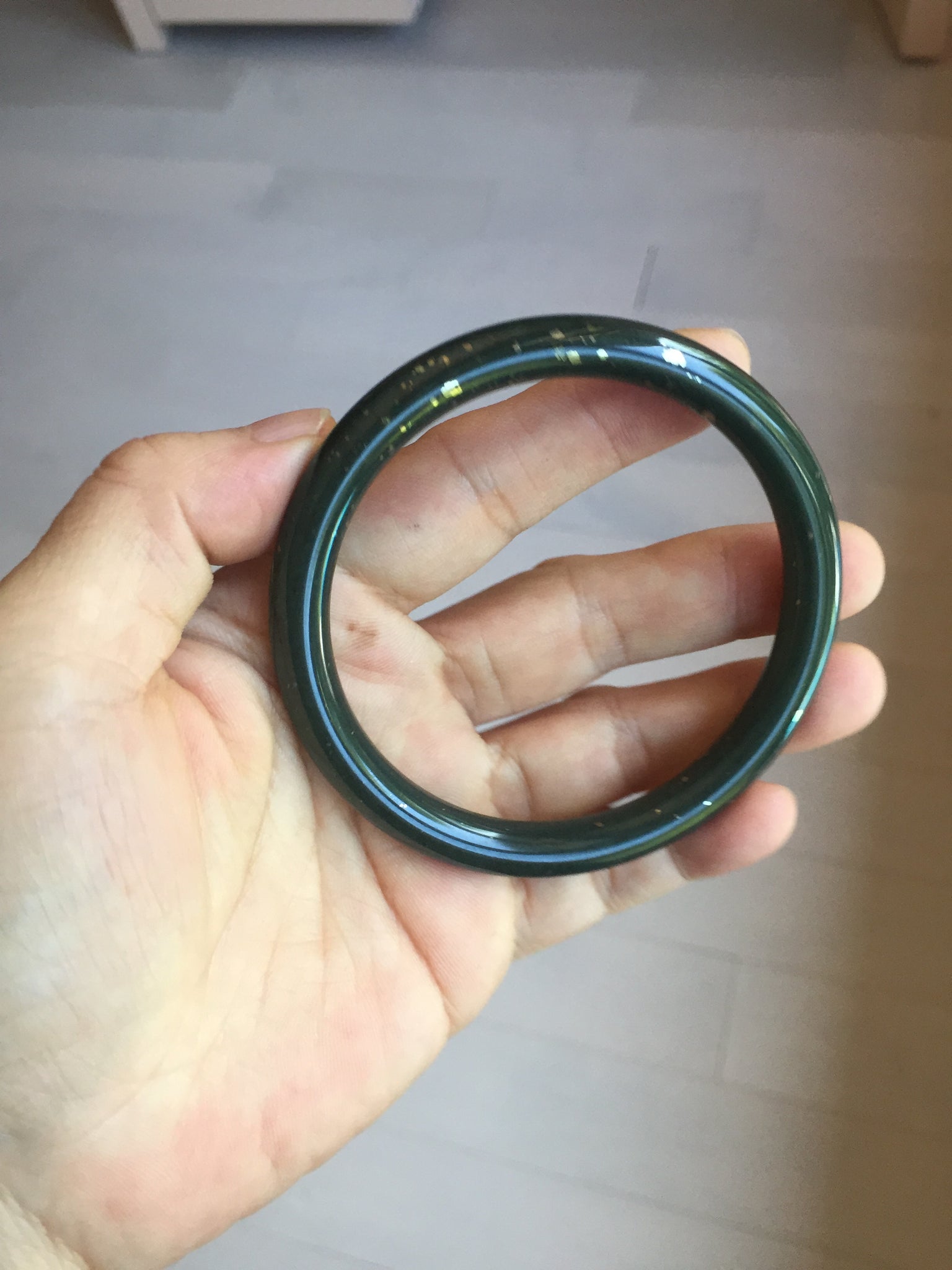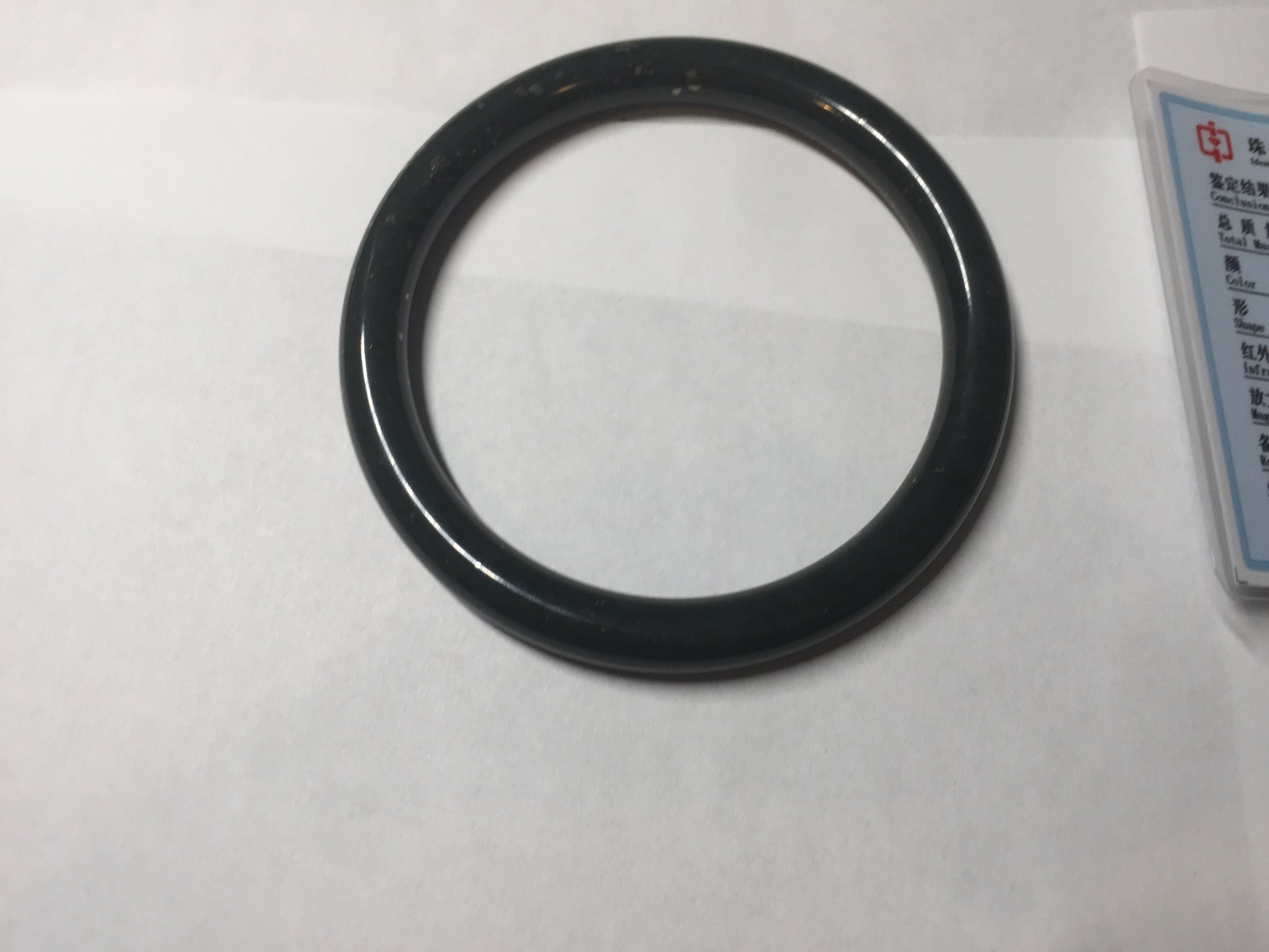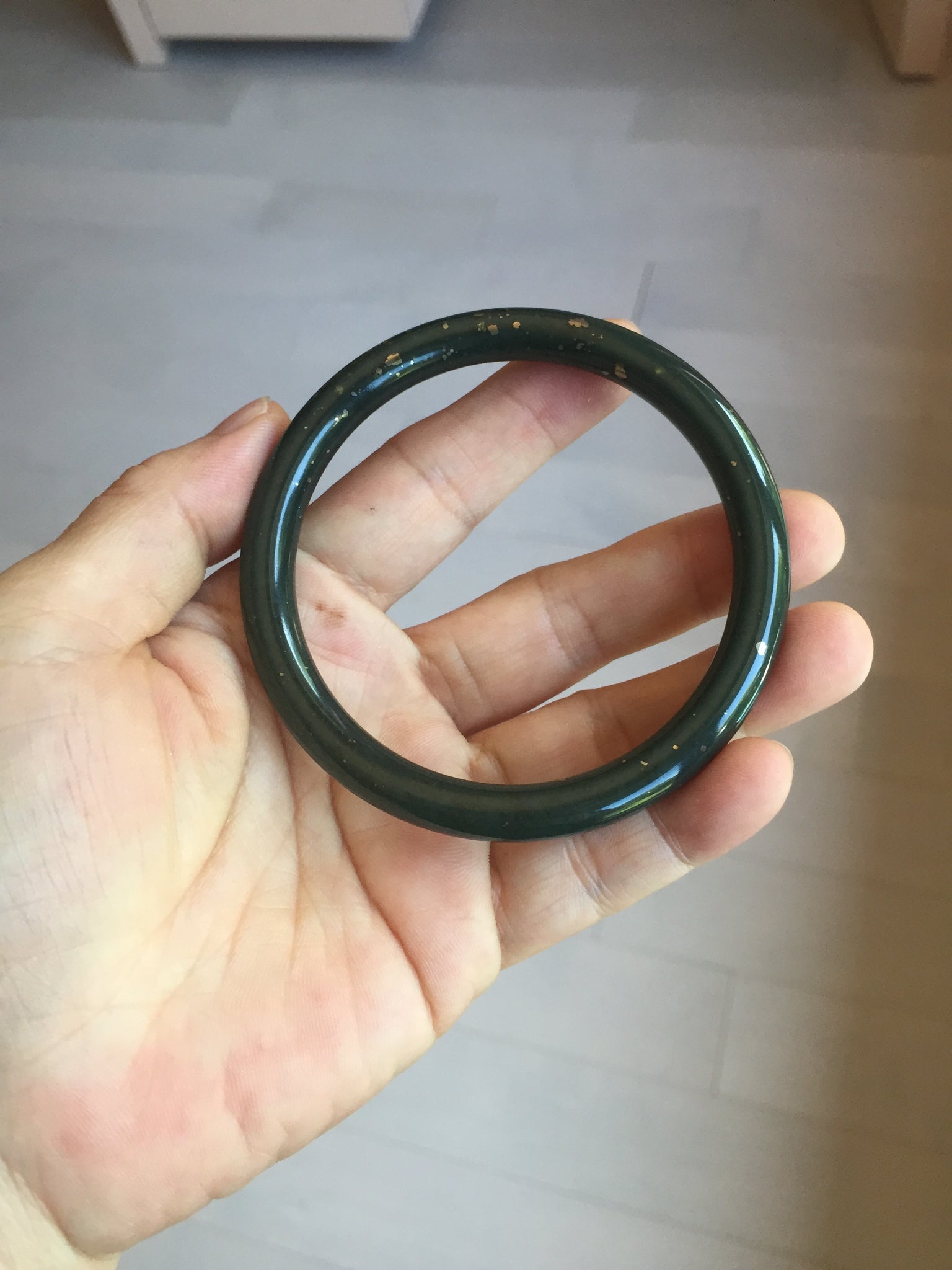 60.8mm 100% Natural dark green/black meteorite Stellar Night sky slim round cut nephrite bangle HT118-0759
