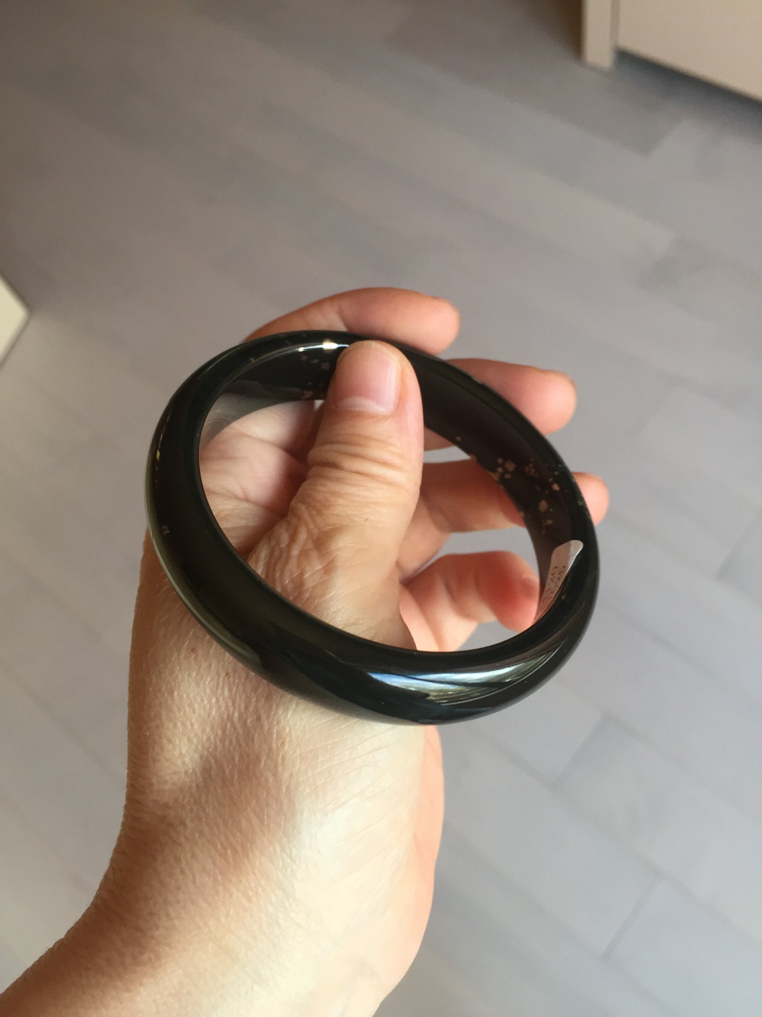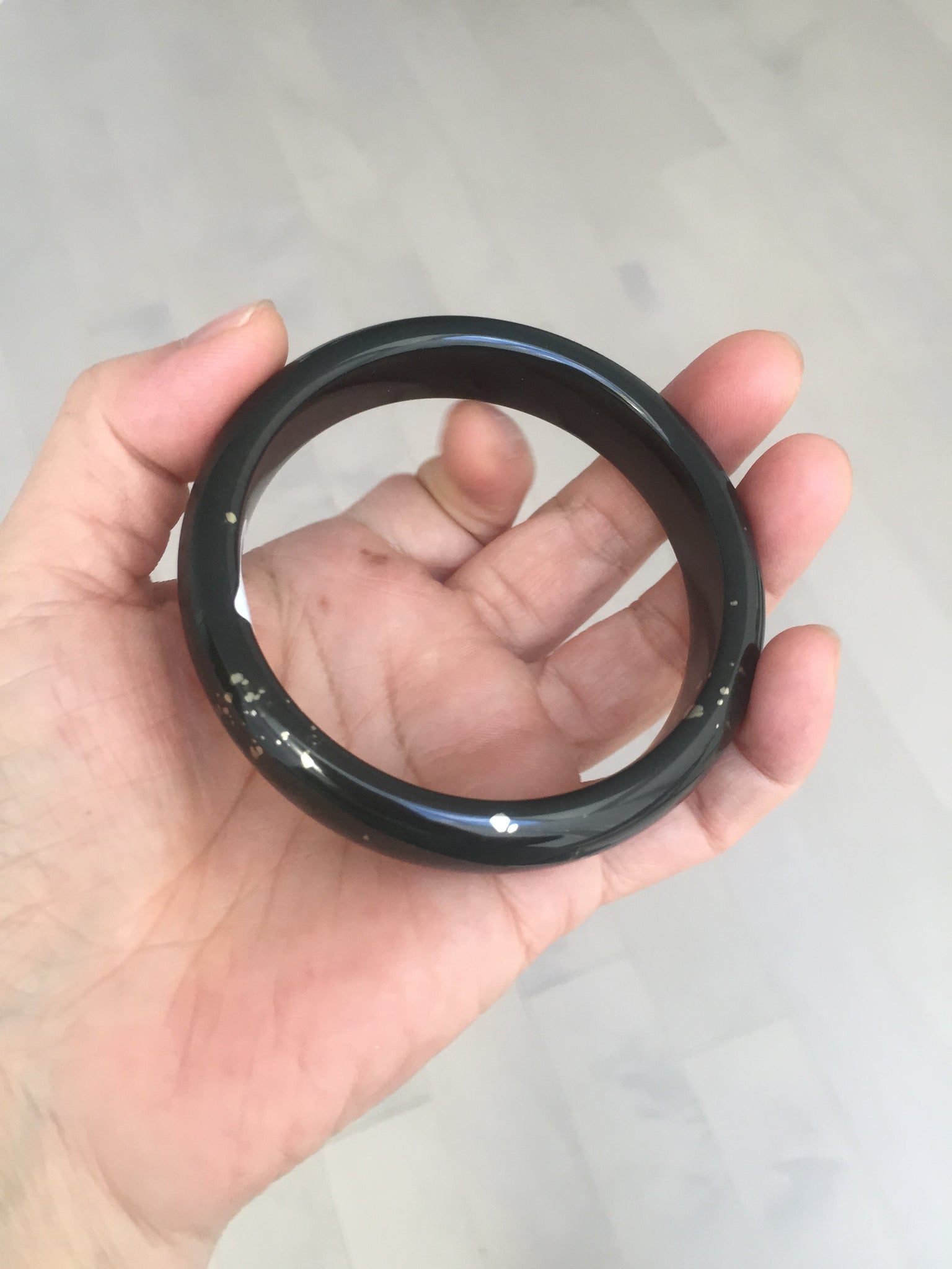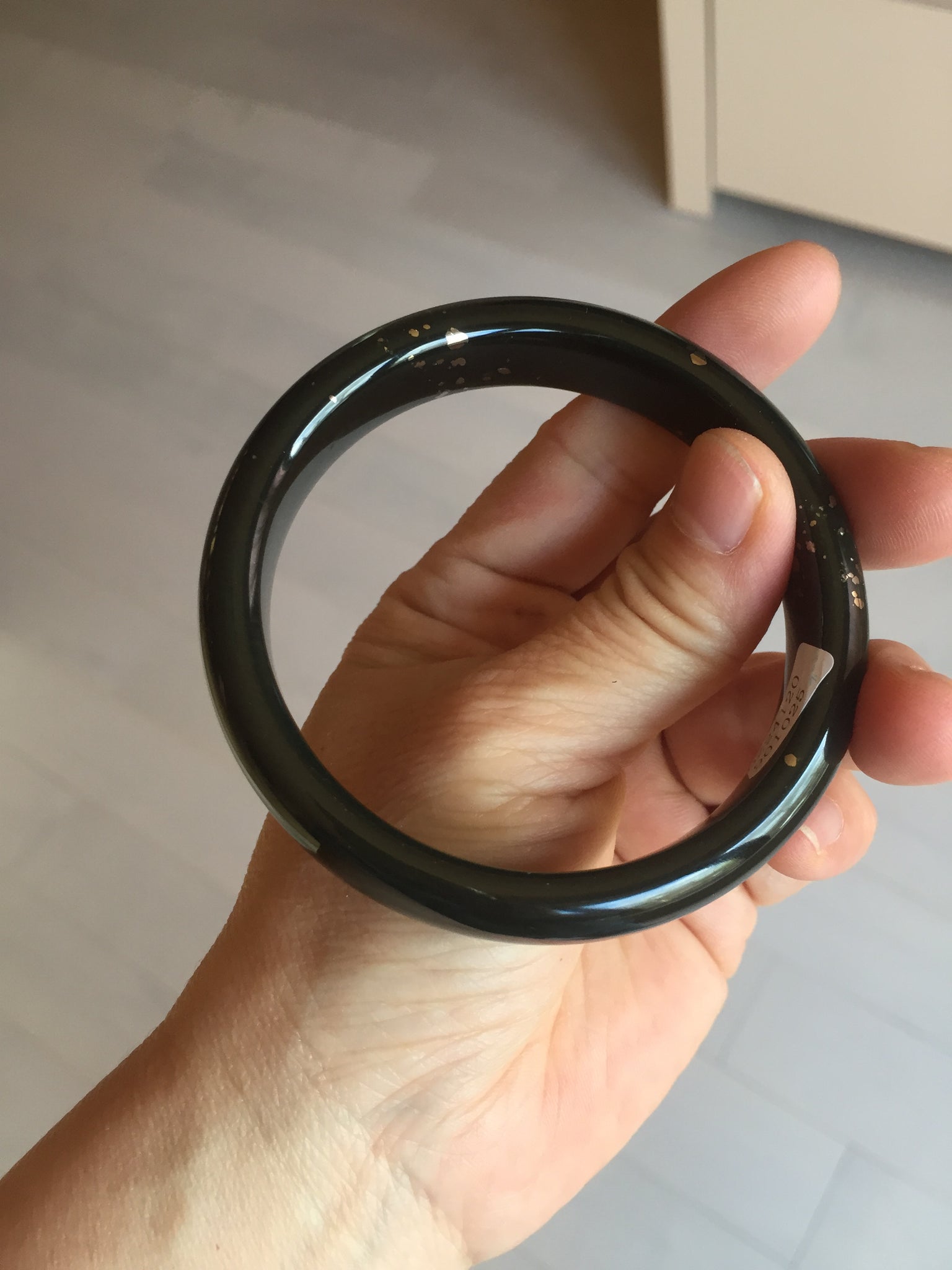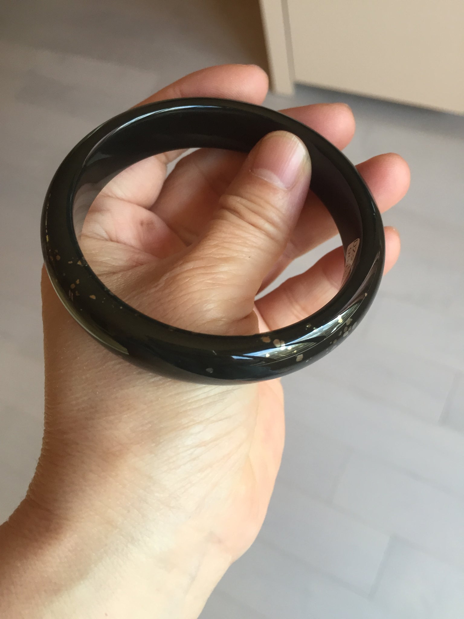 60.4mm 100% Natural dark green/black meteorite Stellar Night sky broad style nephrite Jade bangle HF117-1025