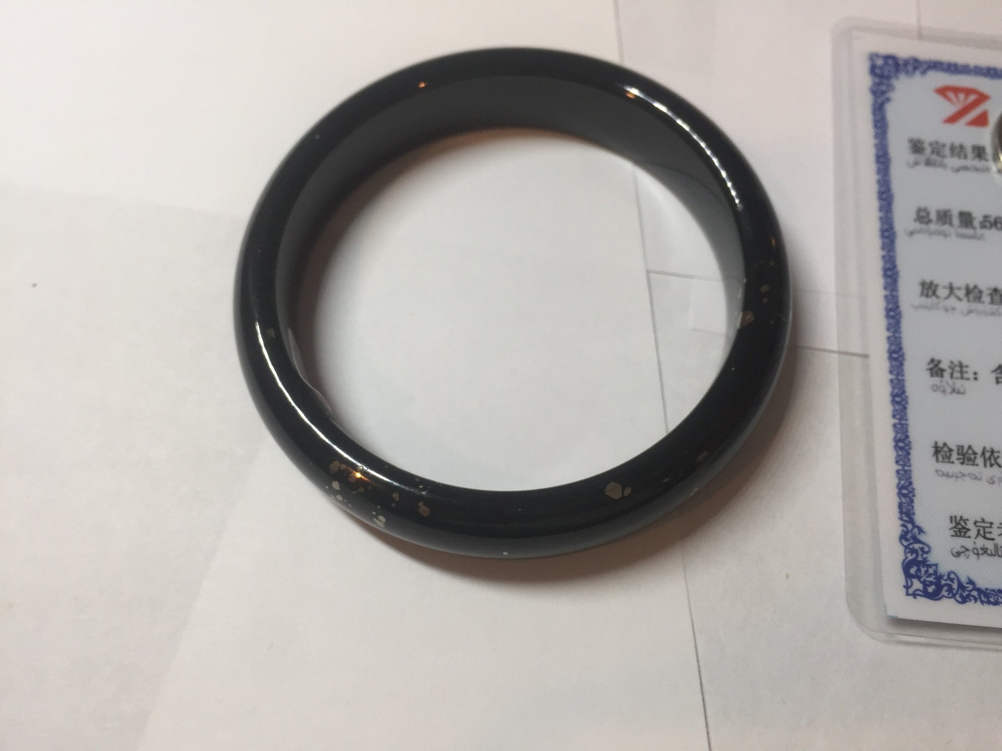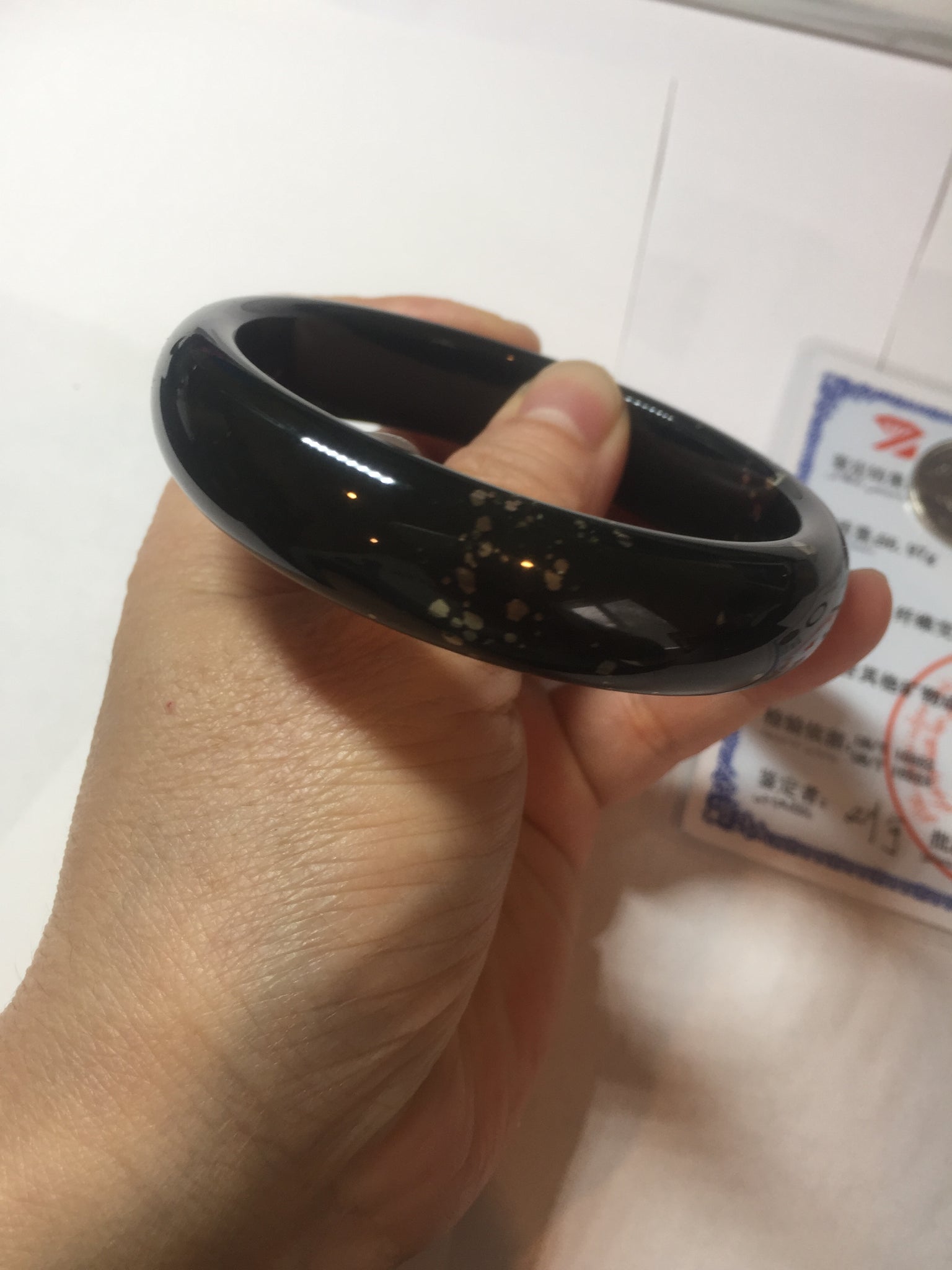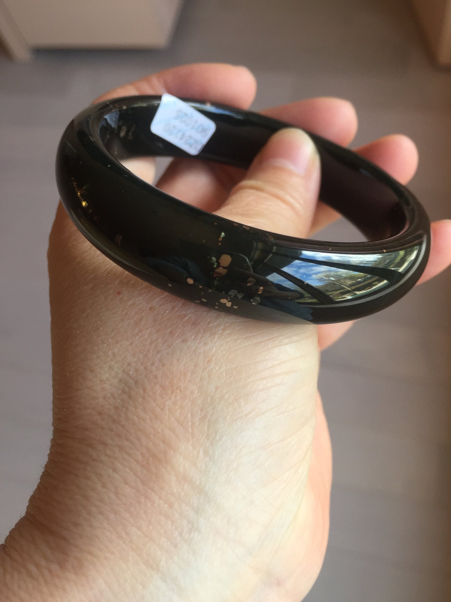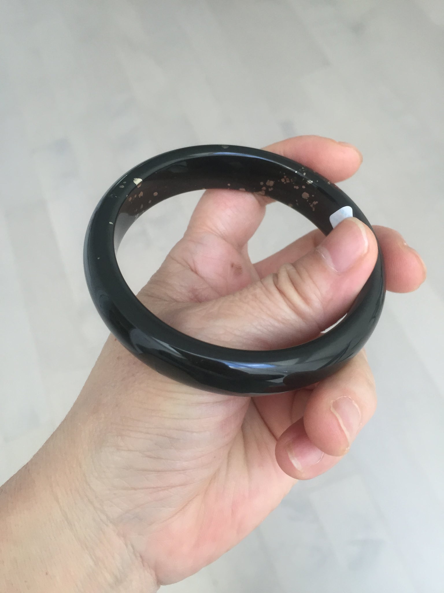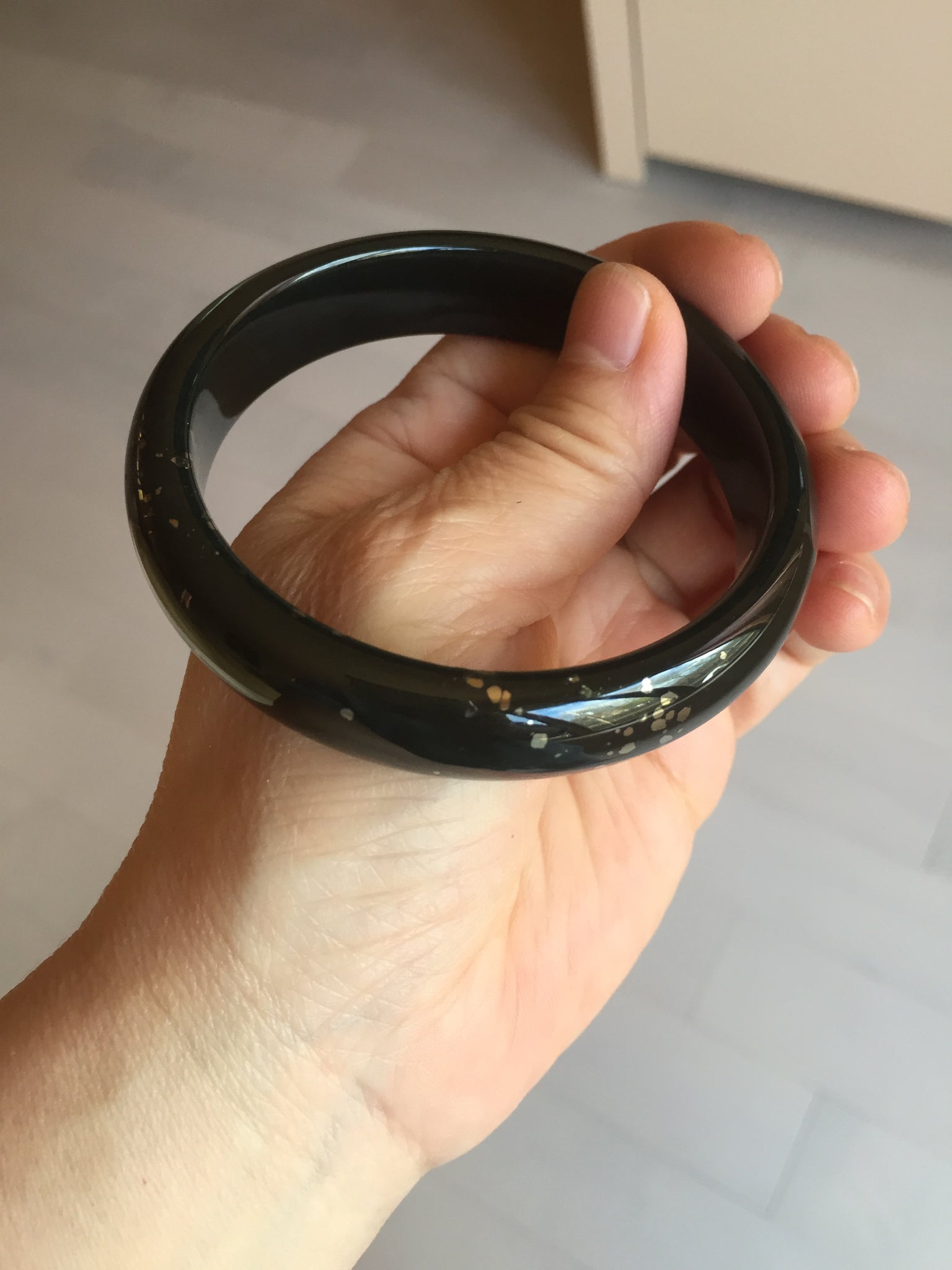 60.4mm 100% Natural dark green/black meteorite Stellar Night sky broad style nephrite Jade bangle HF117-1025