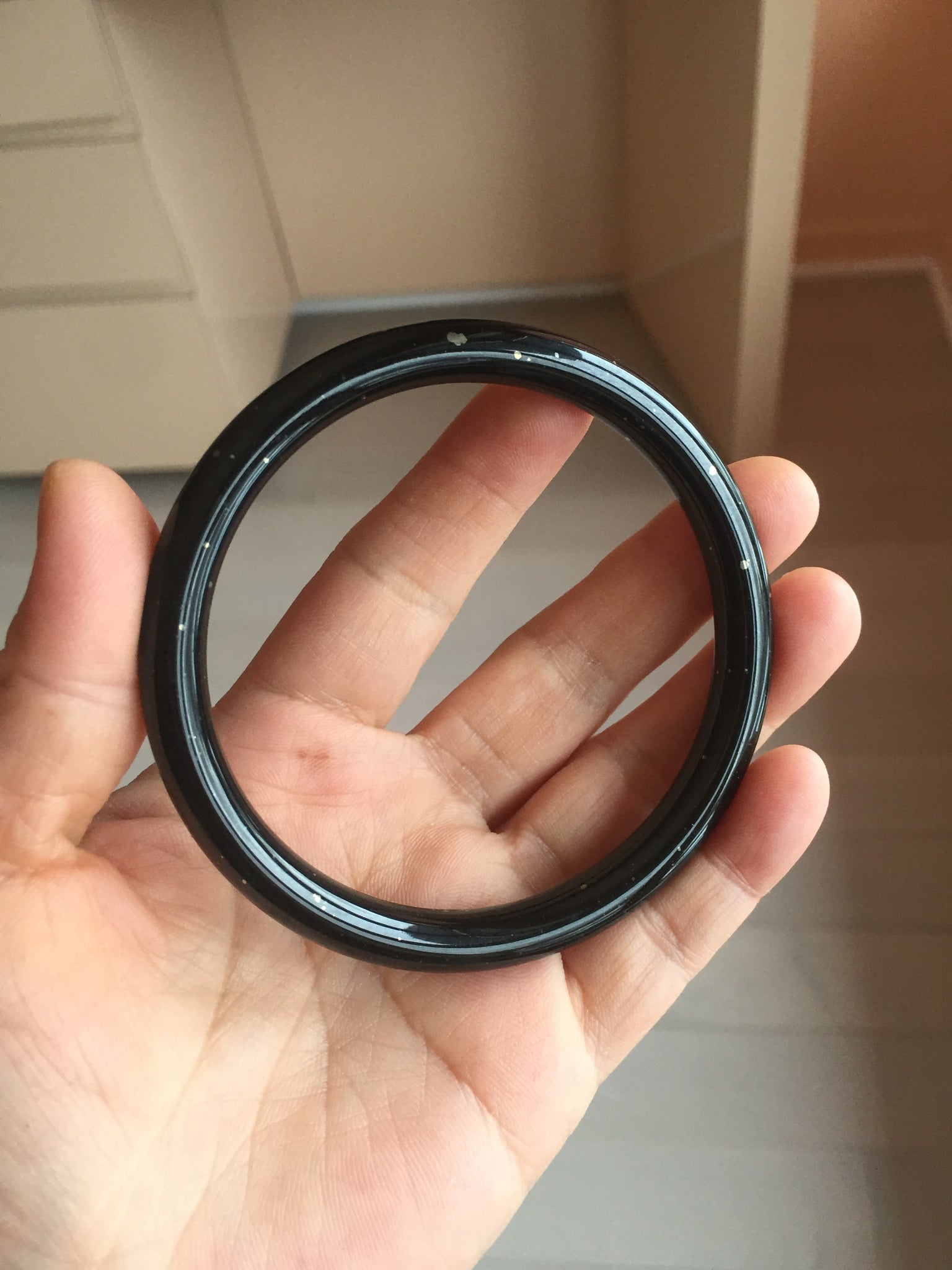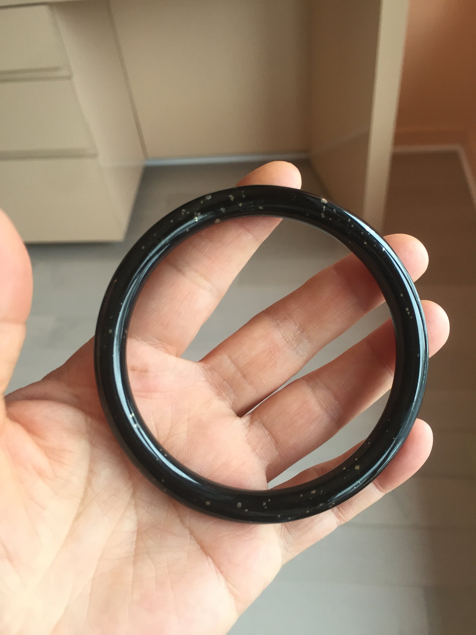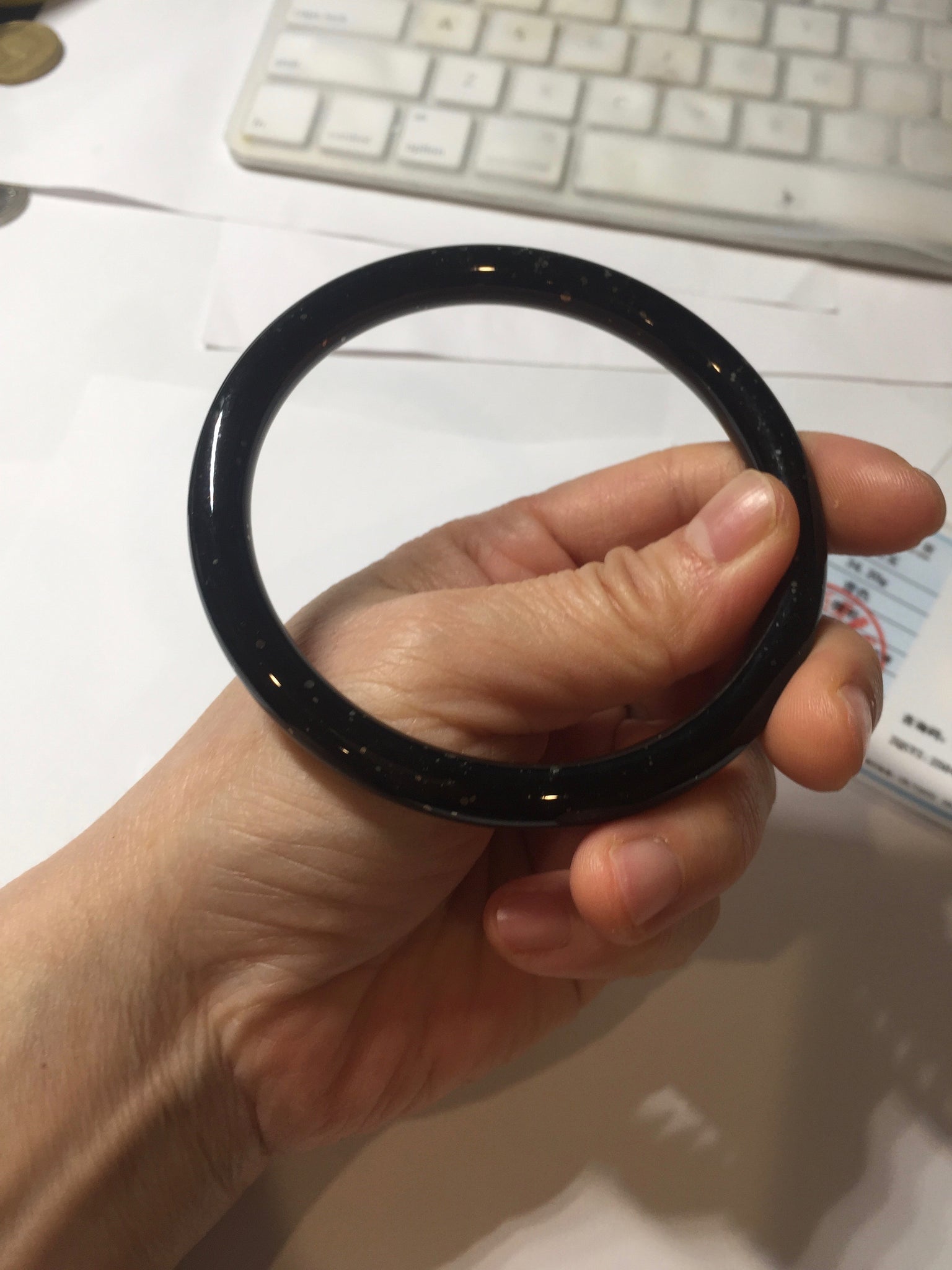 65mm 100% Natural dark green/black meteorite Stellar Night sky slim round cut nephrite bangle HN75-0749