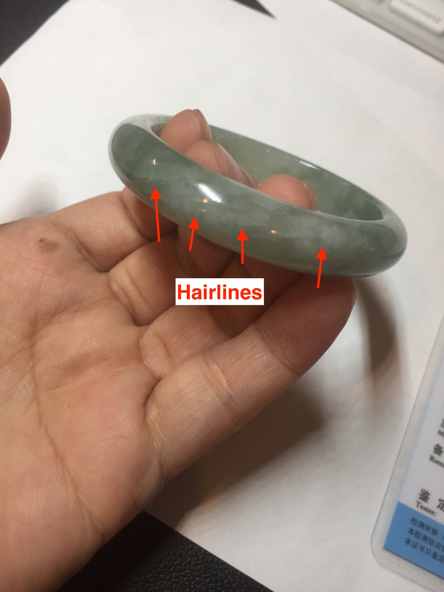 Jade root, or hairline root, and are not considered cracks. A crack is considered to be a crack you can feel that runs up and down the width of the bangle.