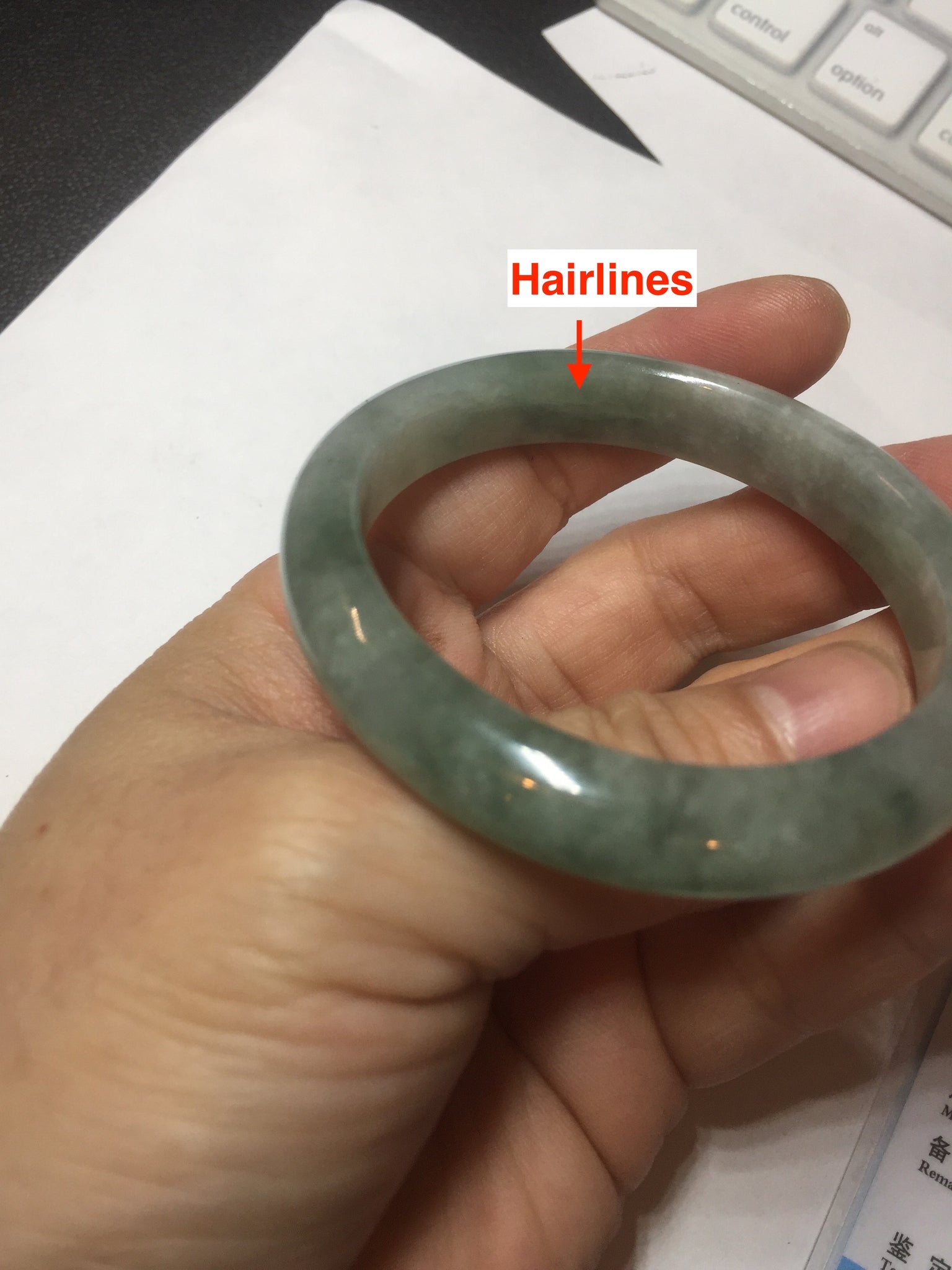 Imperfections: One surface crack. The bangle is solid. Some hairlines. Some cotton areas, cotton lines, and cotton spots.