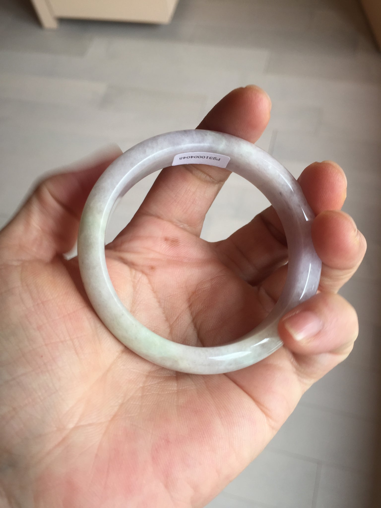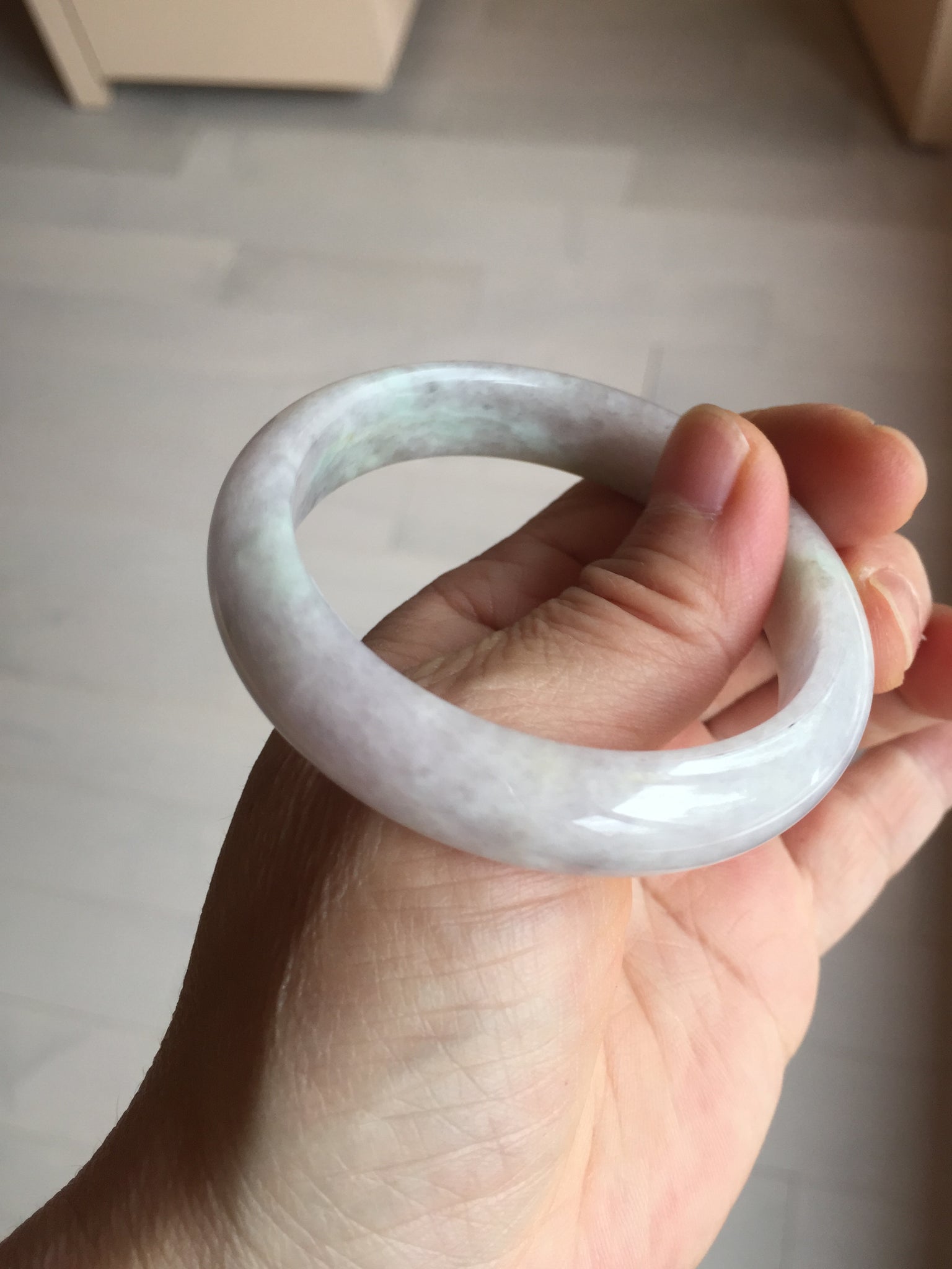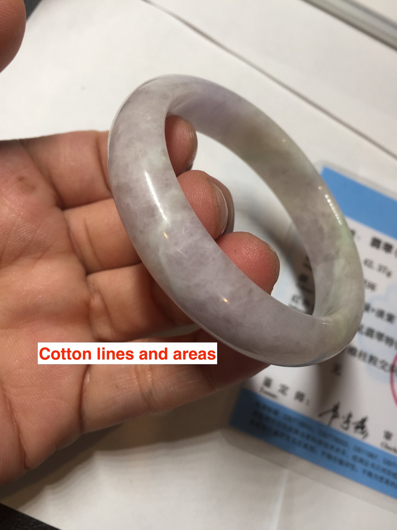 No crack. One ring-shaped hairline. Quite a lot of relatively big cotton areas and spots. Cotton lines. Not transparent. Not watery. The purple is lighter than in the photos due to the purple color always being more camera-friendly.