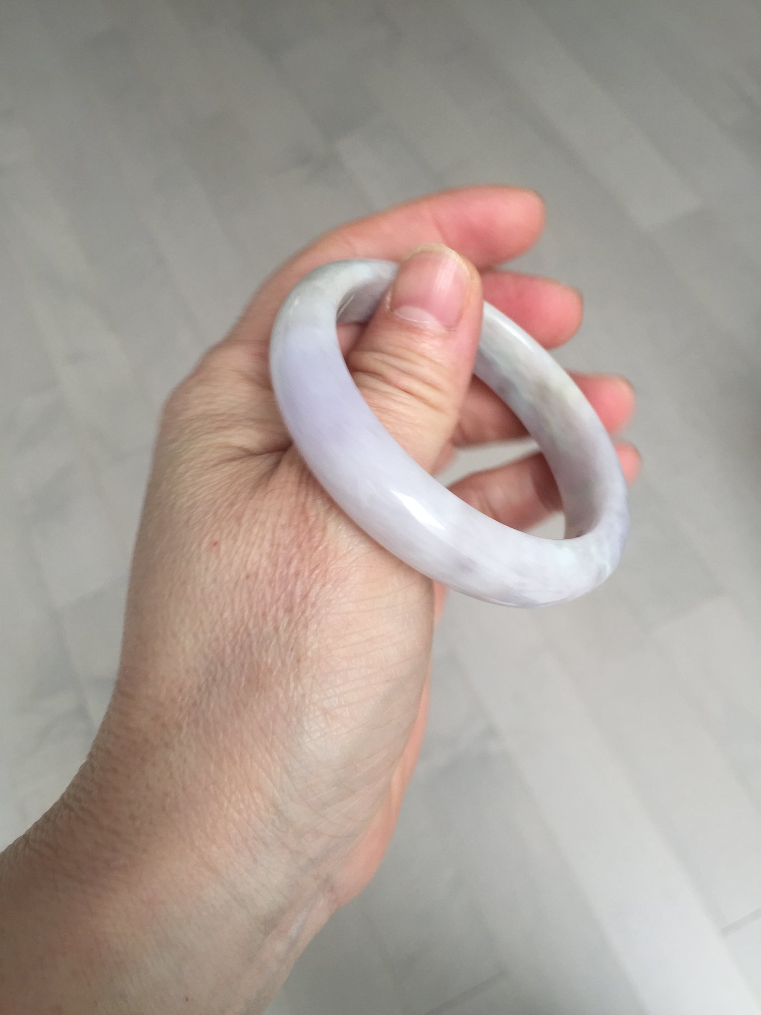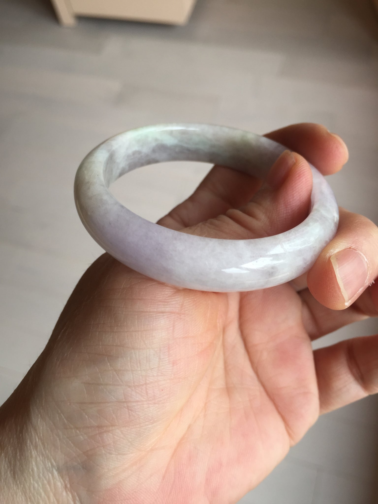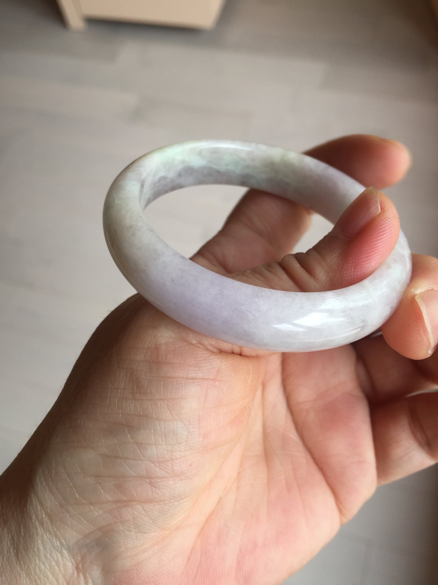 No crack. One ring-shaped hairline. Quite a lot of relatively big cotton areas and spots. Cotton lines. Not transparent. Not watery. The purple is lighter than in the photos due to the purple color always being more camera-friendly.