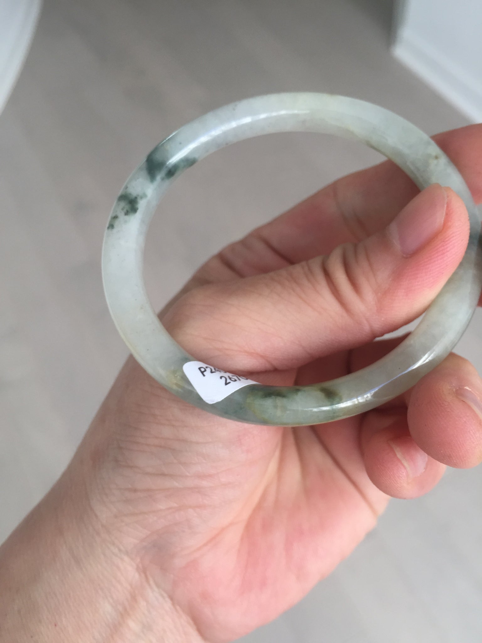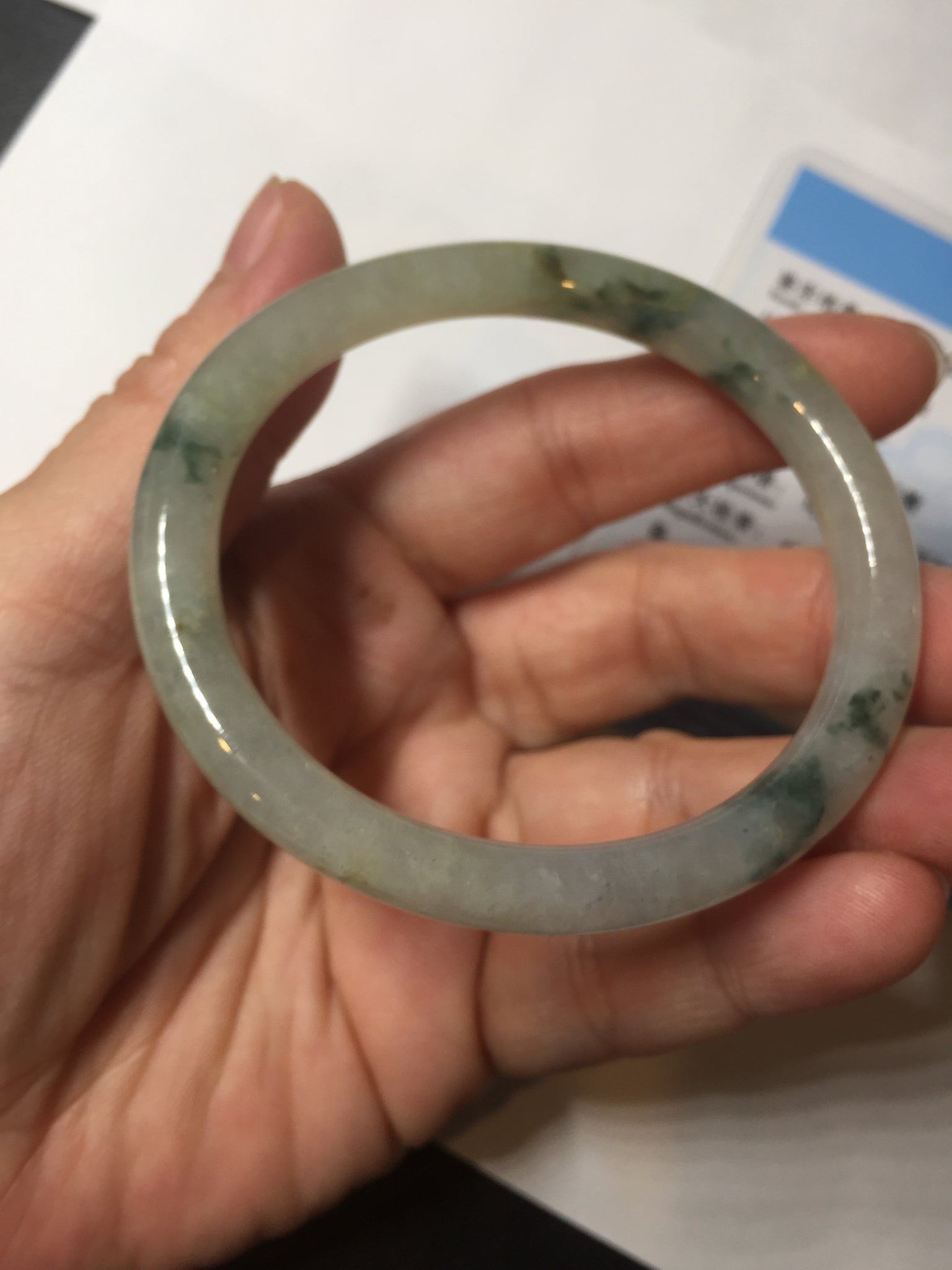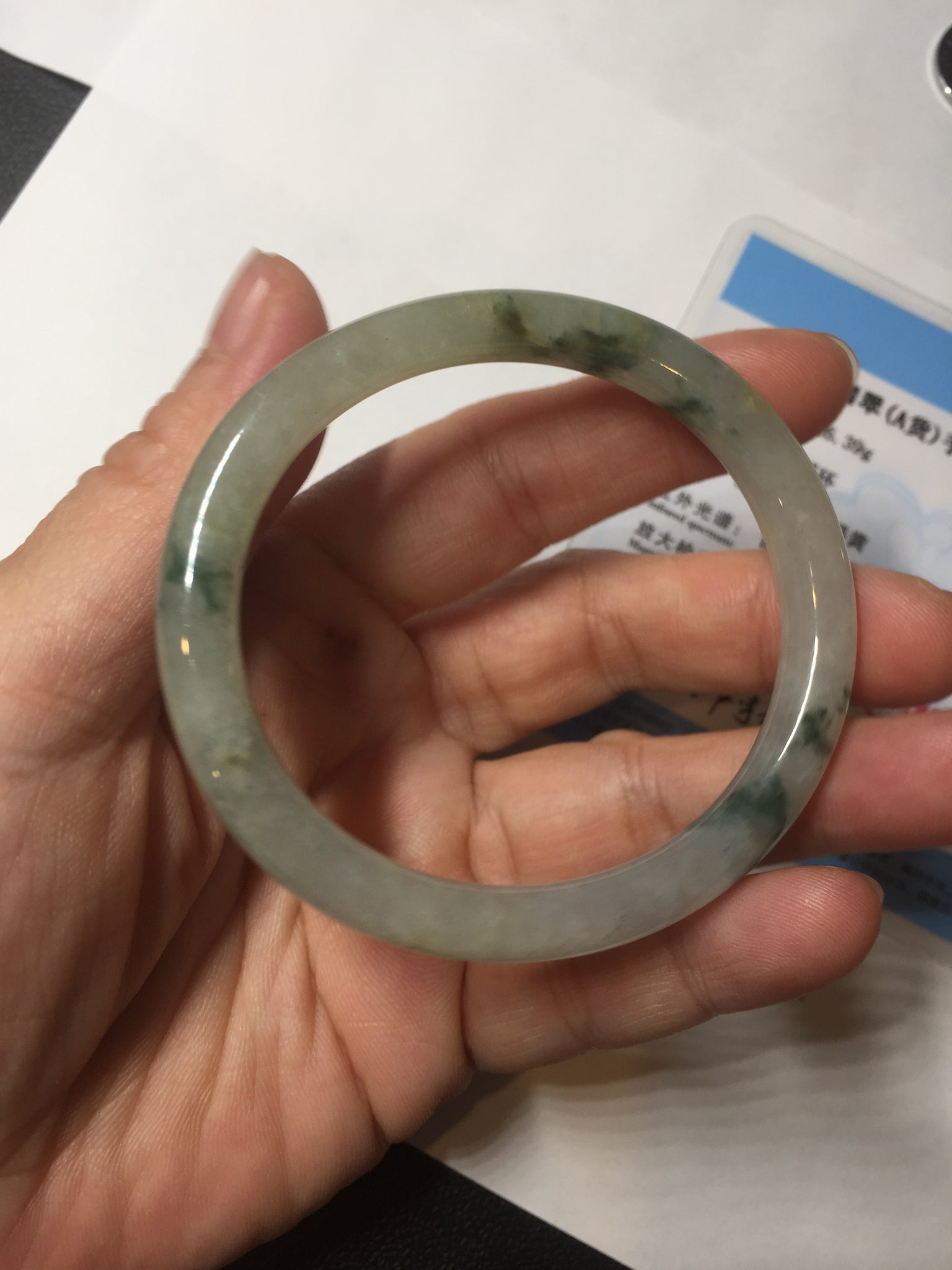 52mm certified type A 100% Natural green/white with floating flowers slim oval jadeite jade bangle BP26-2670