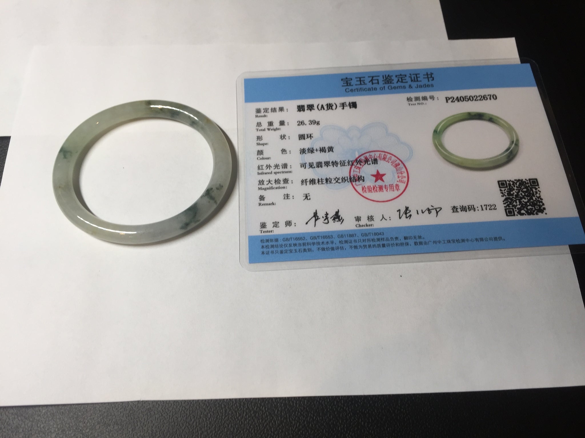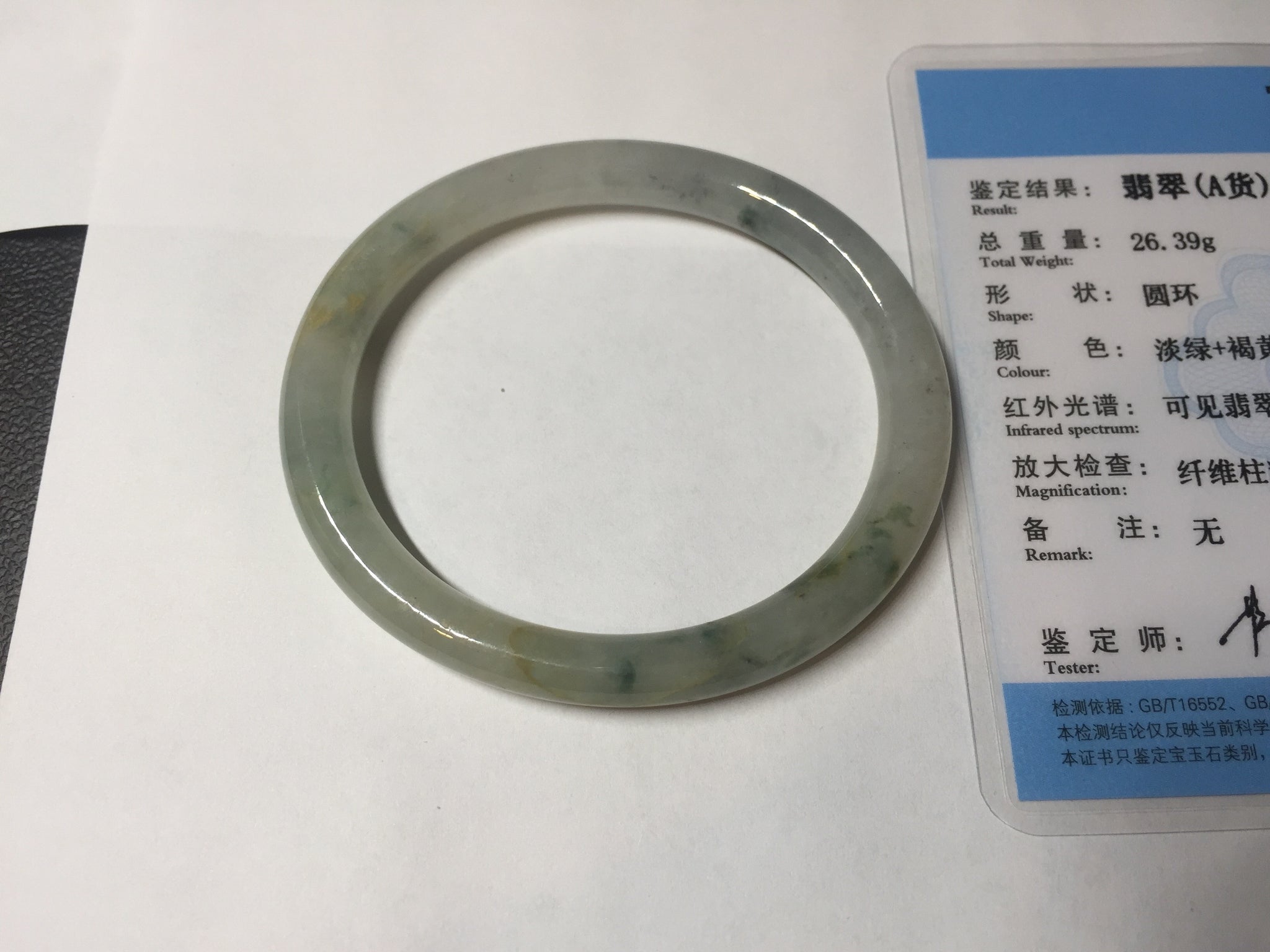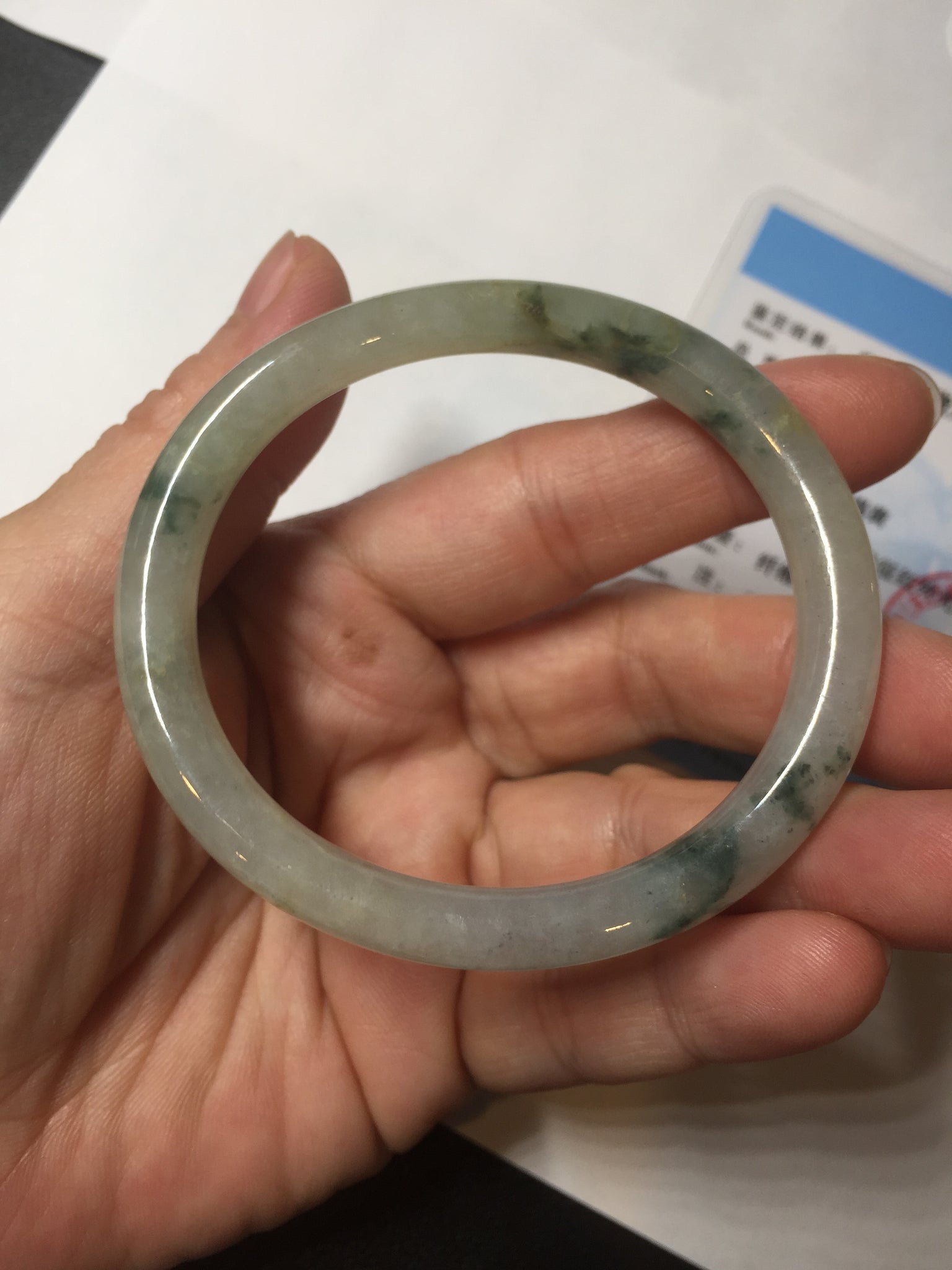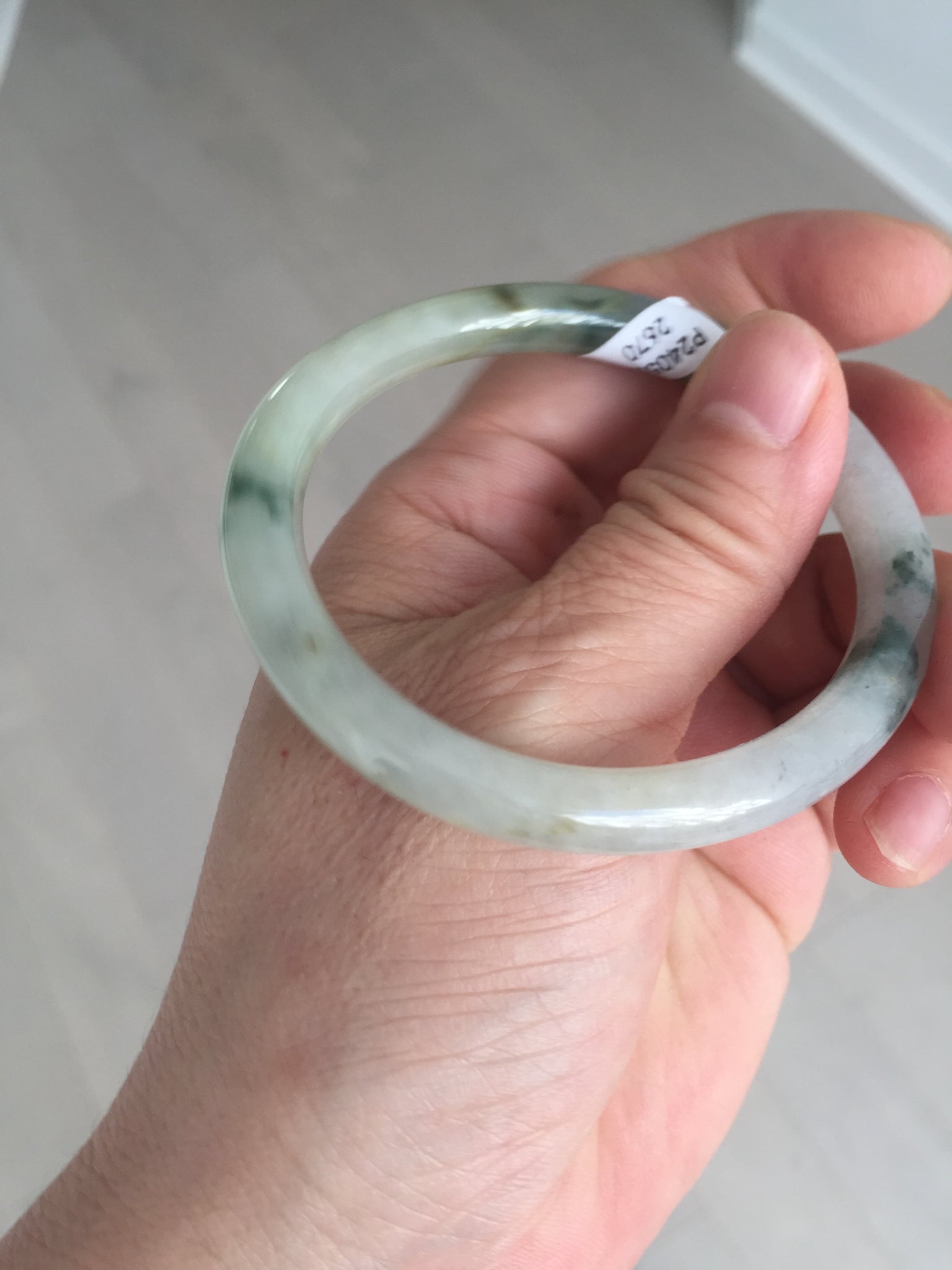 52mm certified type A 100% Natural green/white with floating flowers slim oval jadeite jade bangle BP26-2670