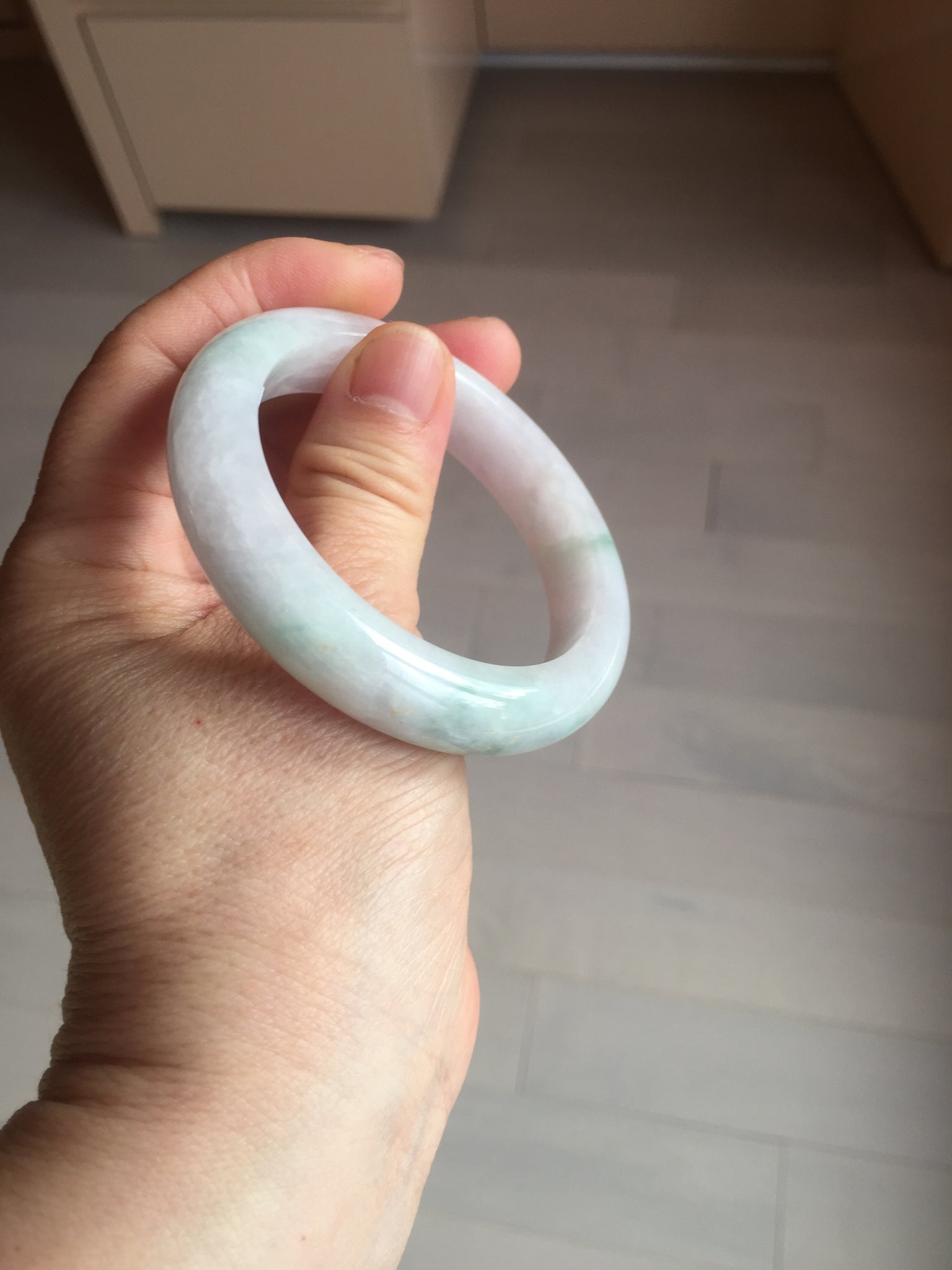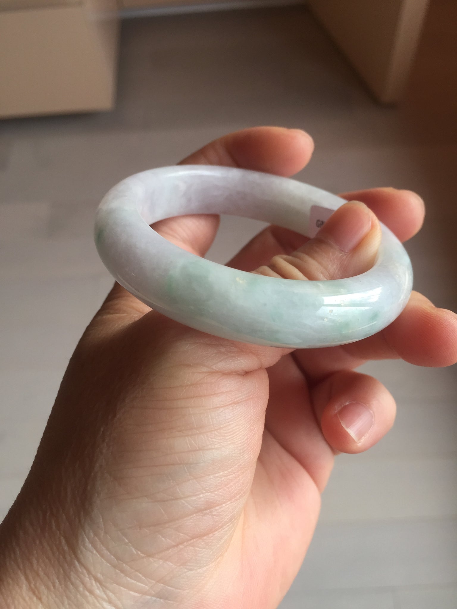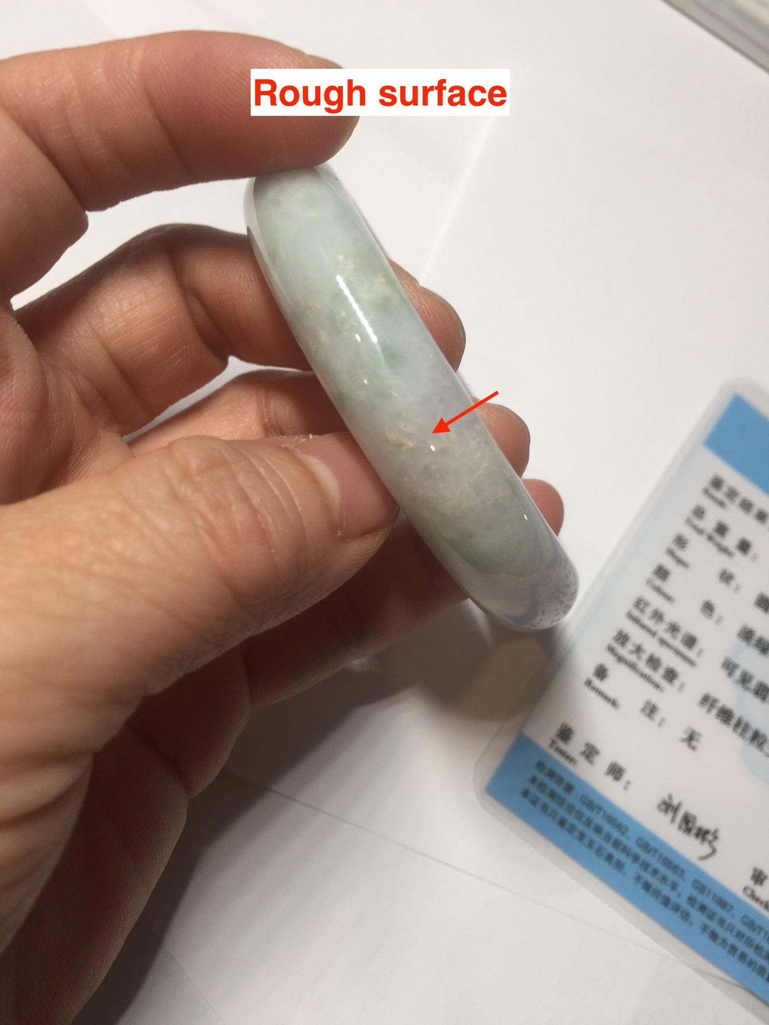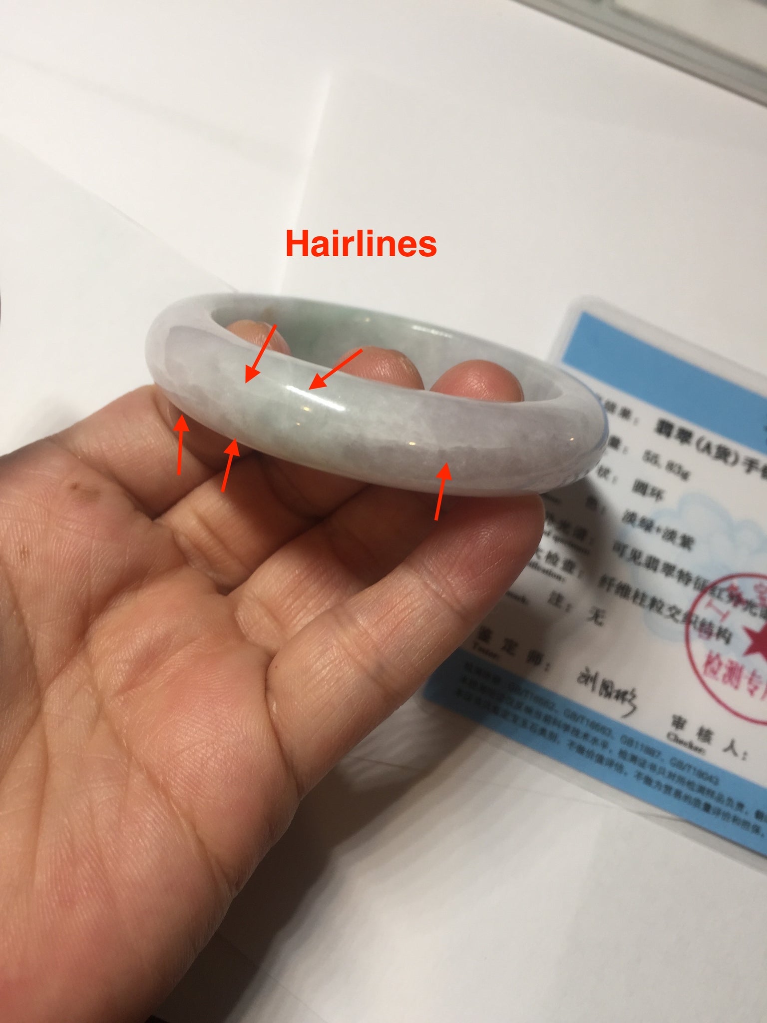 No crack. Some hairlines. Some cotton lines, spots, and area. Some rough surfaces and small mine pits. The purple is lighter than in the photos.