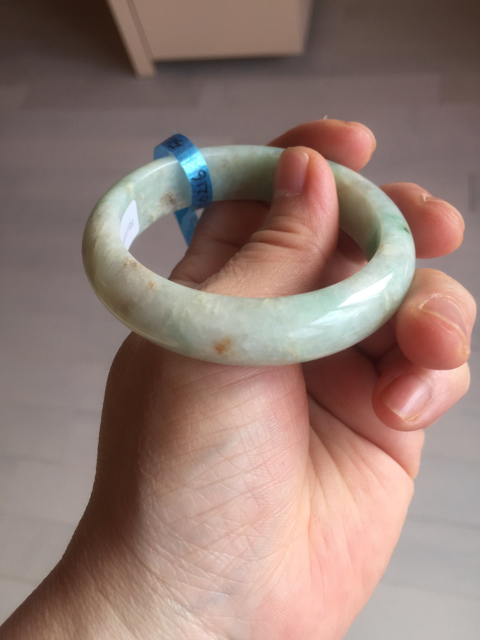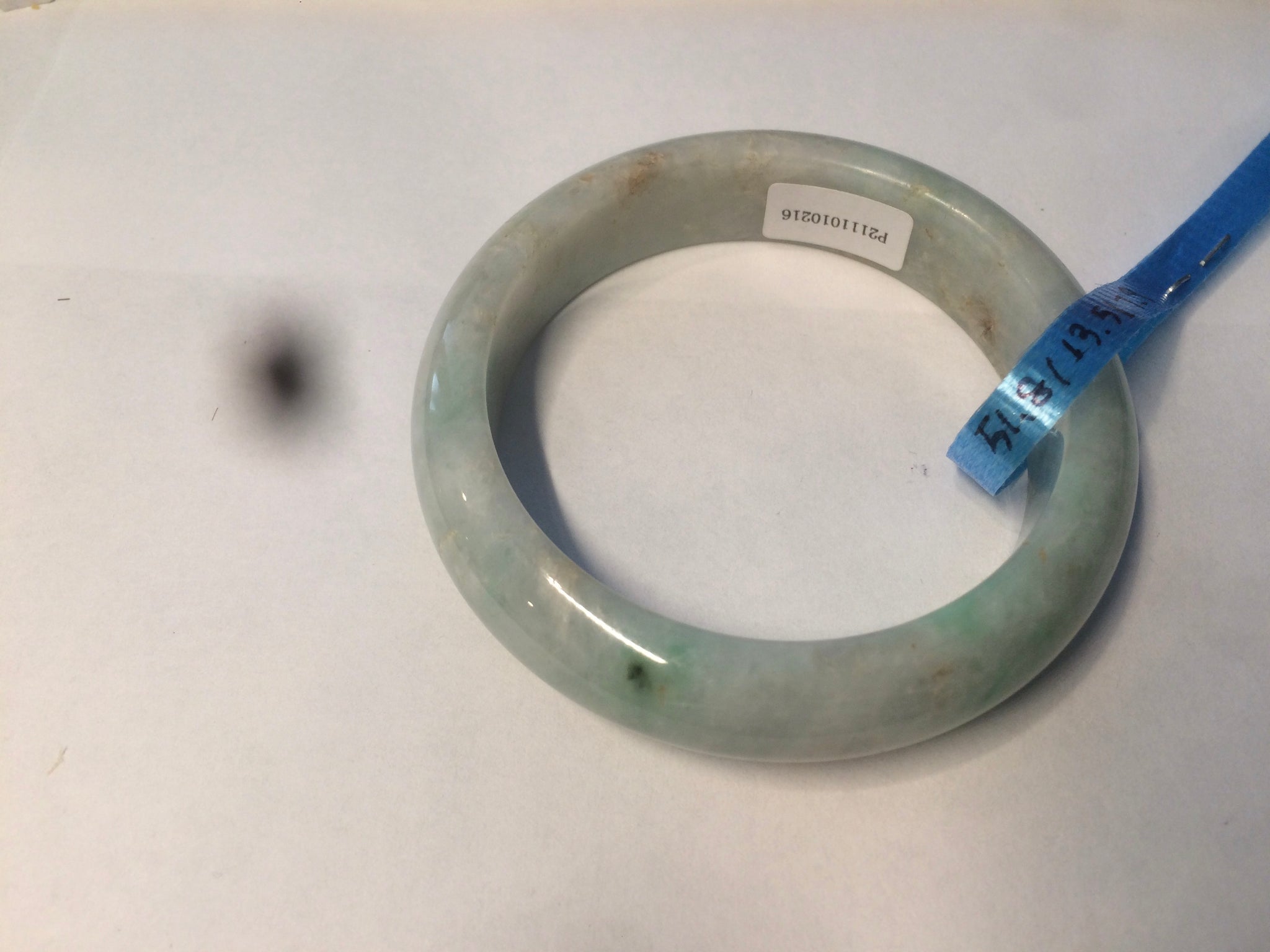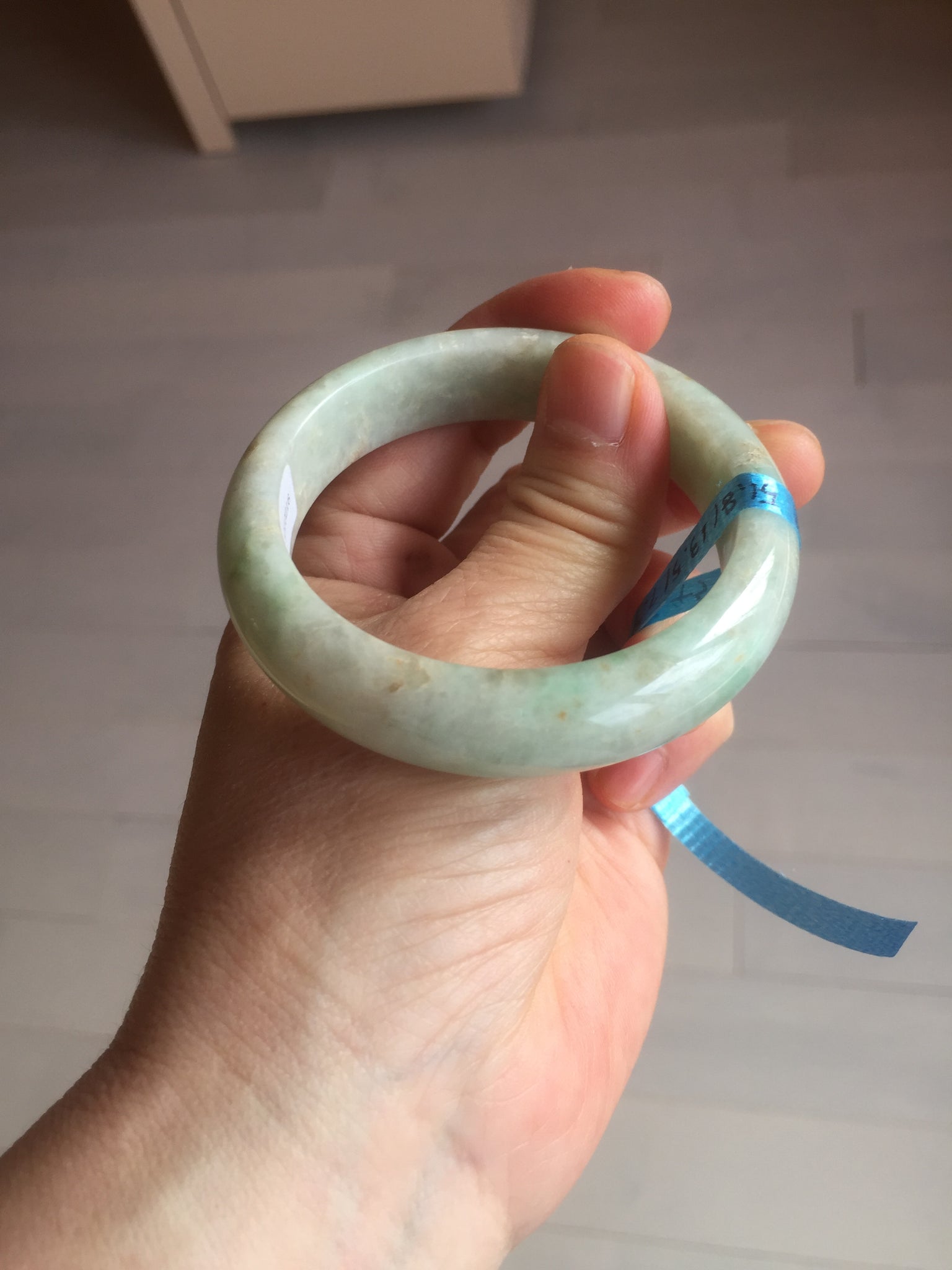 No crack. No hairline. Some rough surfaces with a tiny bit of wax residues. One linear mine pit. The texture is not so fine. Cotton lines/spots. Not transparent, not so watery.