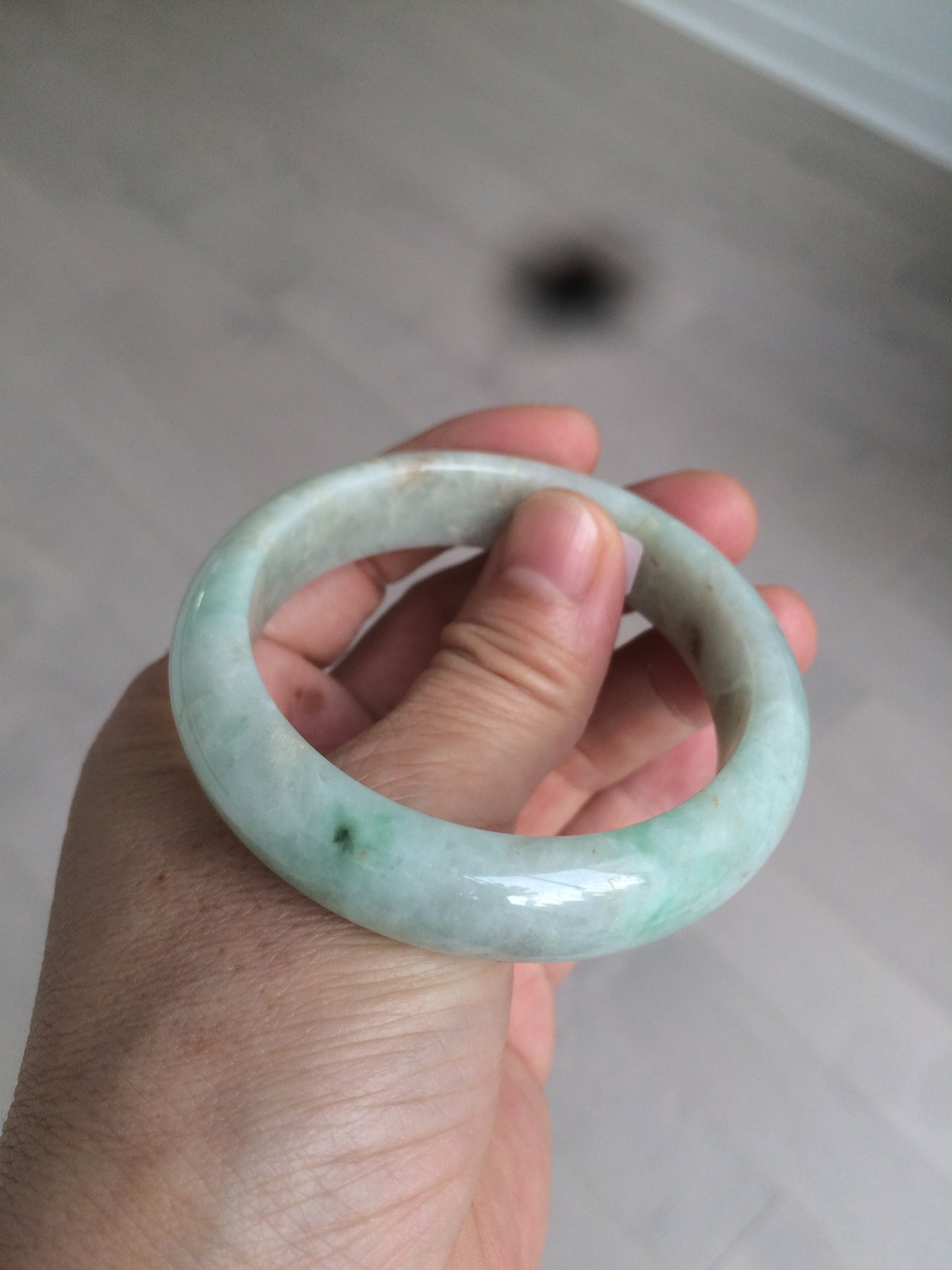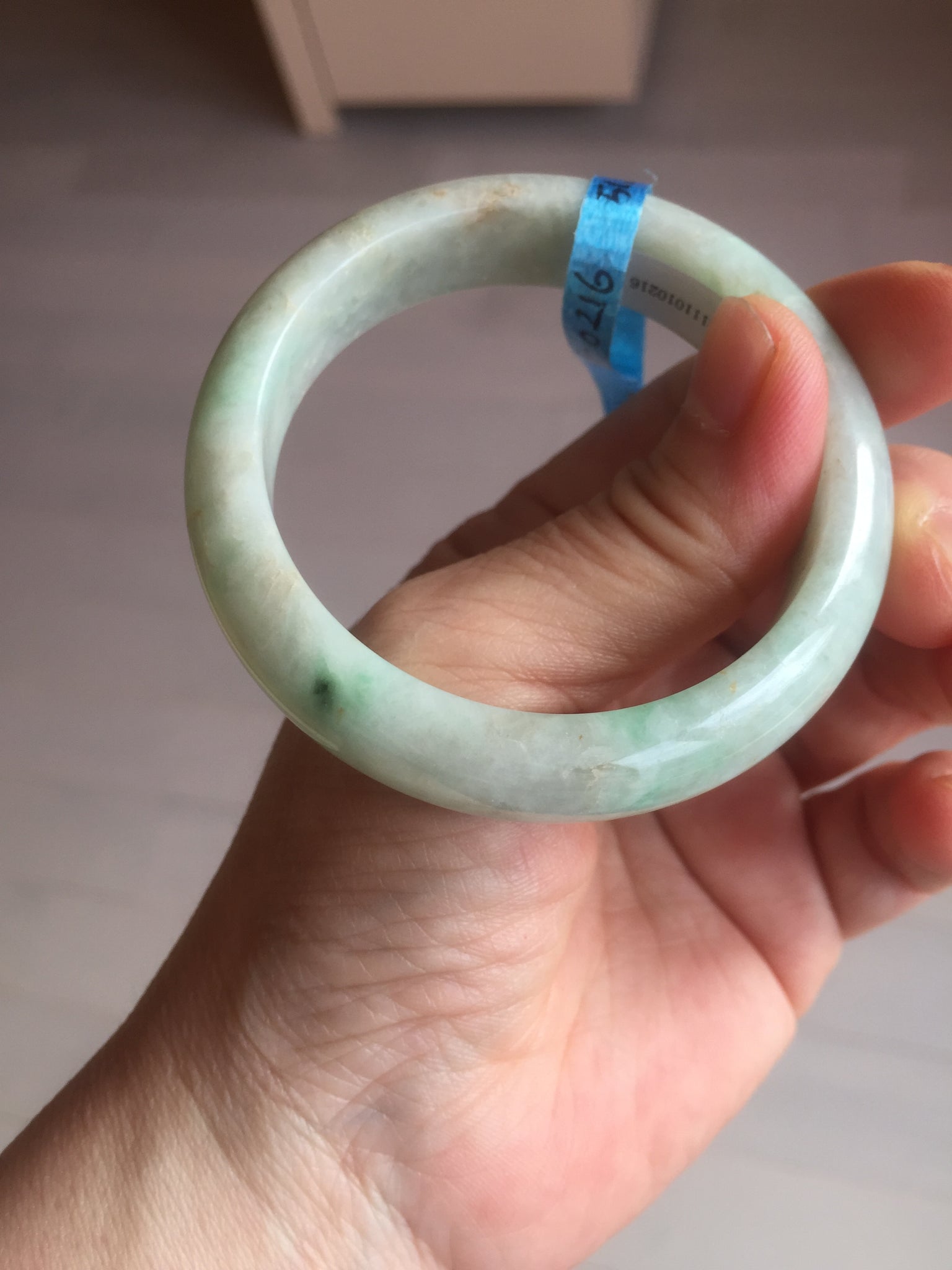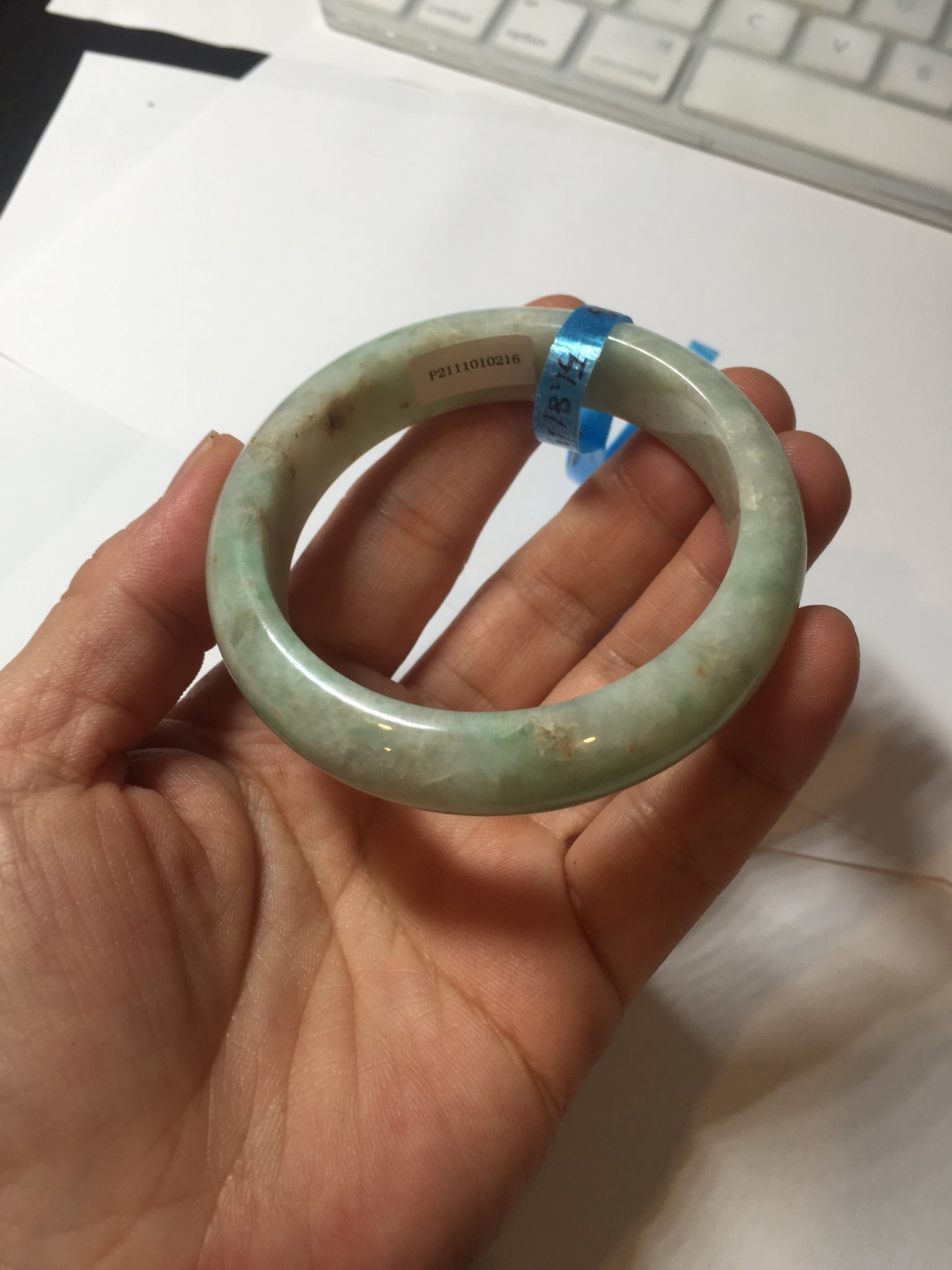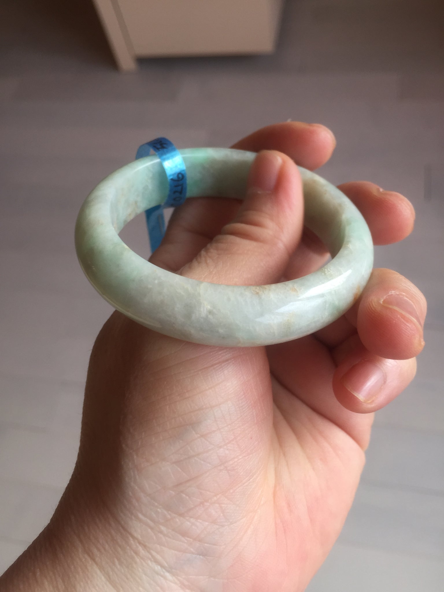 No crack. No hairline. Some rough surfaces with a tiny bit of wax residues. One linear mine pit. The texture is not so fine. Cotton lines/spots. Not transparent, not so watery.