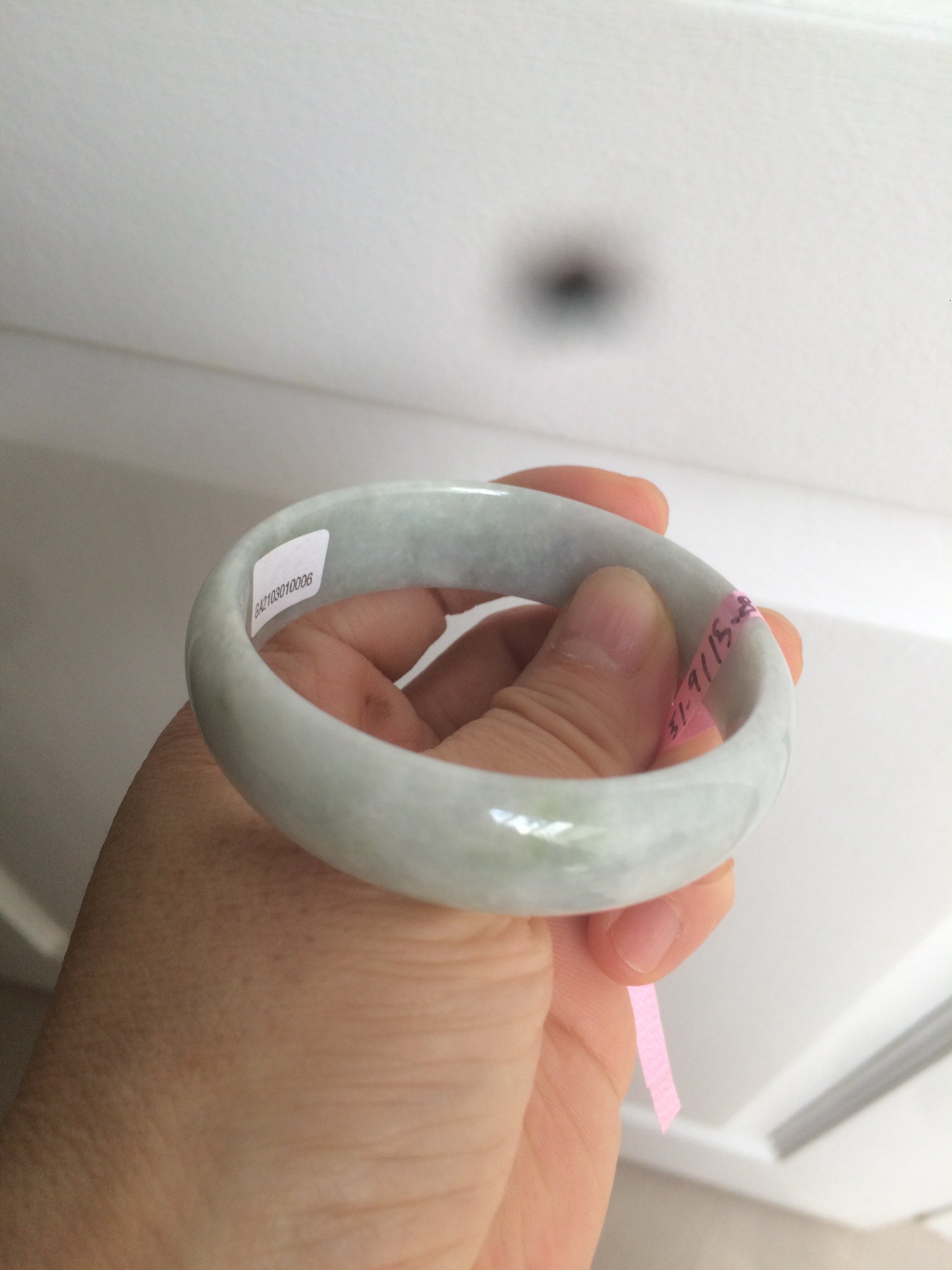 Imperfections: One crack. The texture is not so fine. Some cotton lines, areas, and spots. Not transparent.