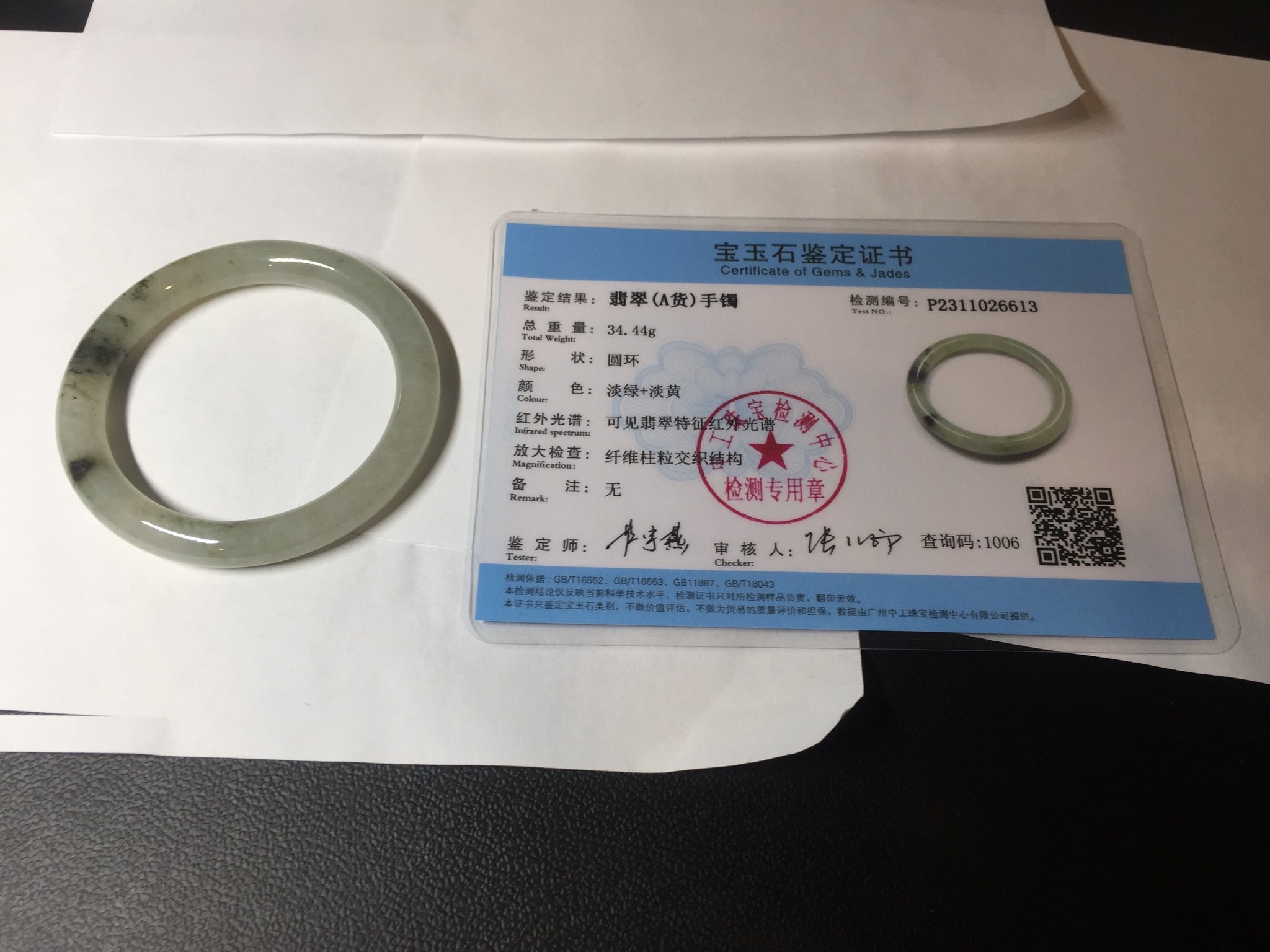 51.5mm certified 100% natural Type A light green yellow with floating seaweed round cut jadeite jade bangle BM64-6613