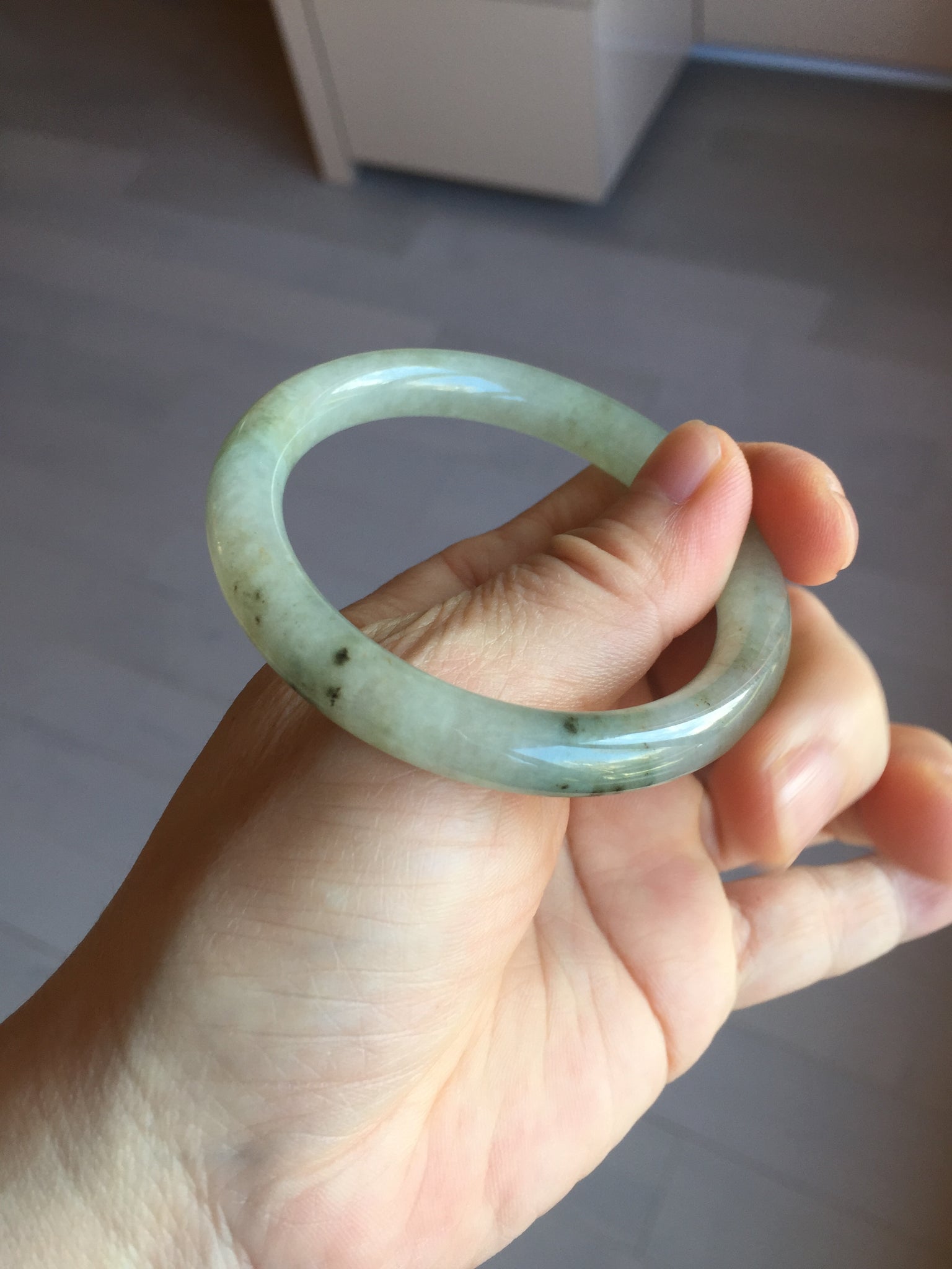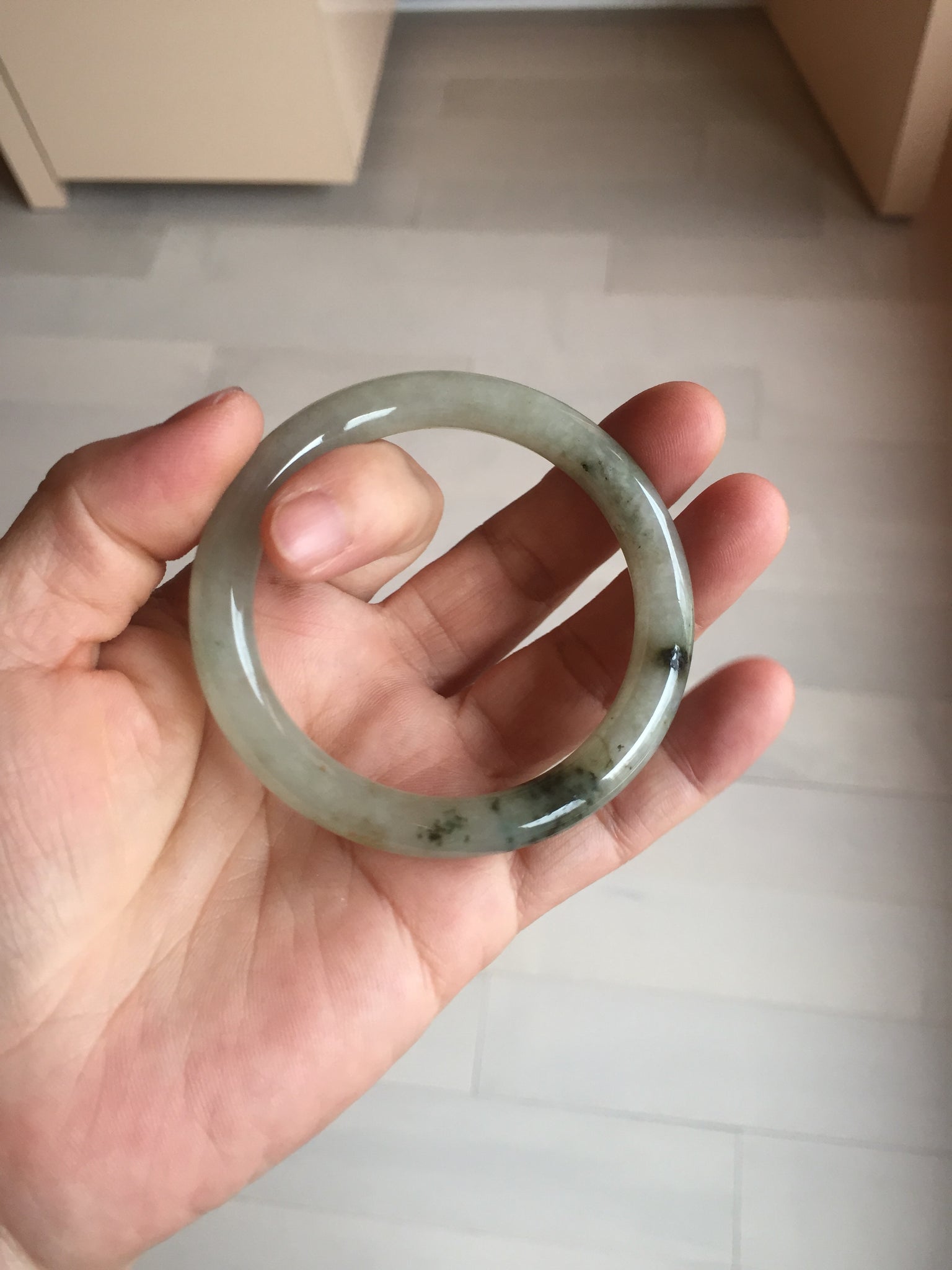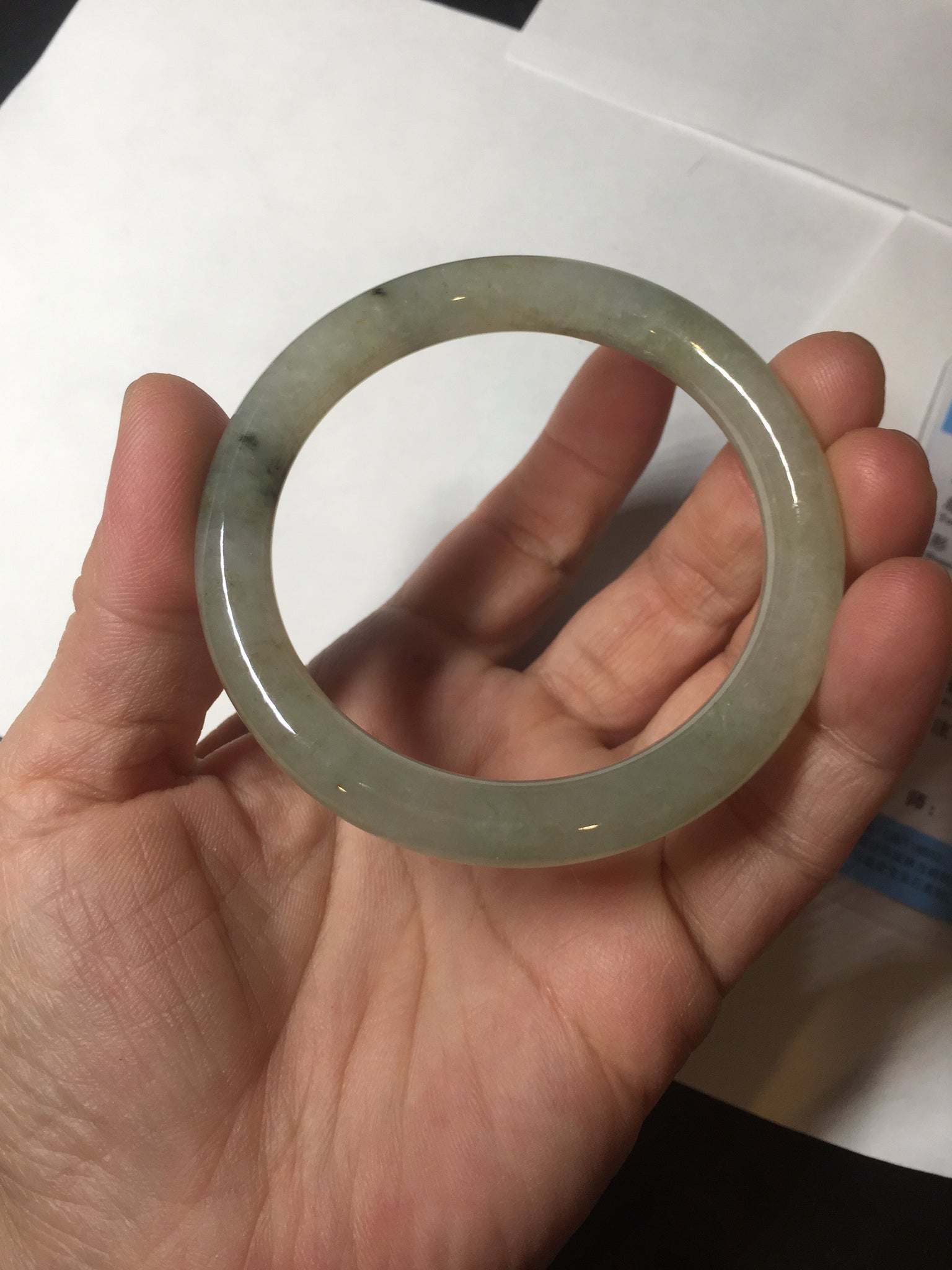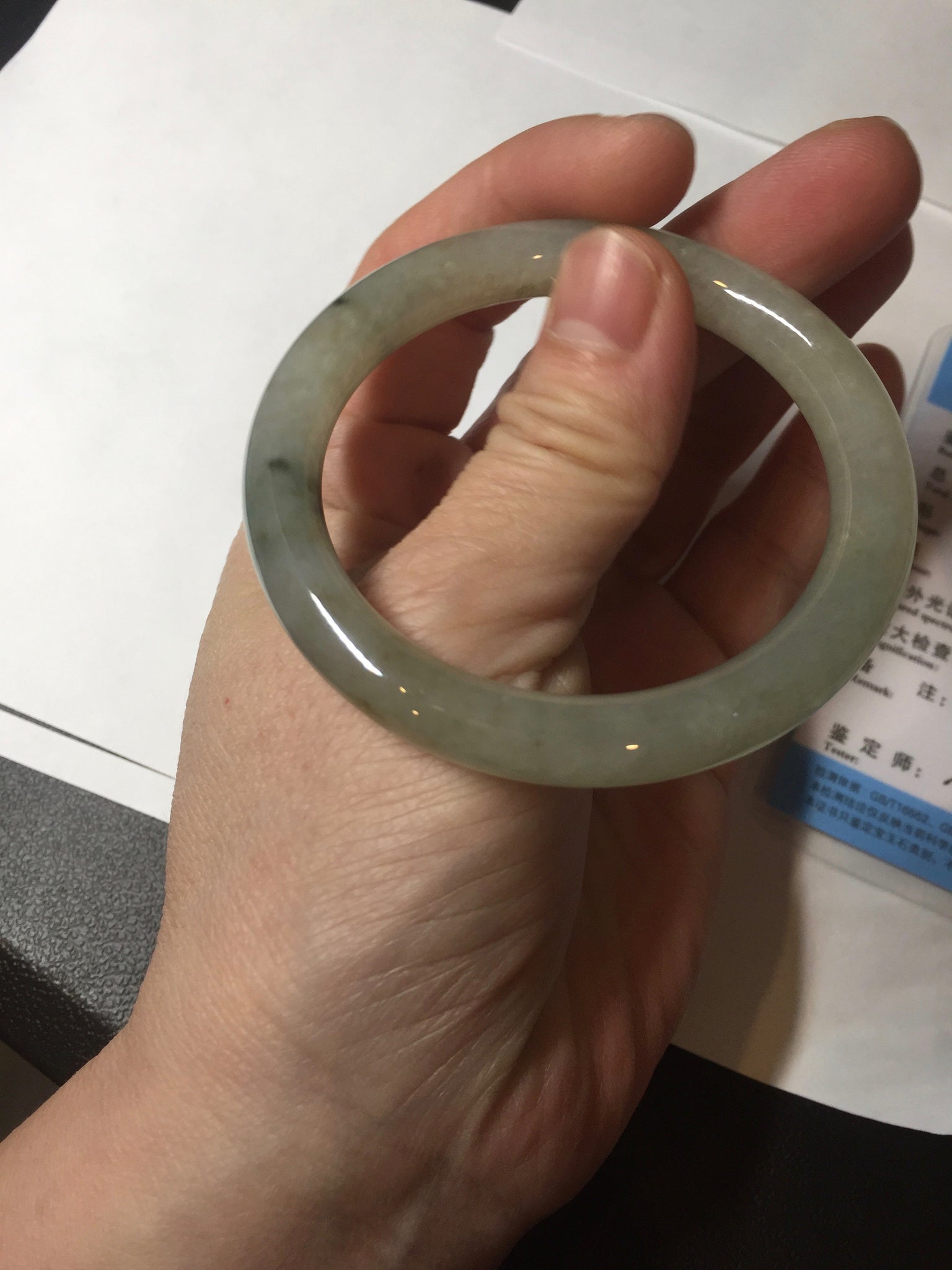 No crack. Some cotton lines and cotton areas. Some black dark green areas or spots wth not so smooth surface areas.