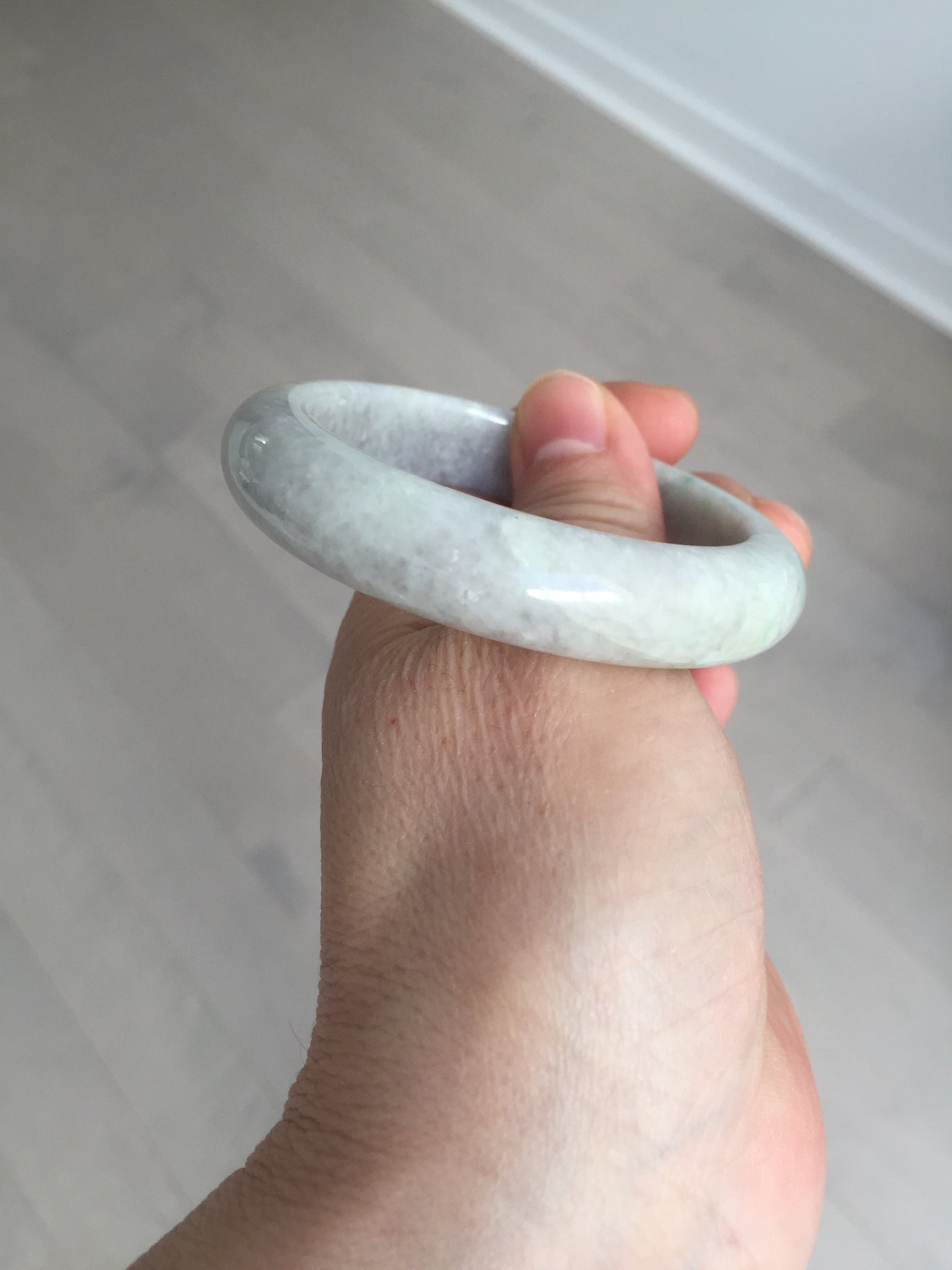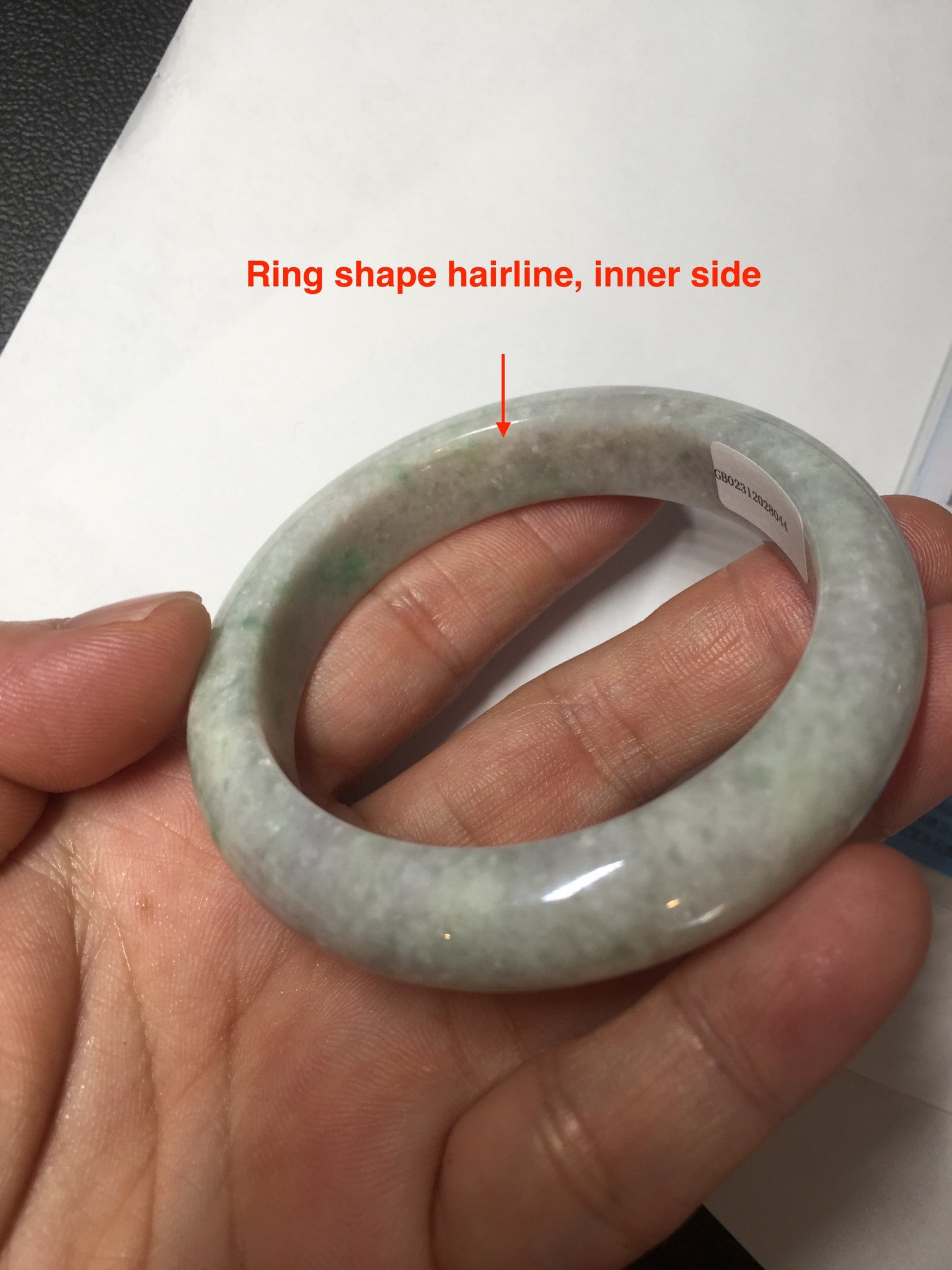 No crack. One ring-shaped hairline. Quite a lot of relatively big cotton areas and spots. Cotton lines. Not transparent. Not watery. The purple is lighter than in the photos due to the purple color always being more camera-friendly.