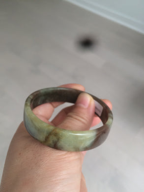 56.8mm certified Type A 100% Natural green/brown round cut Jadeite Jade bangle KS87-1441