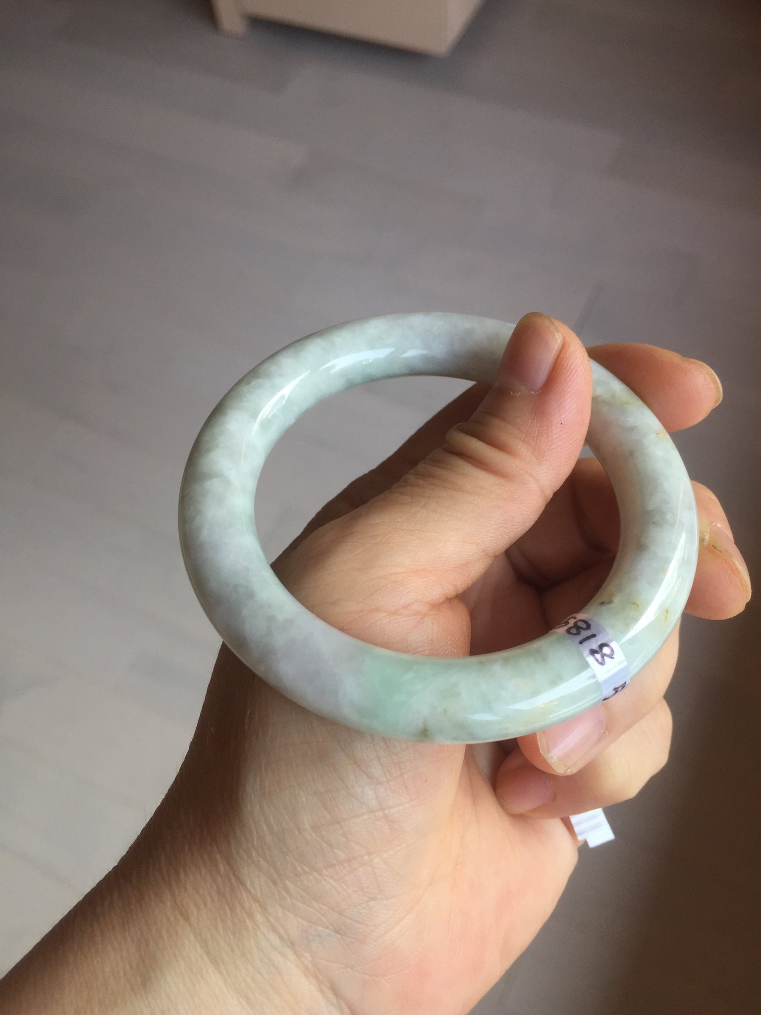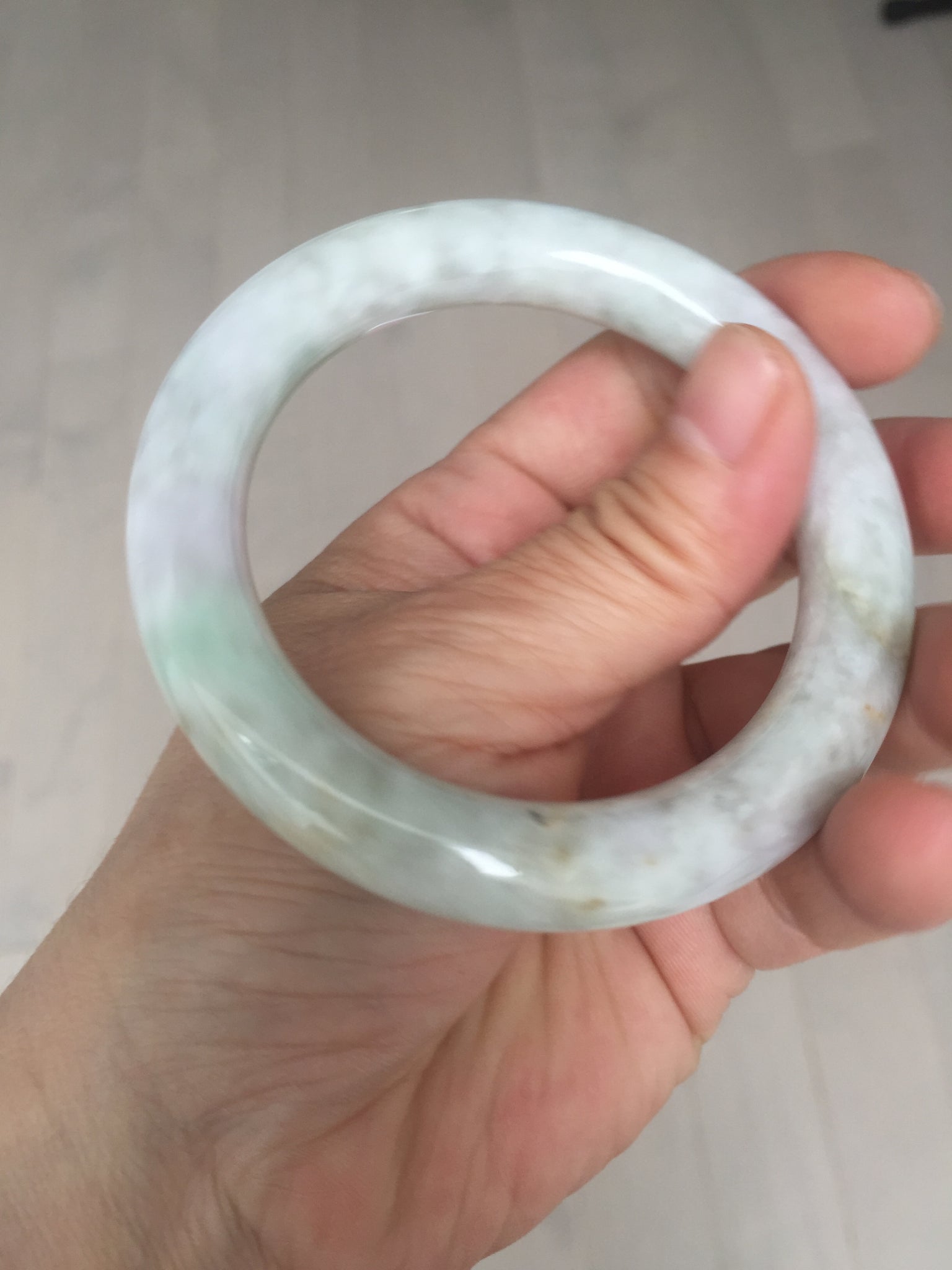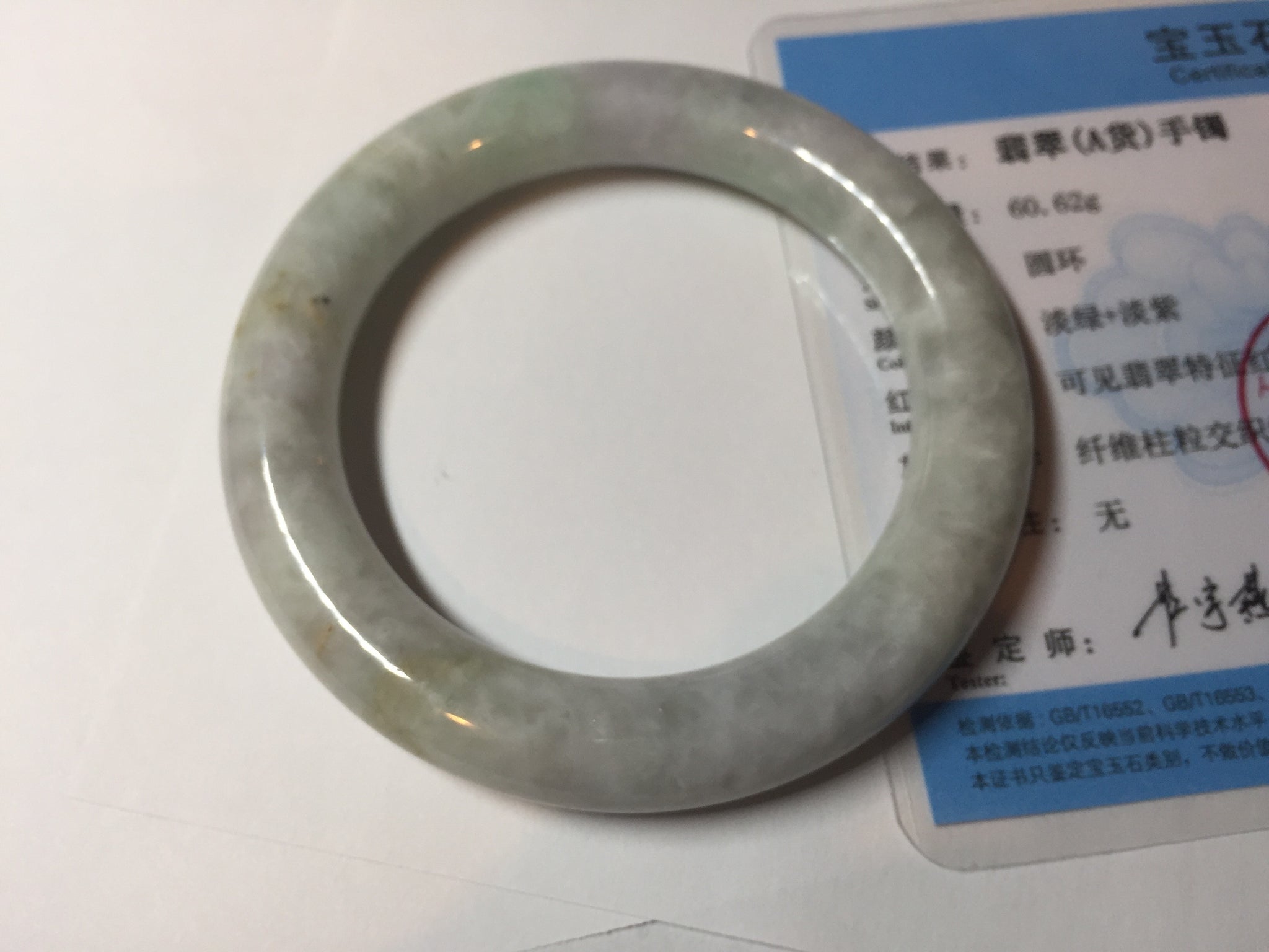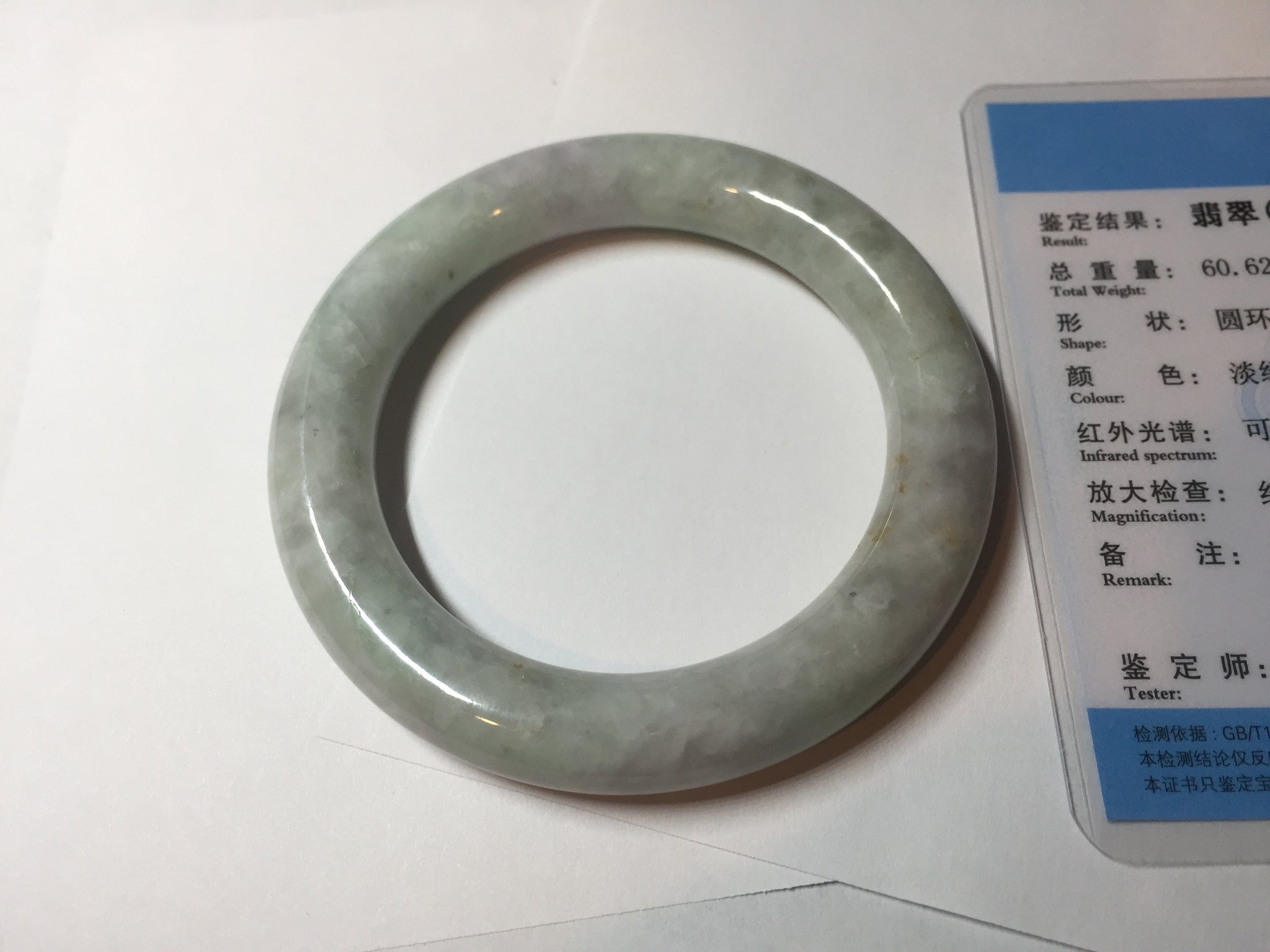 53.9mm Certified 100% natural Type A light green purple brown chubby round cut jadeite jade bangle BQ16-5818