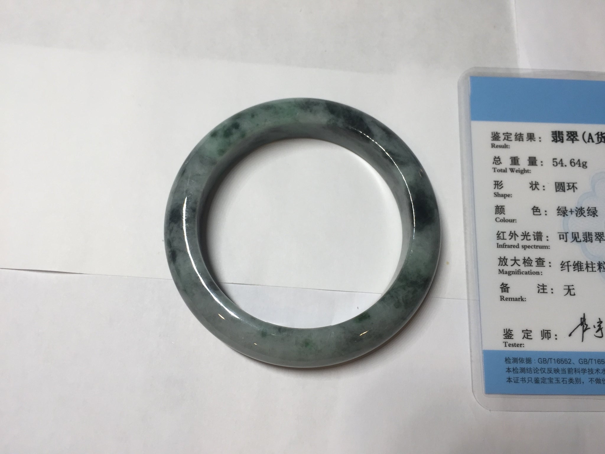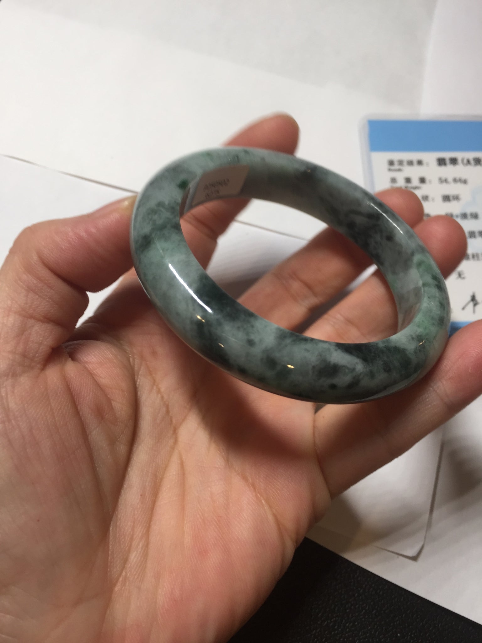 52.5mm certified Type A 100% Natural dark green/black Jadeite Jade bangle PD135-6275