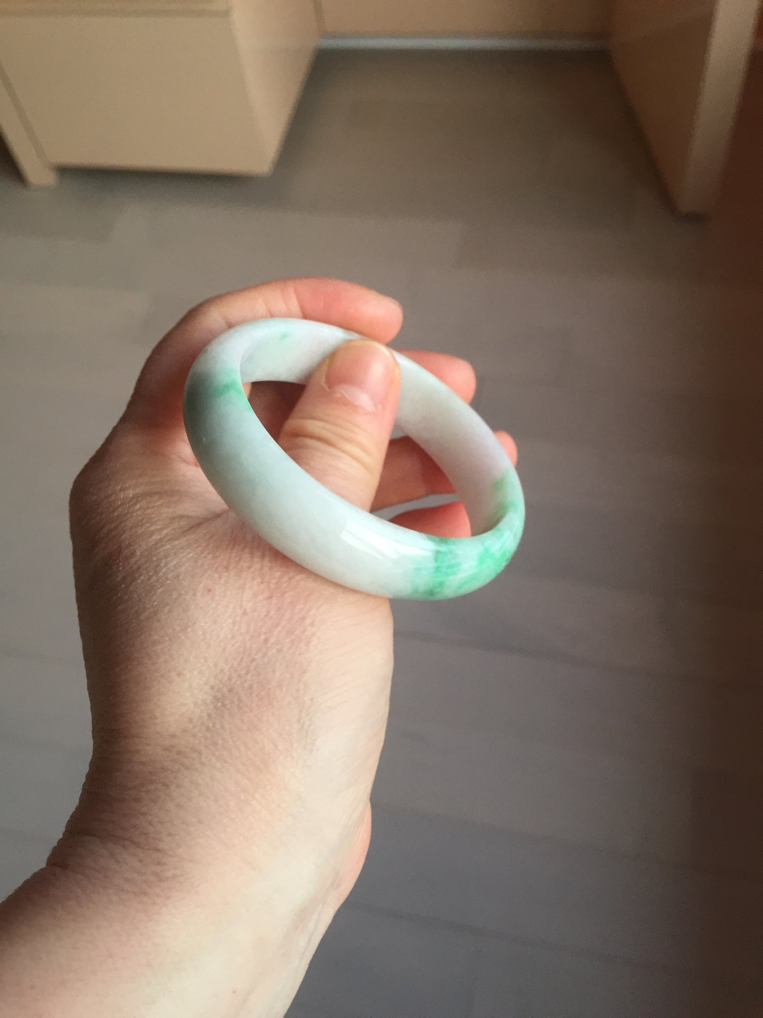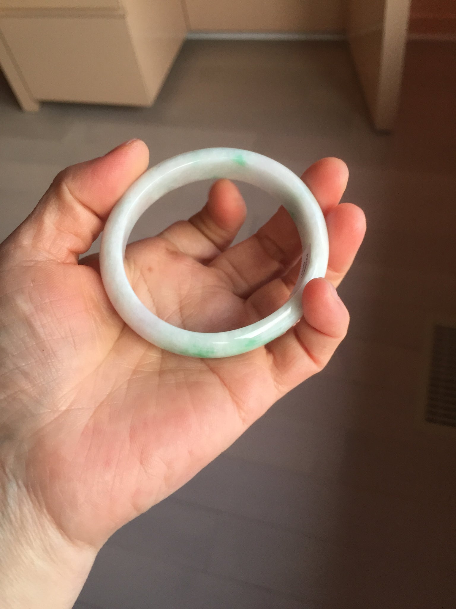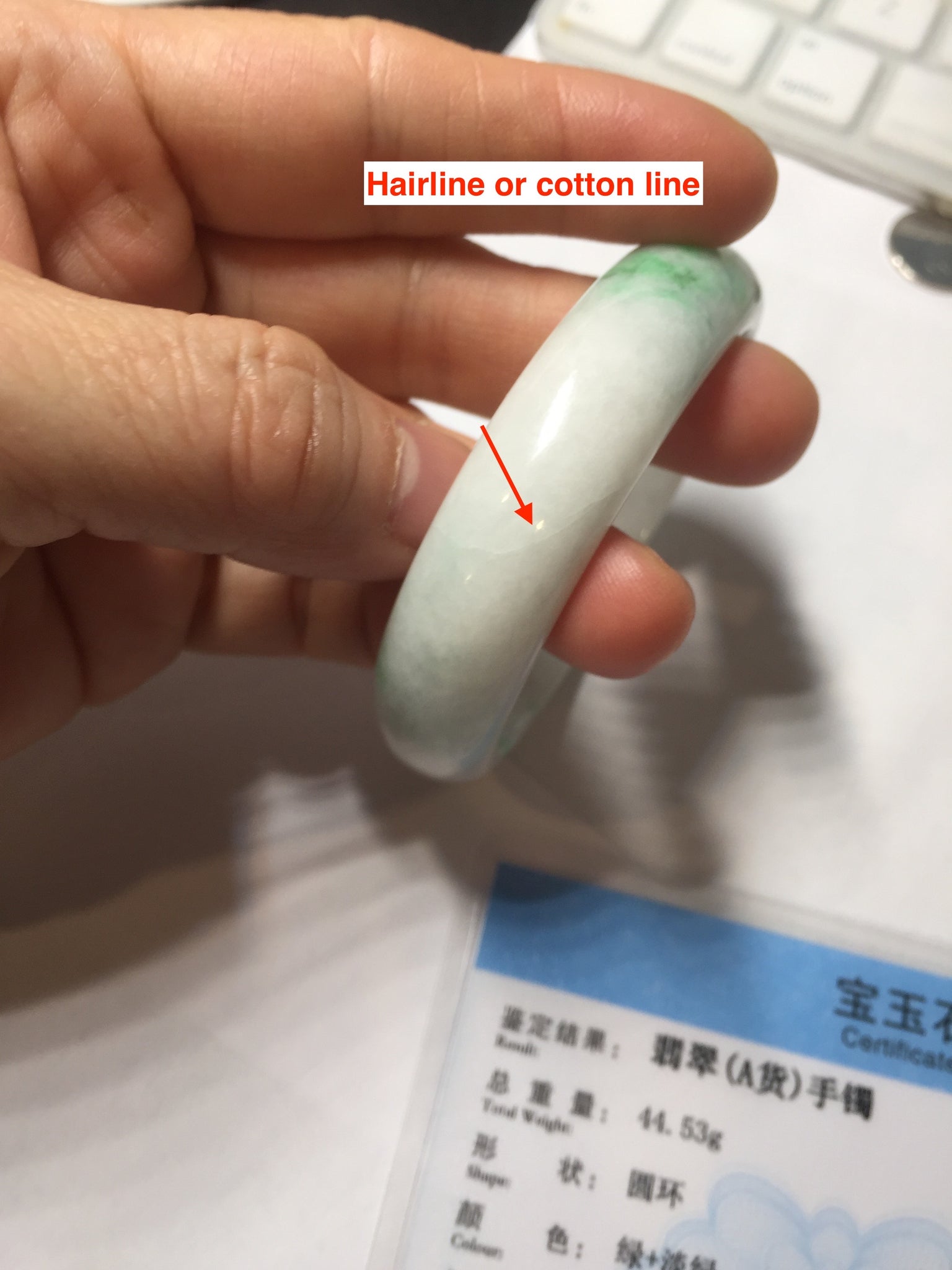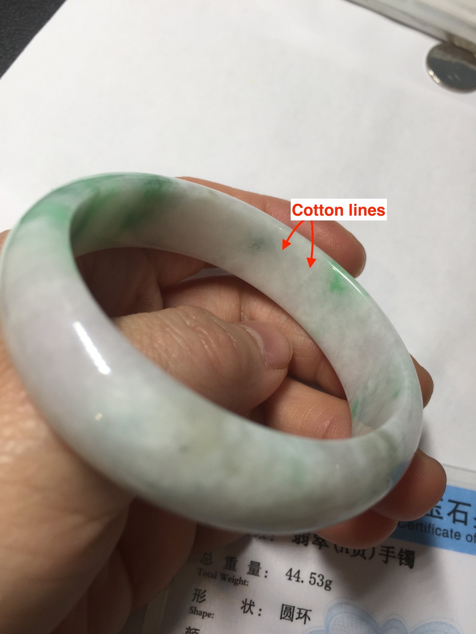 No crack. Some hairlines, structure lines, and cotton lines. Some cotton areas and cotton spots. Not transparent. The purple is a small area and super light. Way lighter than in the photos.