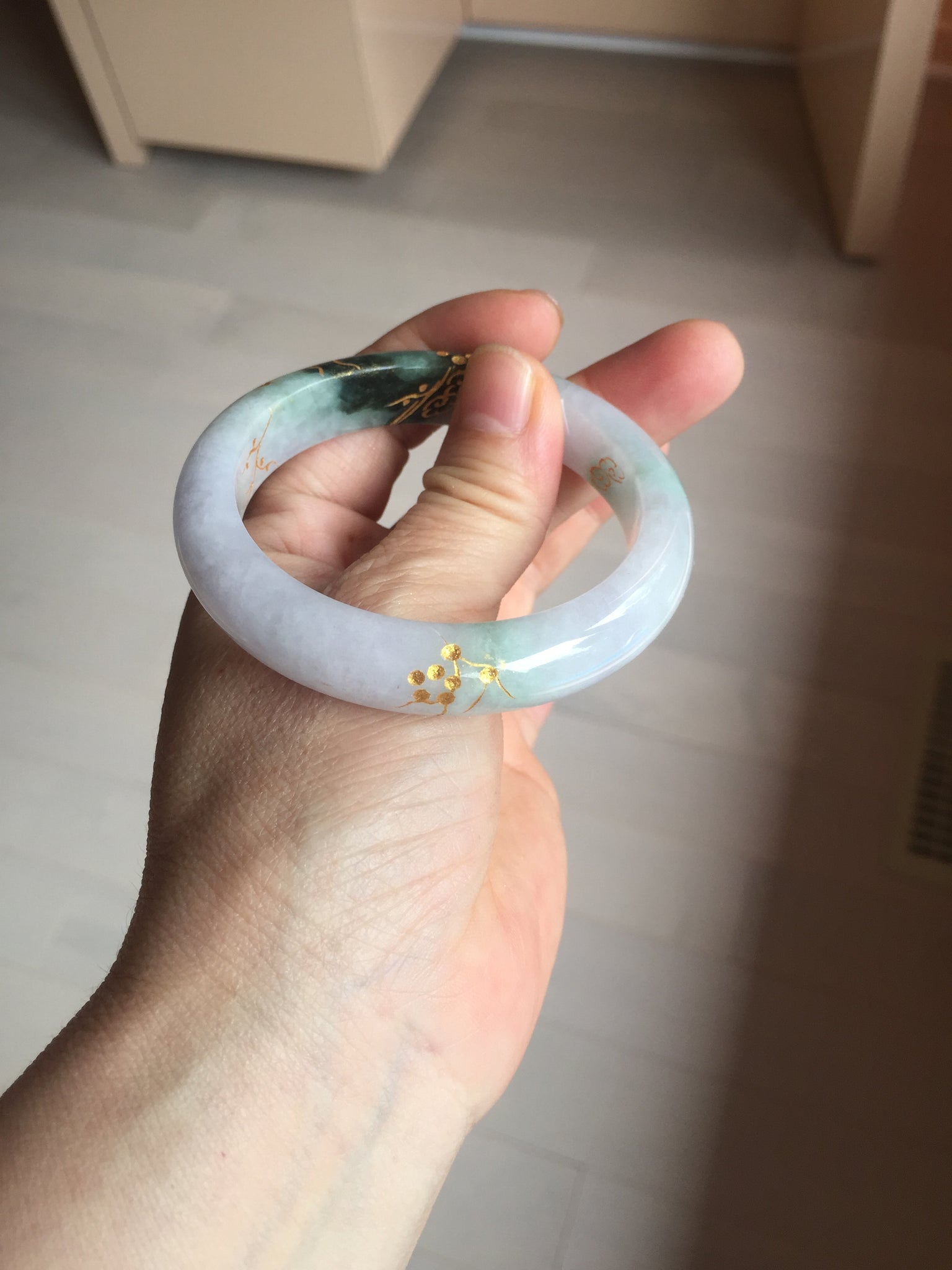 Some cracks or hairlines covered by the carving. The bangle is firm(Guaranteed!). Some structure lines, cotton spots, cotton lines, and cotton areas. The purple is lighter than in the photos due to the purple color always more camera friendly.