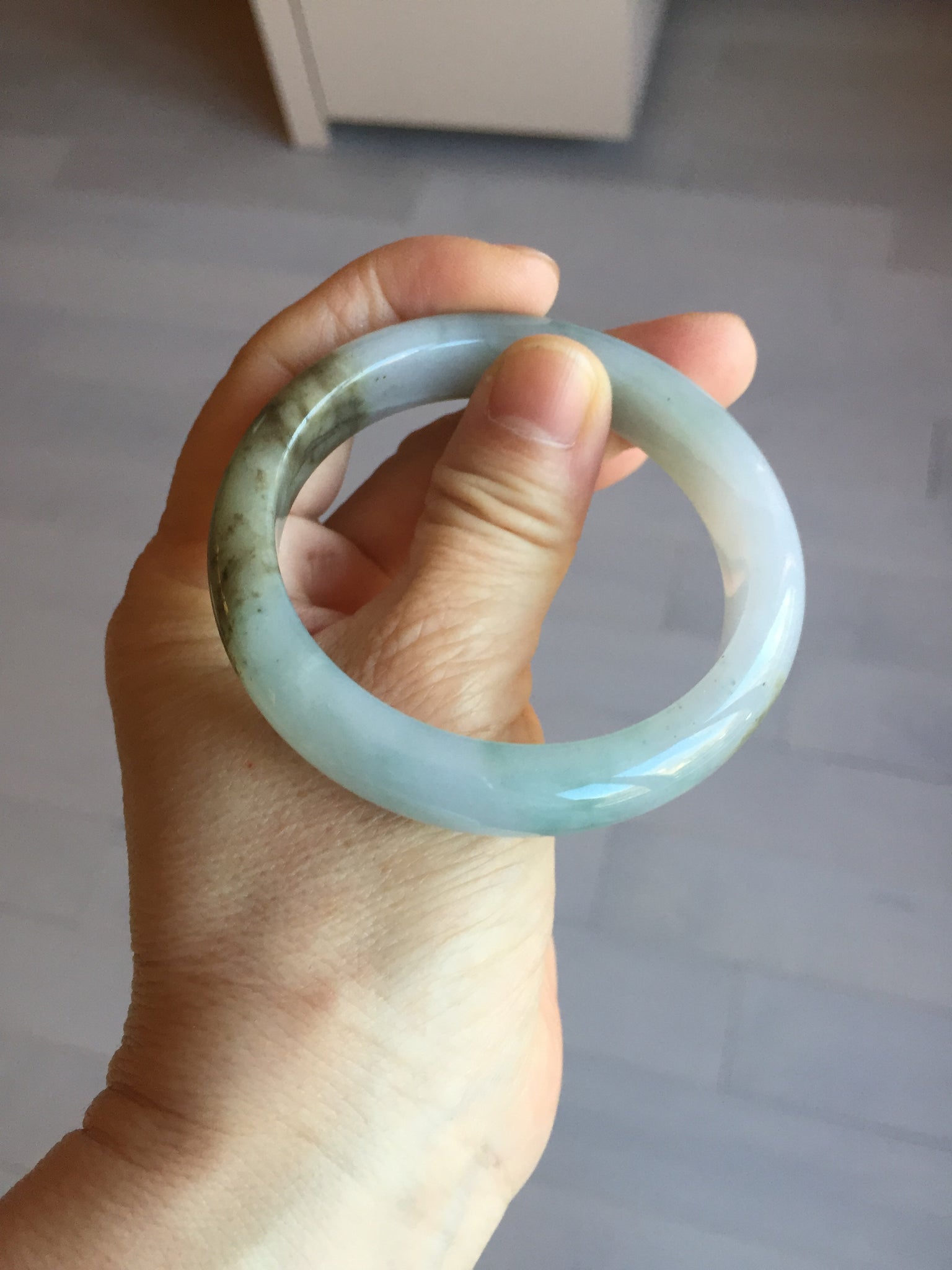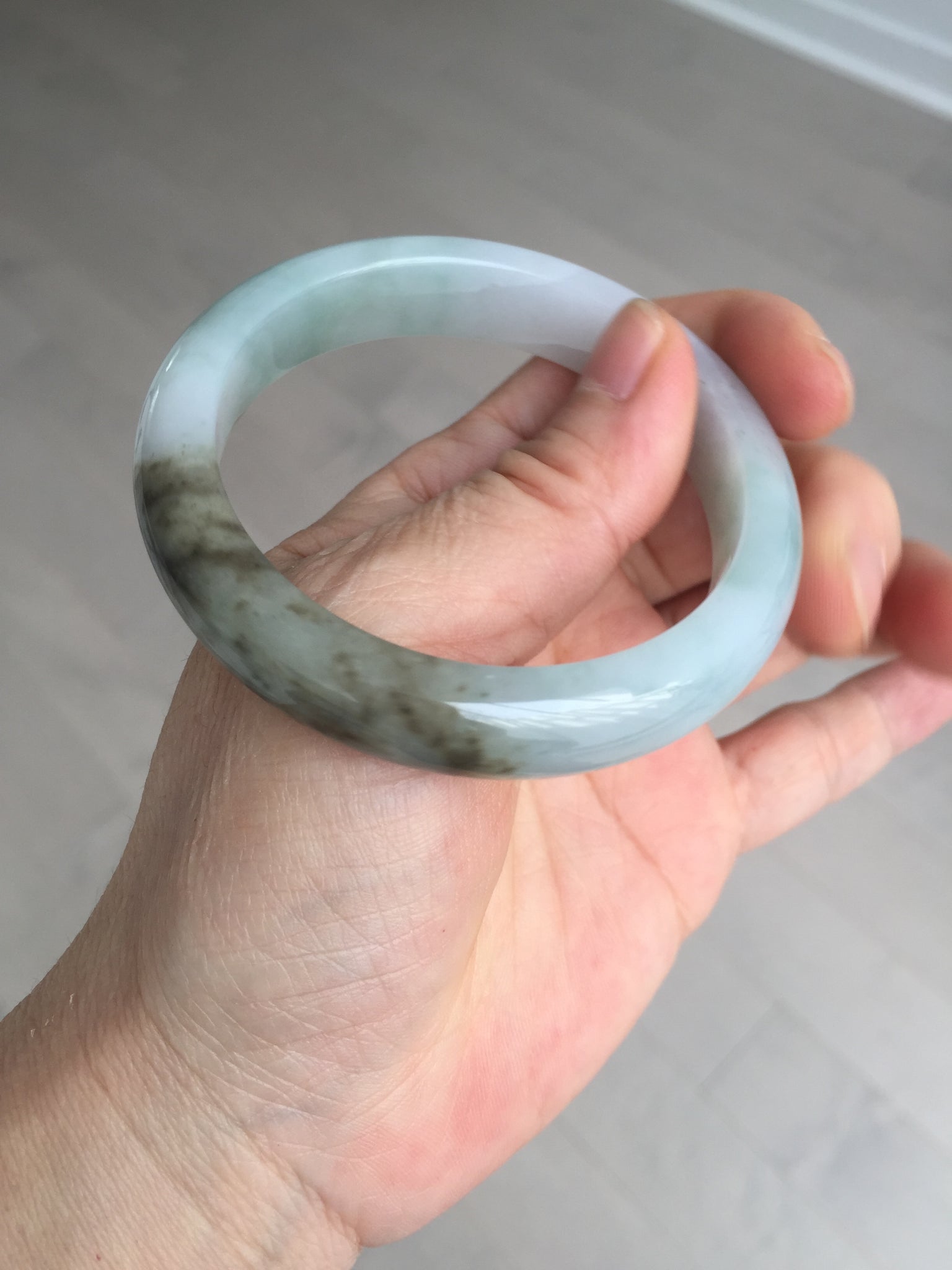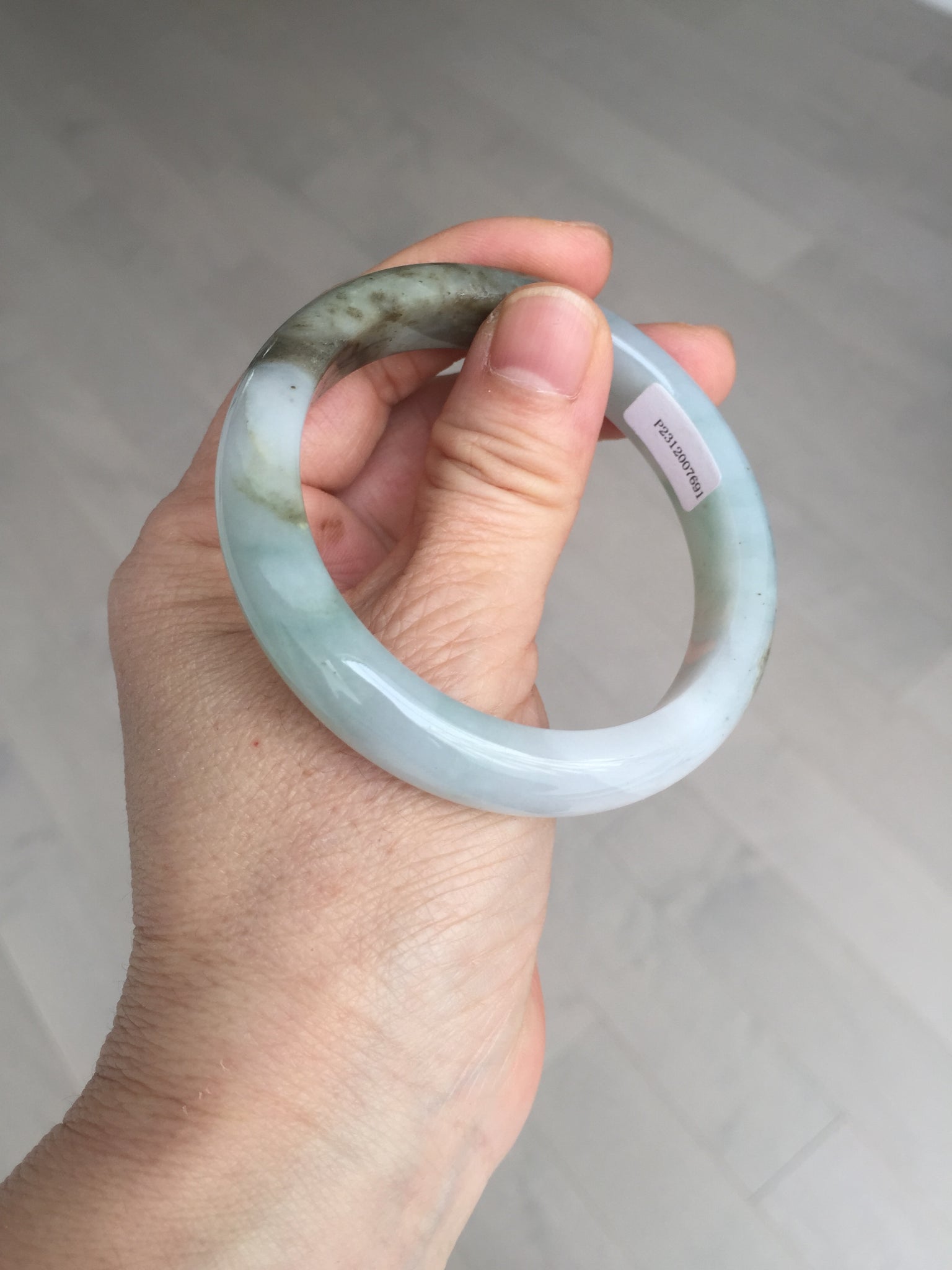 53mm certified 100% natural Type A light green brown jadeite jade bangle AX133-7691