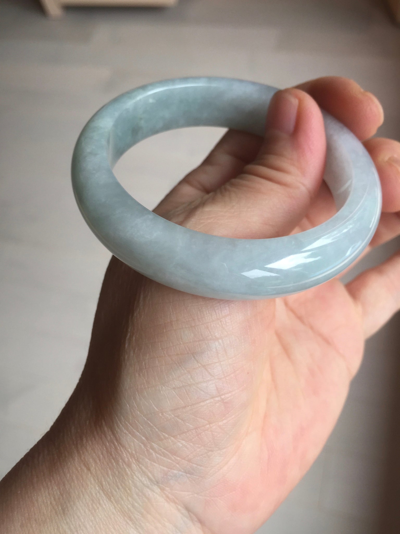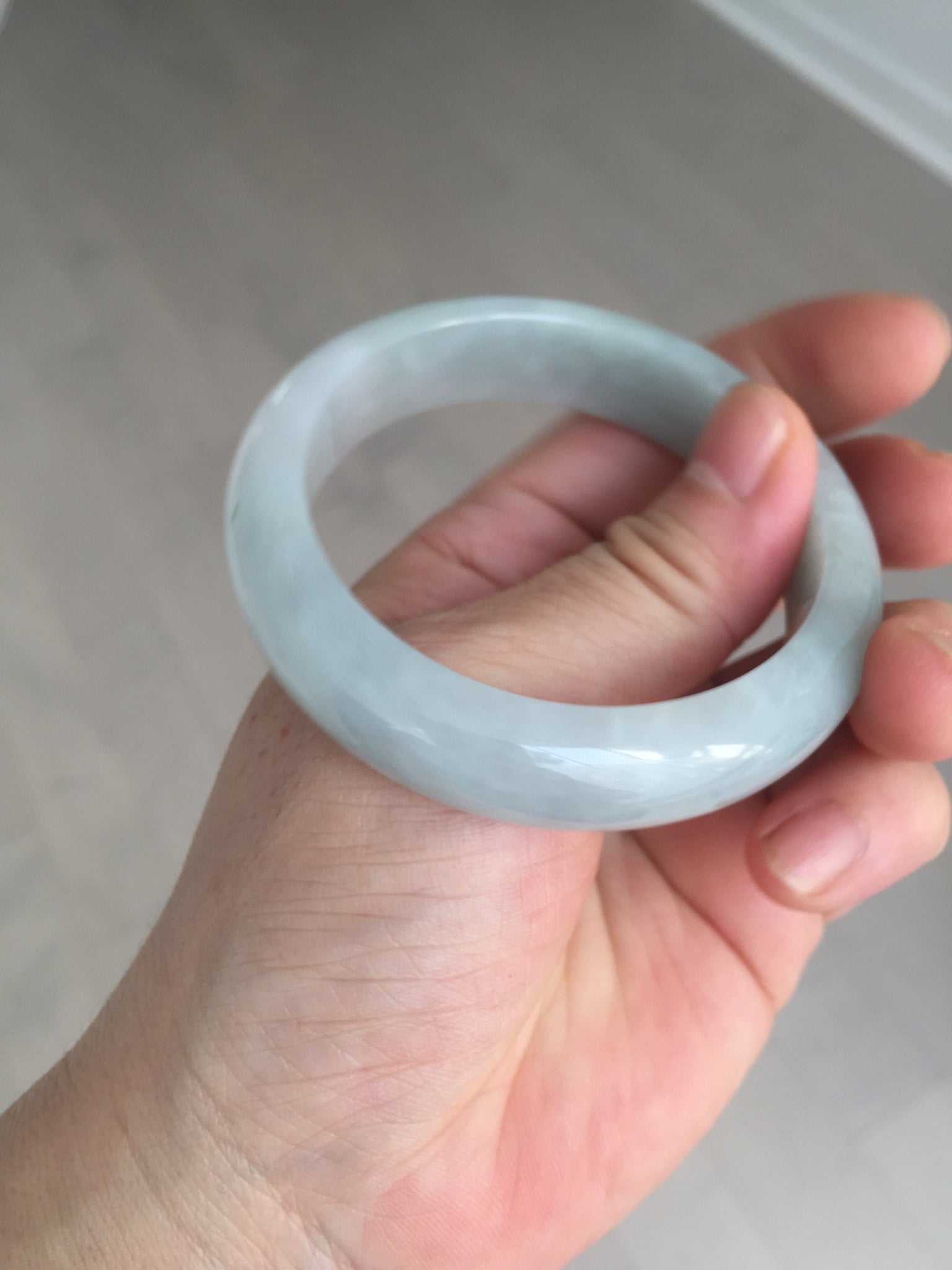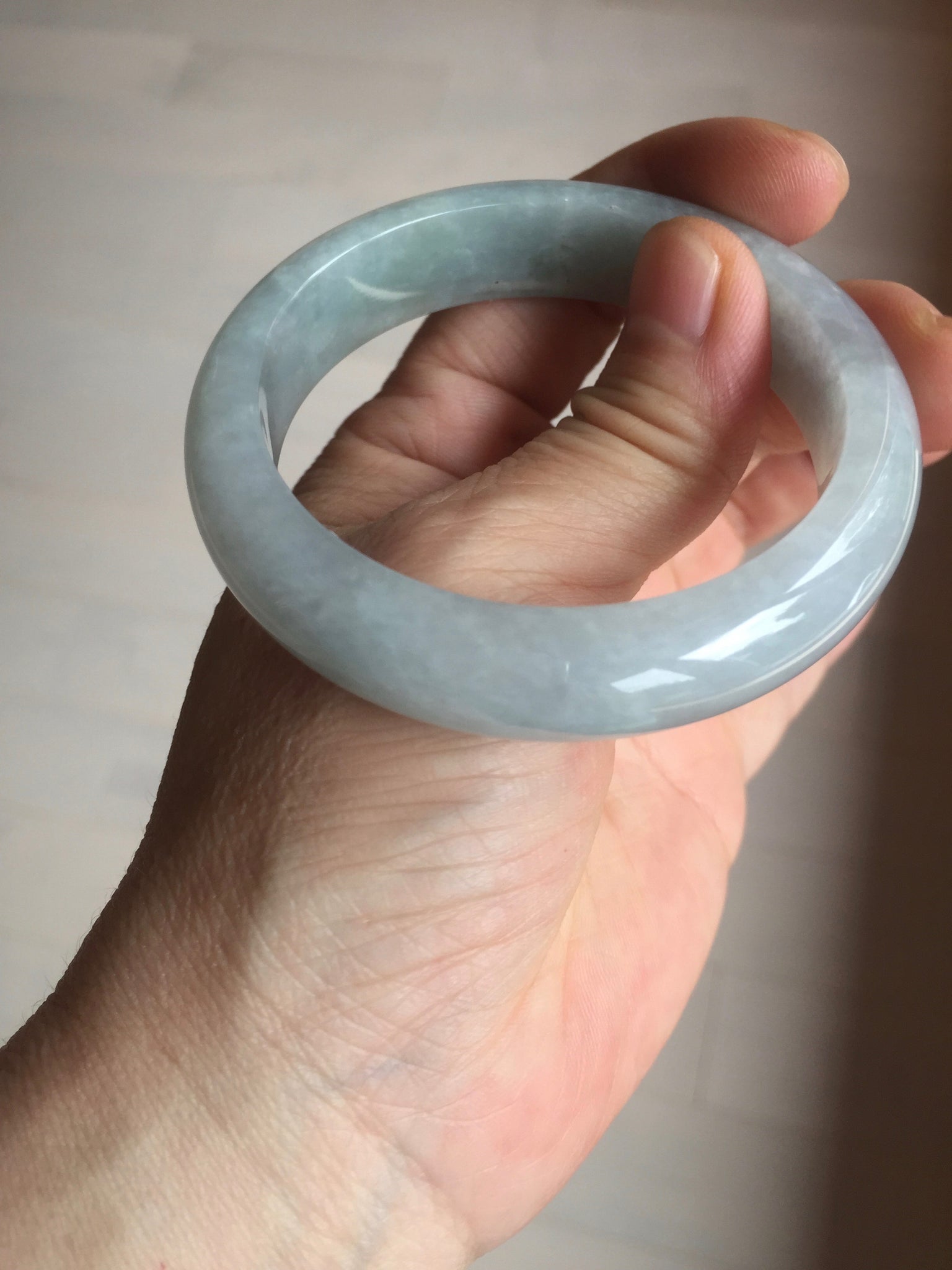 One surface crack and one hairline. Guaranteed the firmness of the bangle. Some cotton lines and cotton spots. The purple is super light and just a hint of it. It is lighter than in the photos since purple is more camera-friendly.