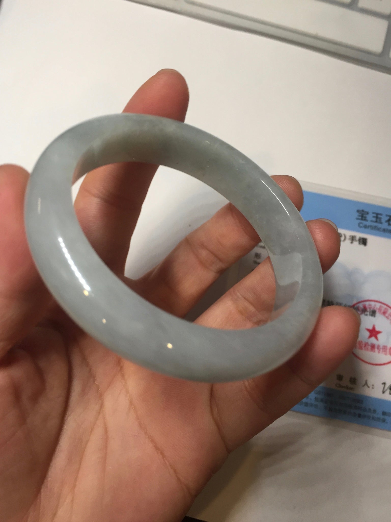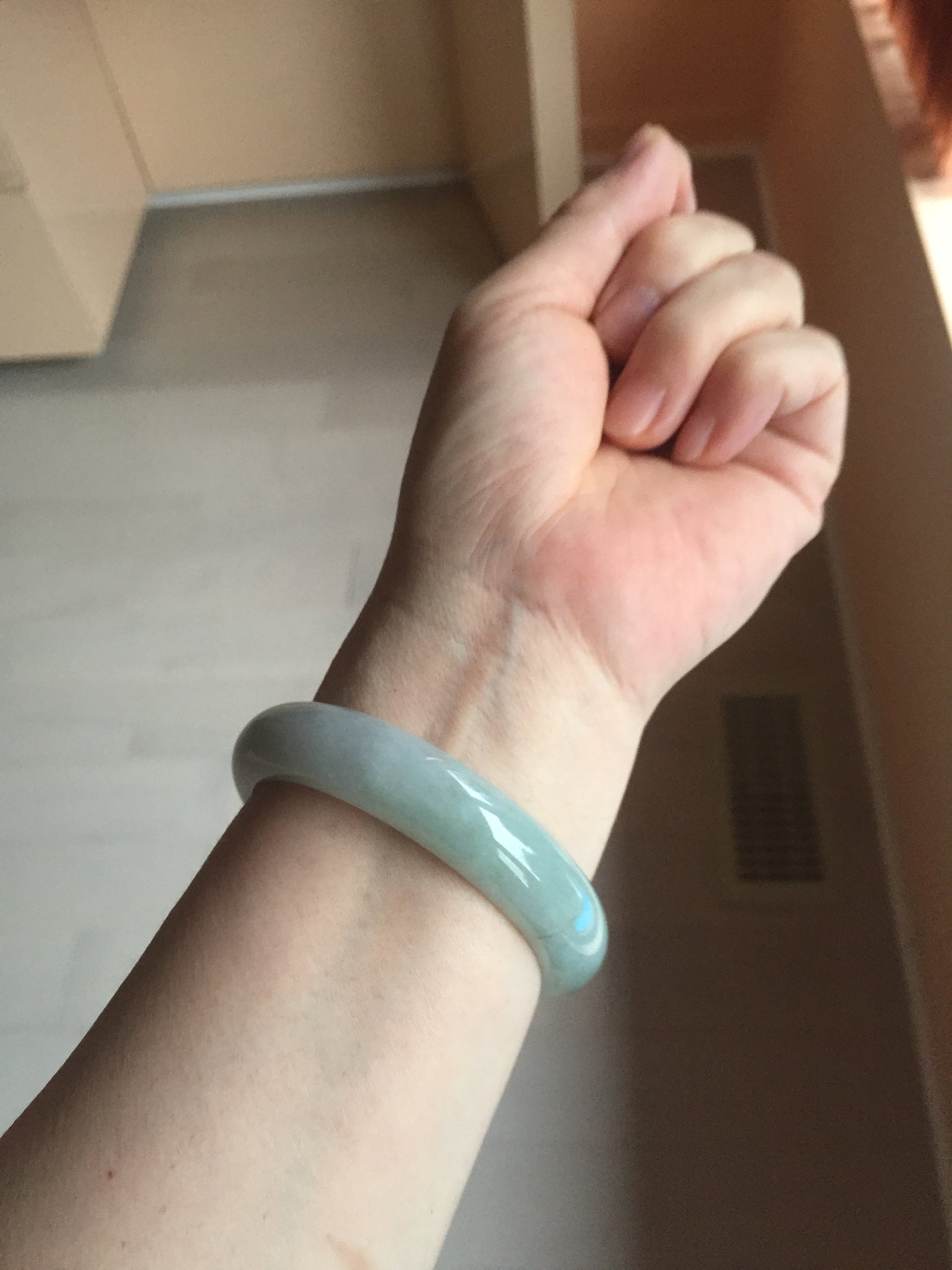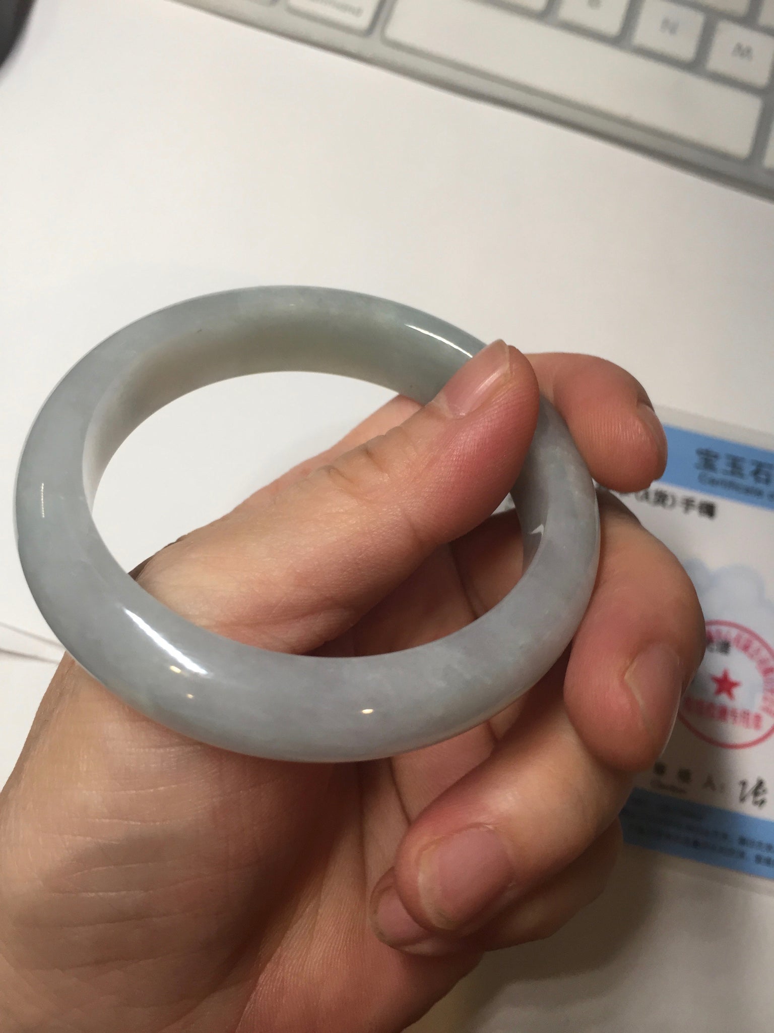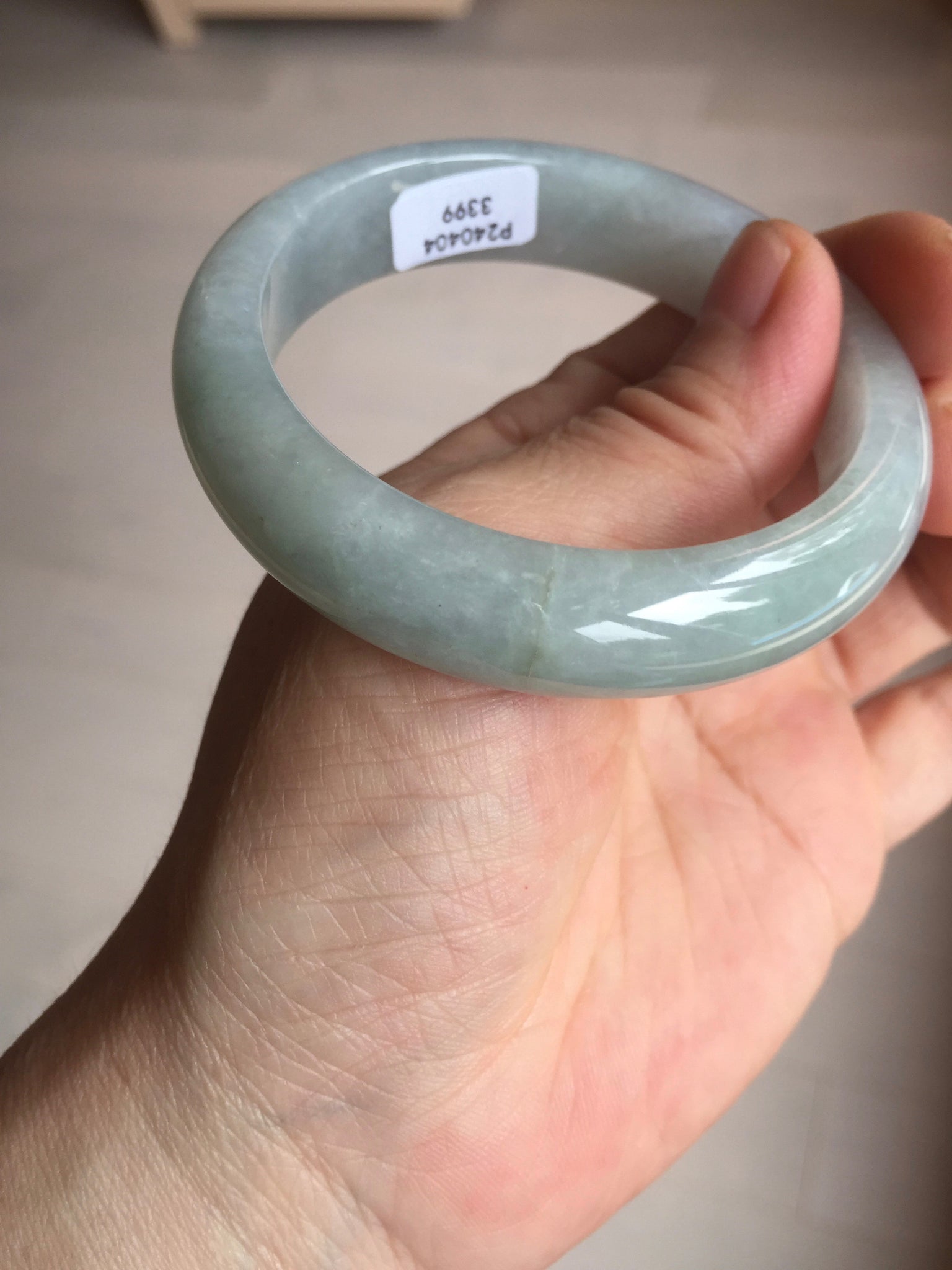 One surface crack and one hairline. Guaranteed the firmness of the bangle. Some cotton lines and cotton spots. The purple is super light and just a hint of it. It is lighter than in the photos since purple is more camera-friendly.