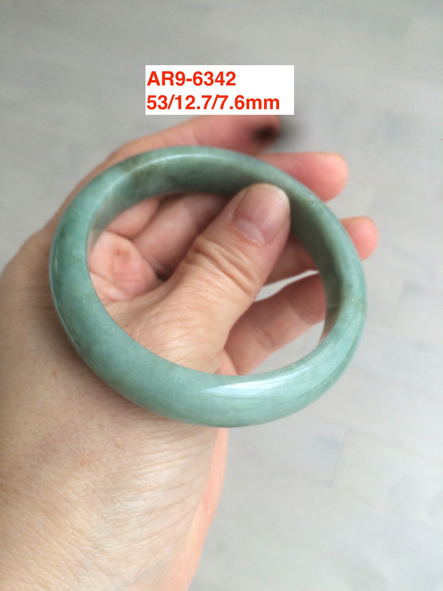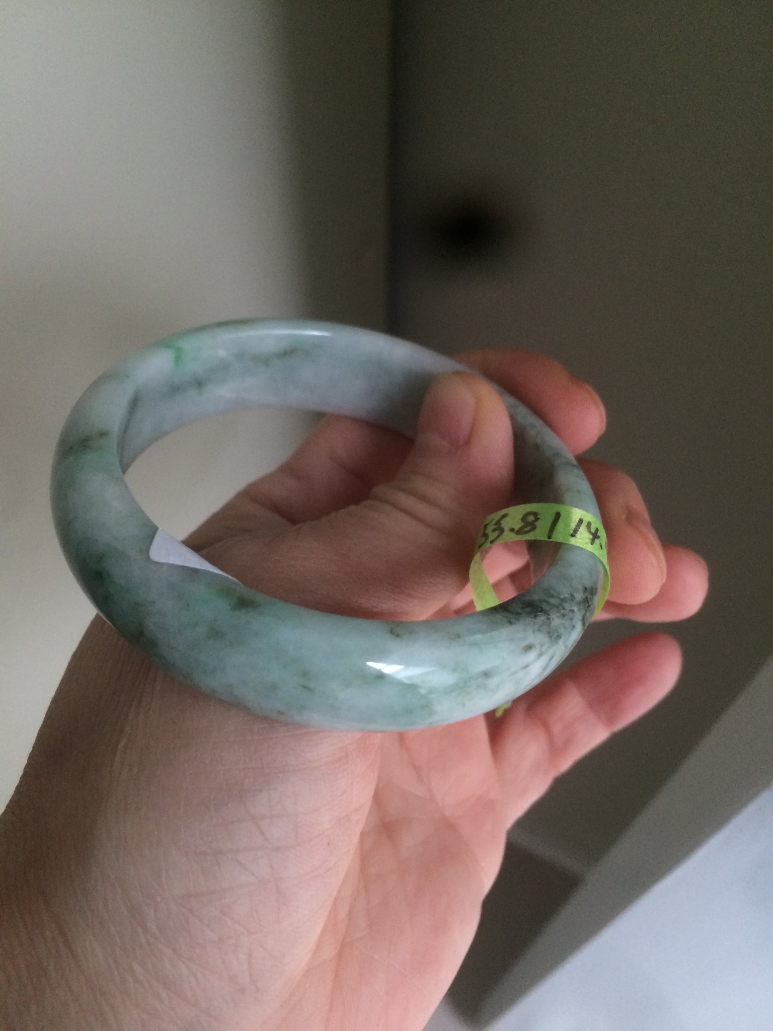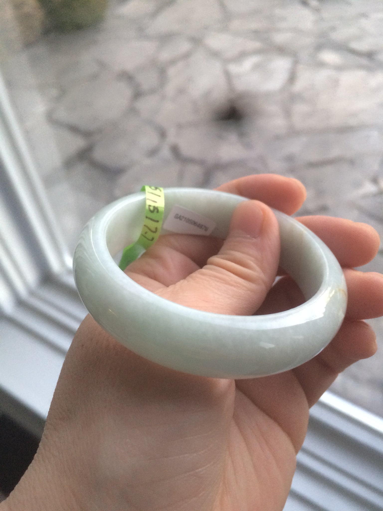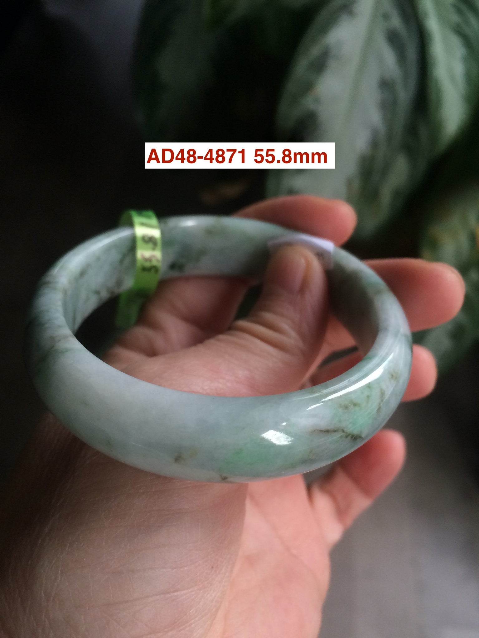 Jadeite Jade Bangles in a variety of sizes. With this low price, they all have big defects (cracks, hairlines, mine pits, dark spots, black areas). But all of them are really firm. Makes a high-pitched sound when clicked. All purple is really light, lighter than the photos.