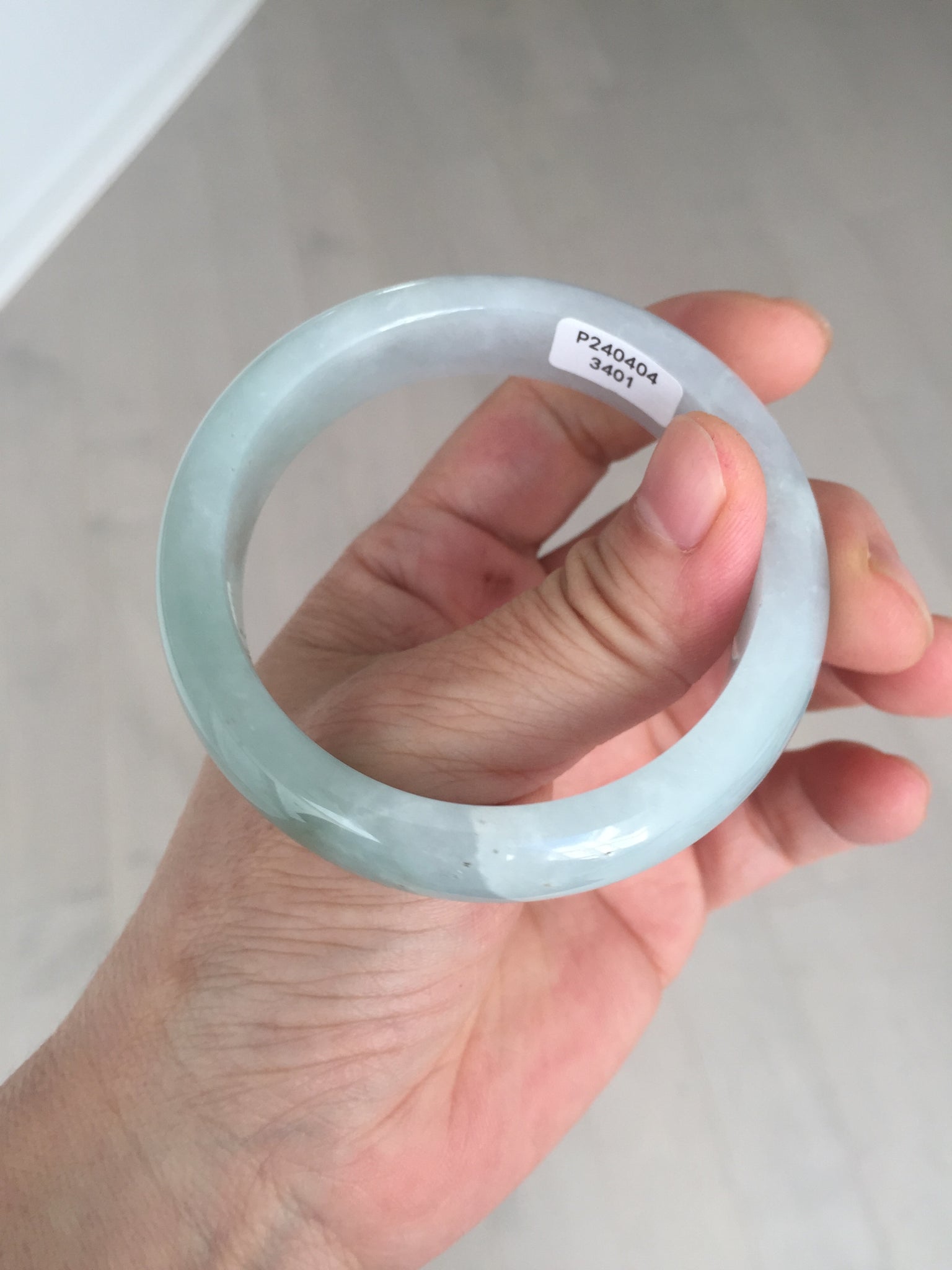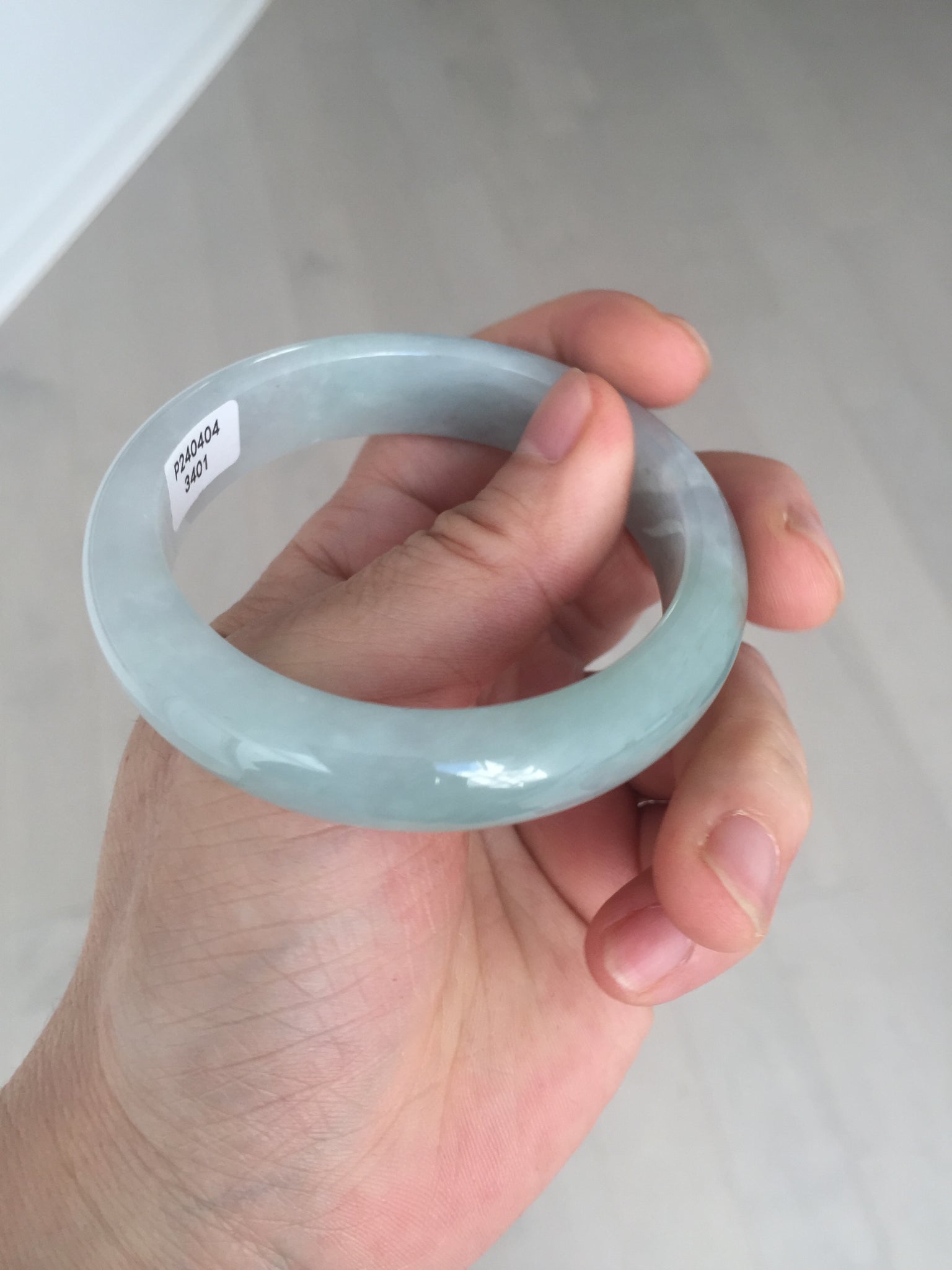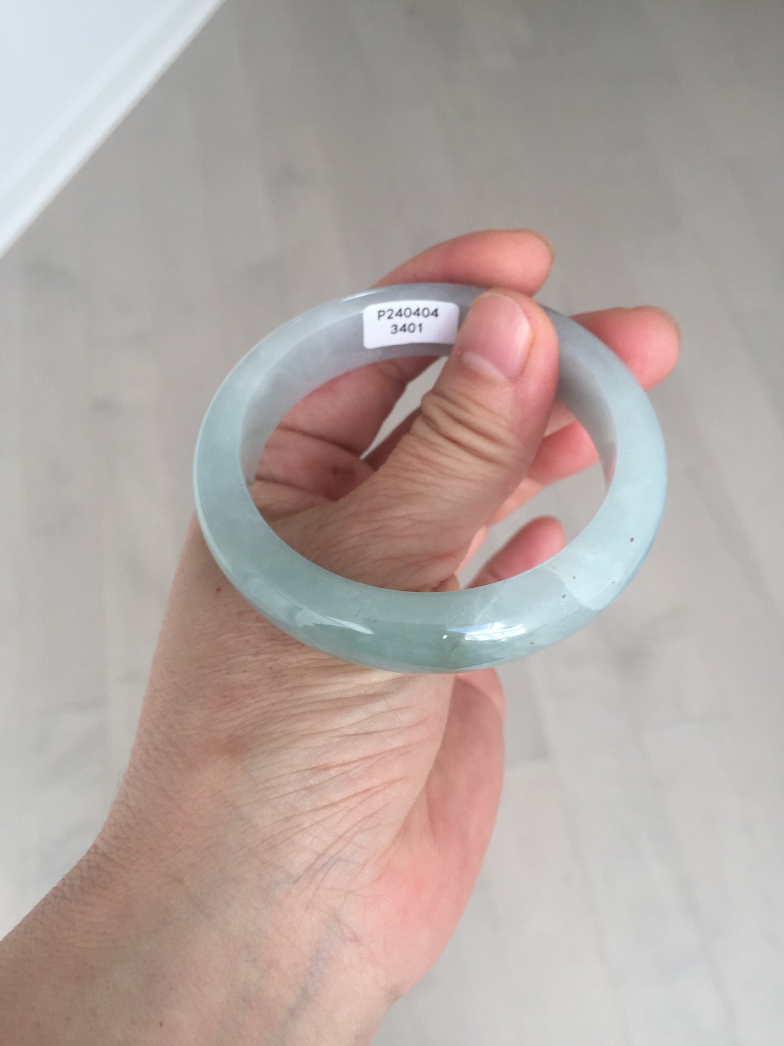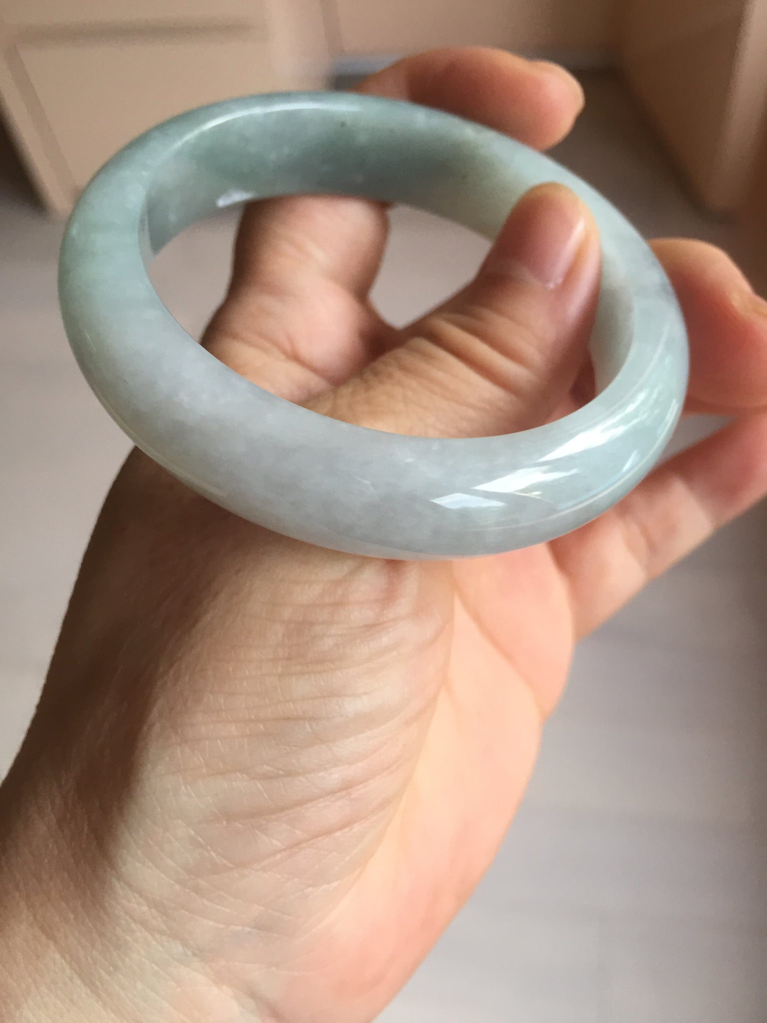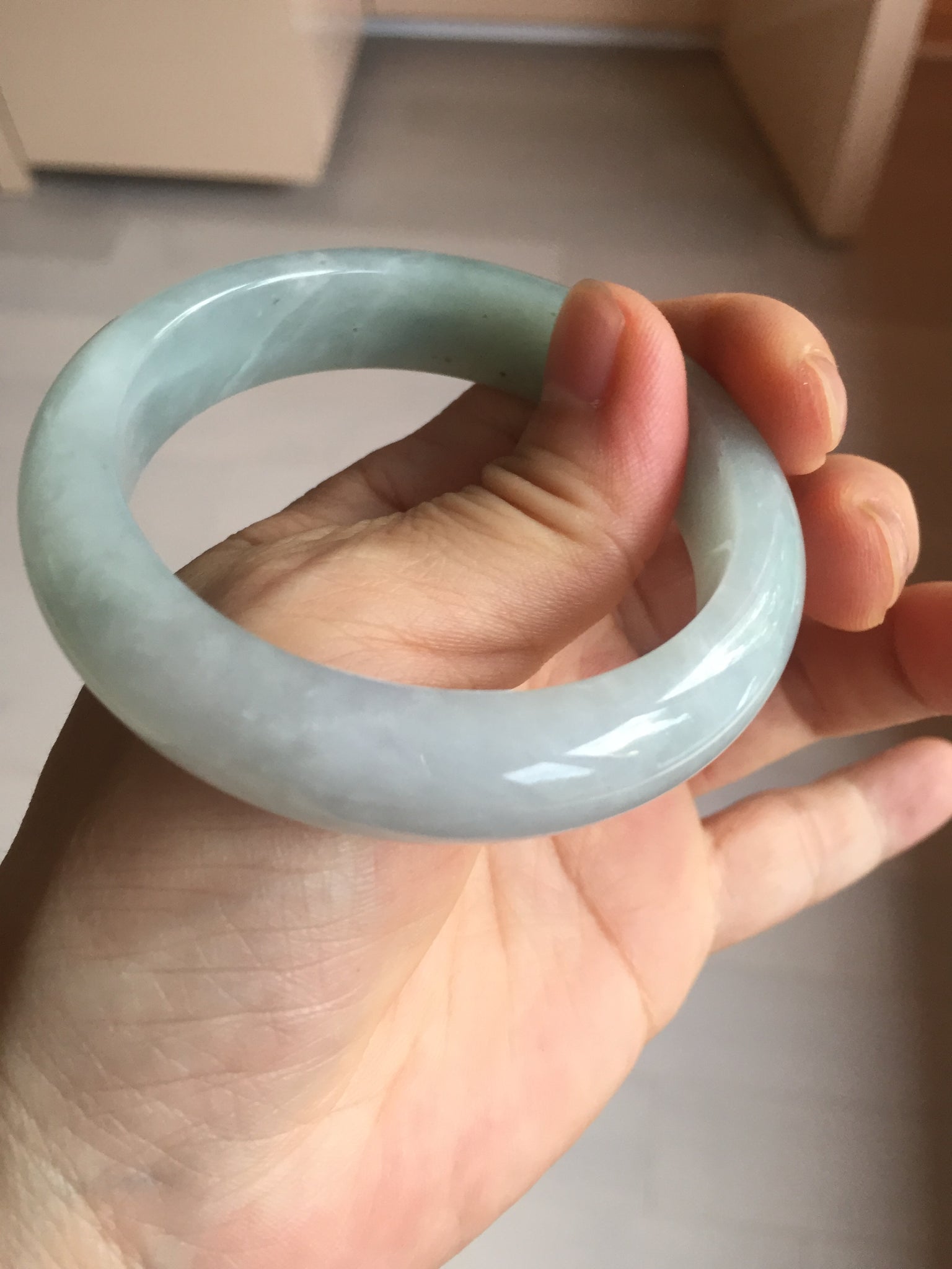 One crack. Some hairlines and one of them goes around the bangle. The hairlines won't influence the firmness of the bangle. Some cotton lines, areas, spots, and brown/ black spots. The purple is super light and way lighter than in the photos due to the purple color always being more camera-friendly.