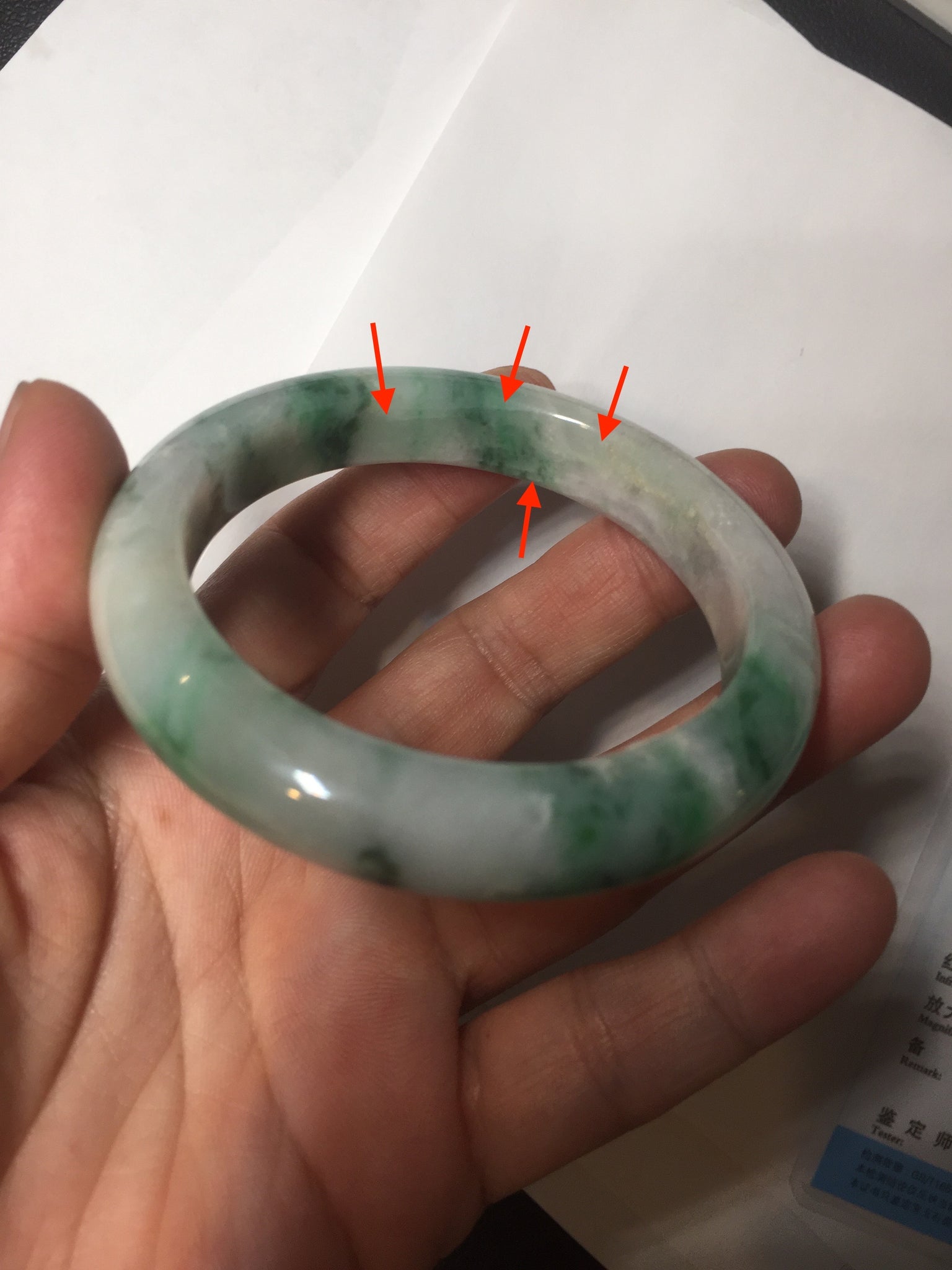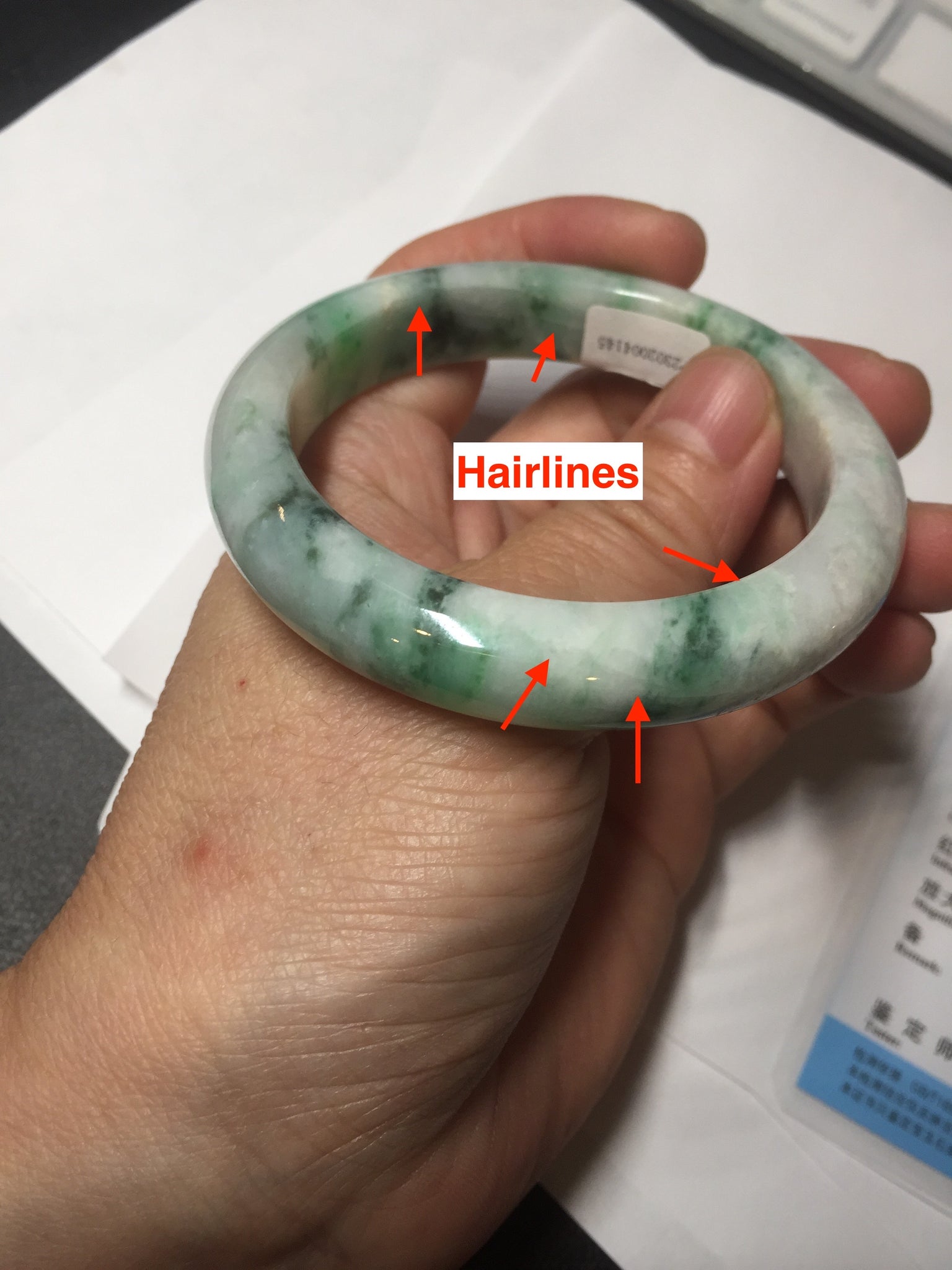 Some rough surface ares with surface cracks, scratches, or mine pits. Quite a lot of hairlines or cotton lines. Some of them are long. The bangle is solid (Guaranteed!). The texture is not delicate. Some cotton areas and spots. Not transplant. The purple is lighter than in the photos due to the purple color always more camera friendly.