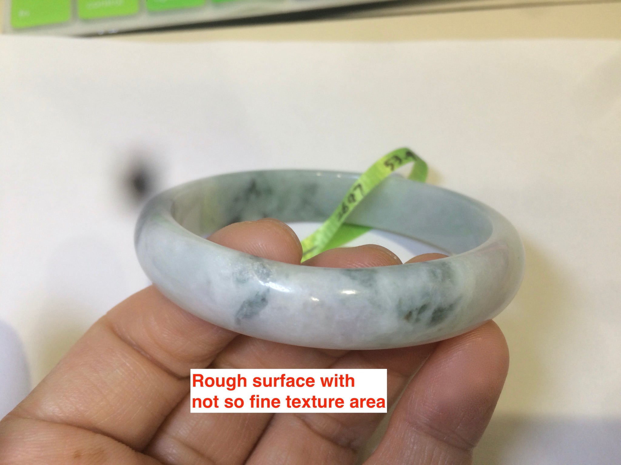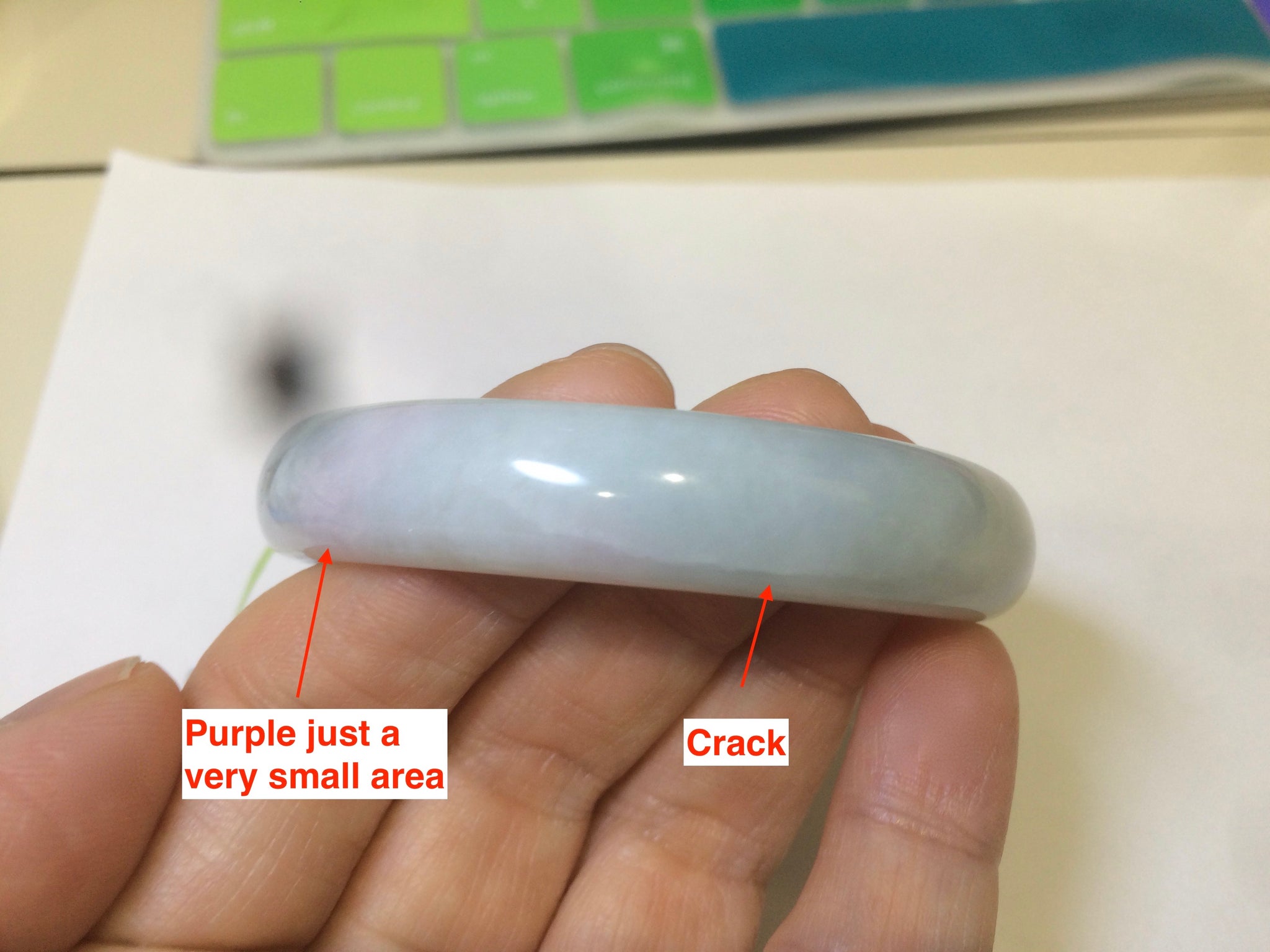 Some cracks. Some hairlines. One area is not so smooth. No transparent. No watery.