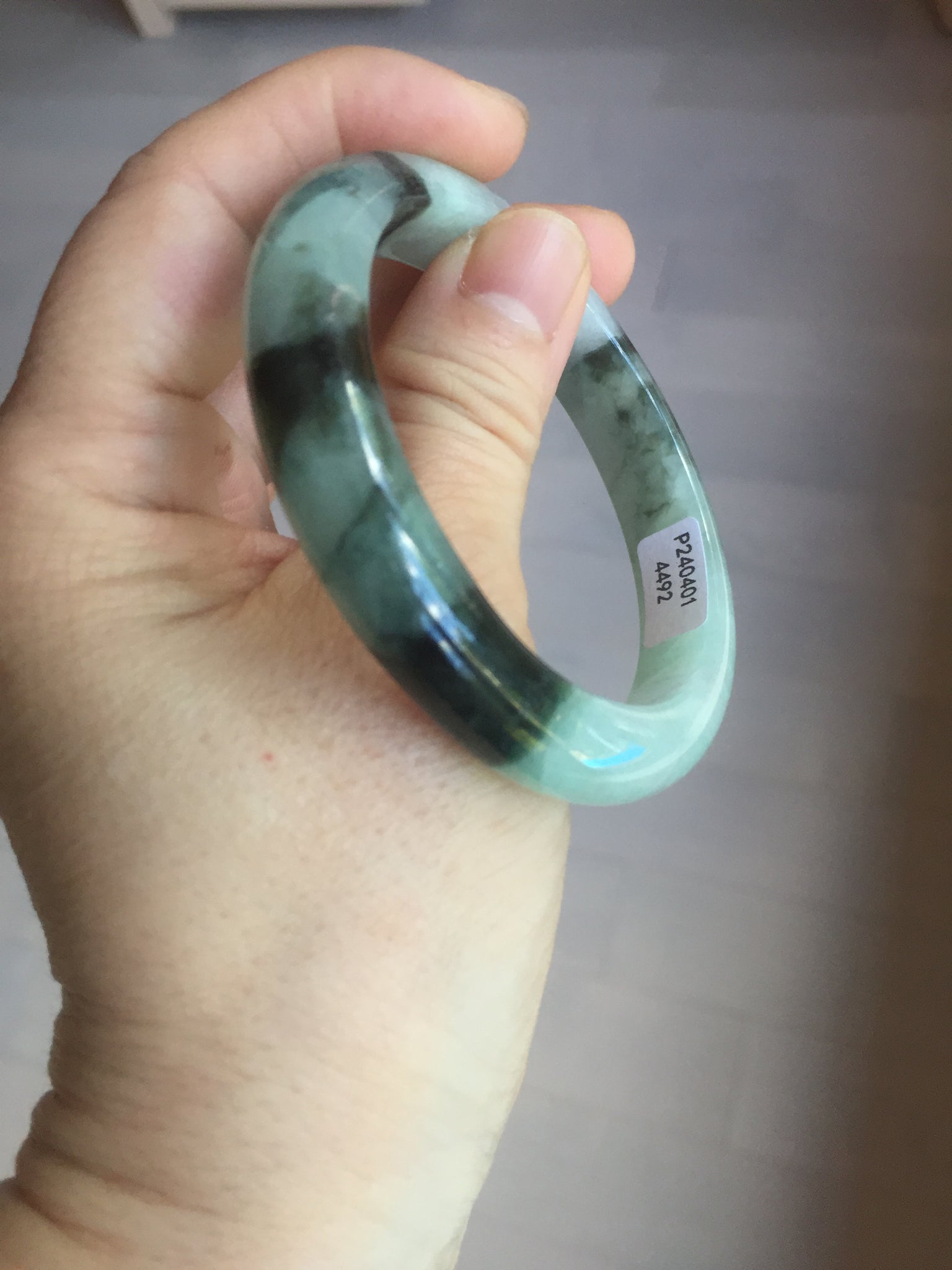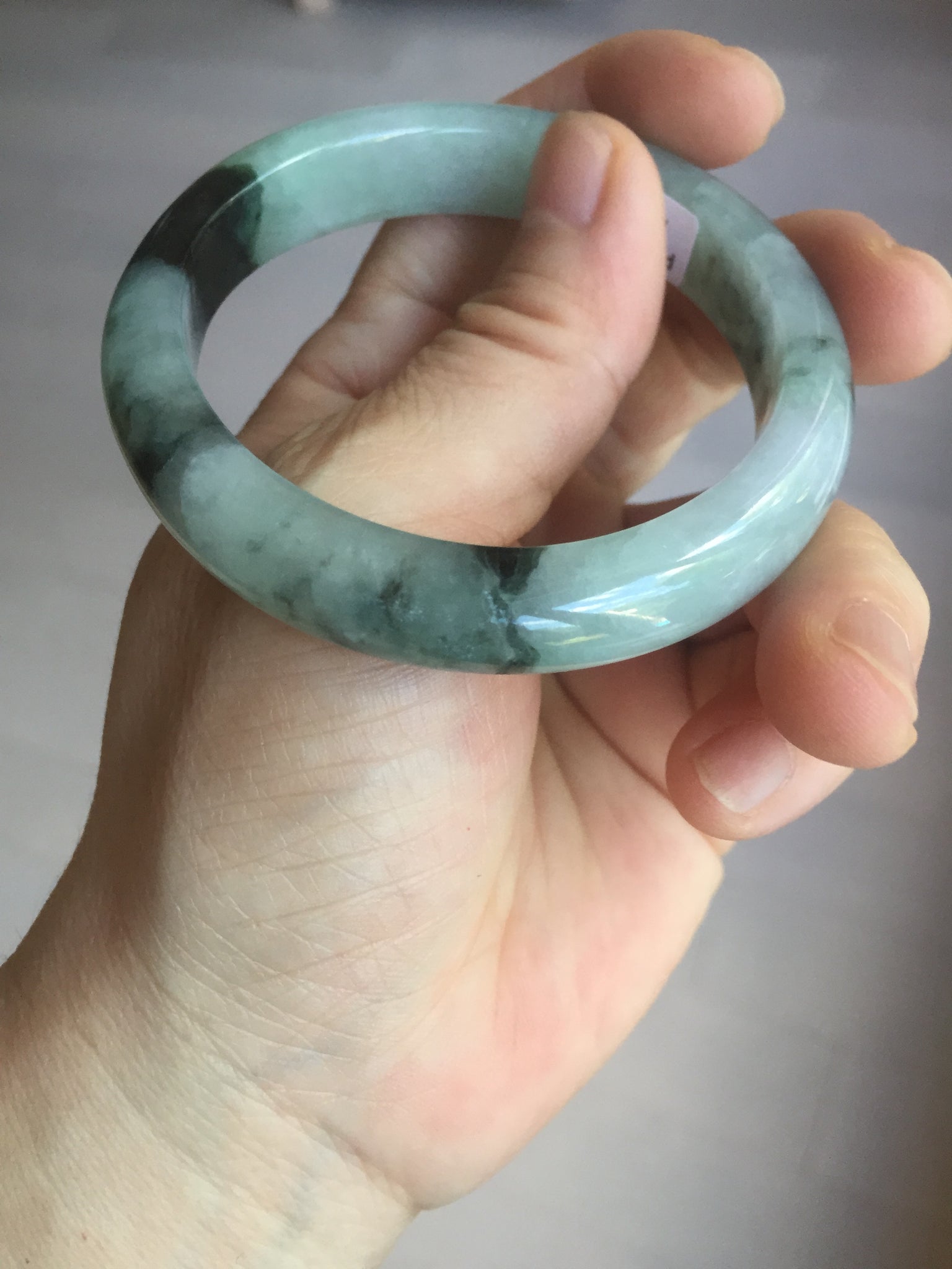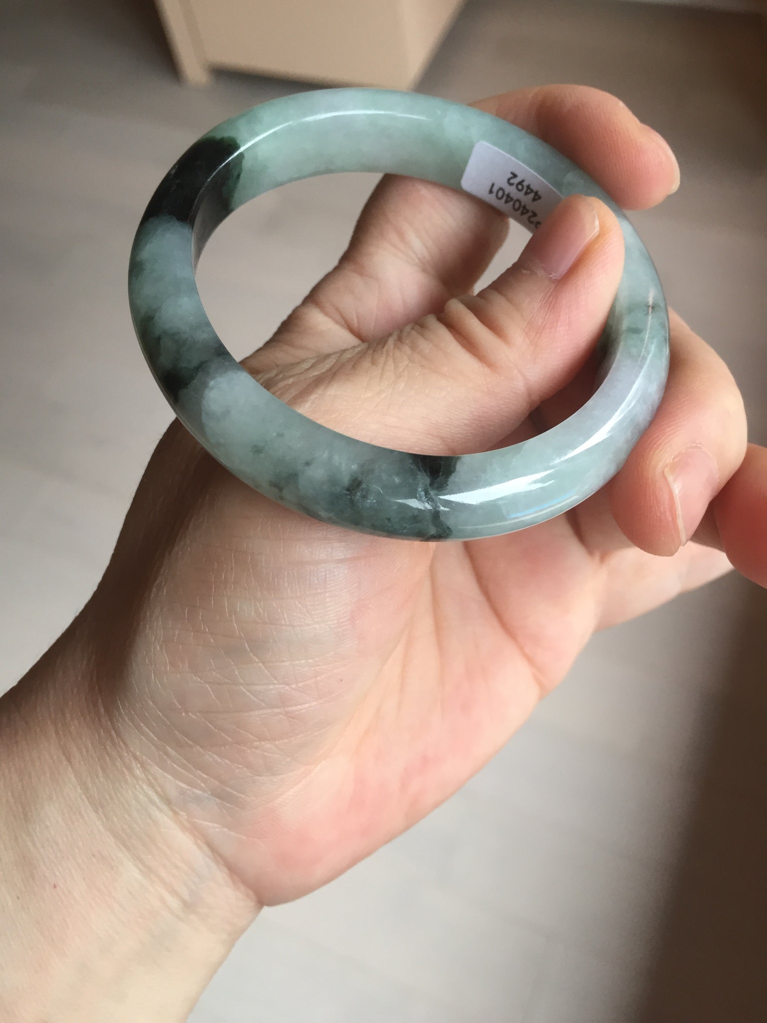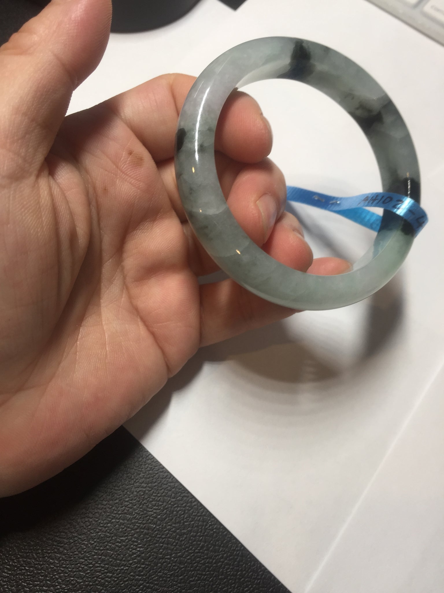 Some small rough surfaces with surface cracks and fissures. The bangle is solid (Guaranteed!). Some hairlines (at least 10 hairlines). Some hairlines may rest on rough surfaces, but they are not cracks.  Some cotton lines and cotton areas.