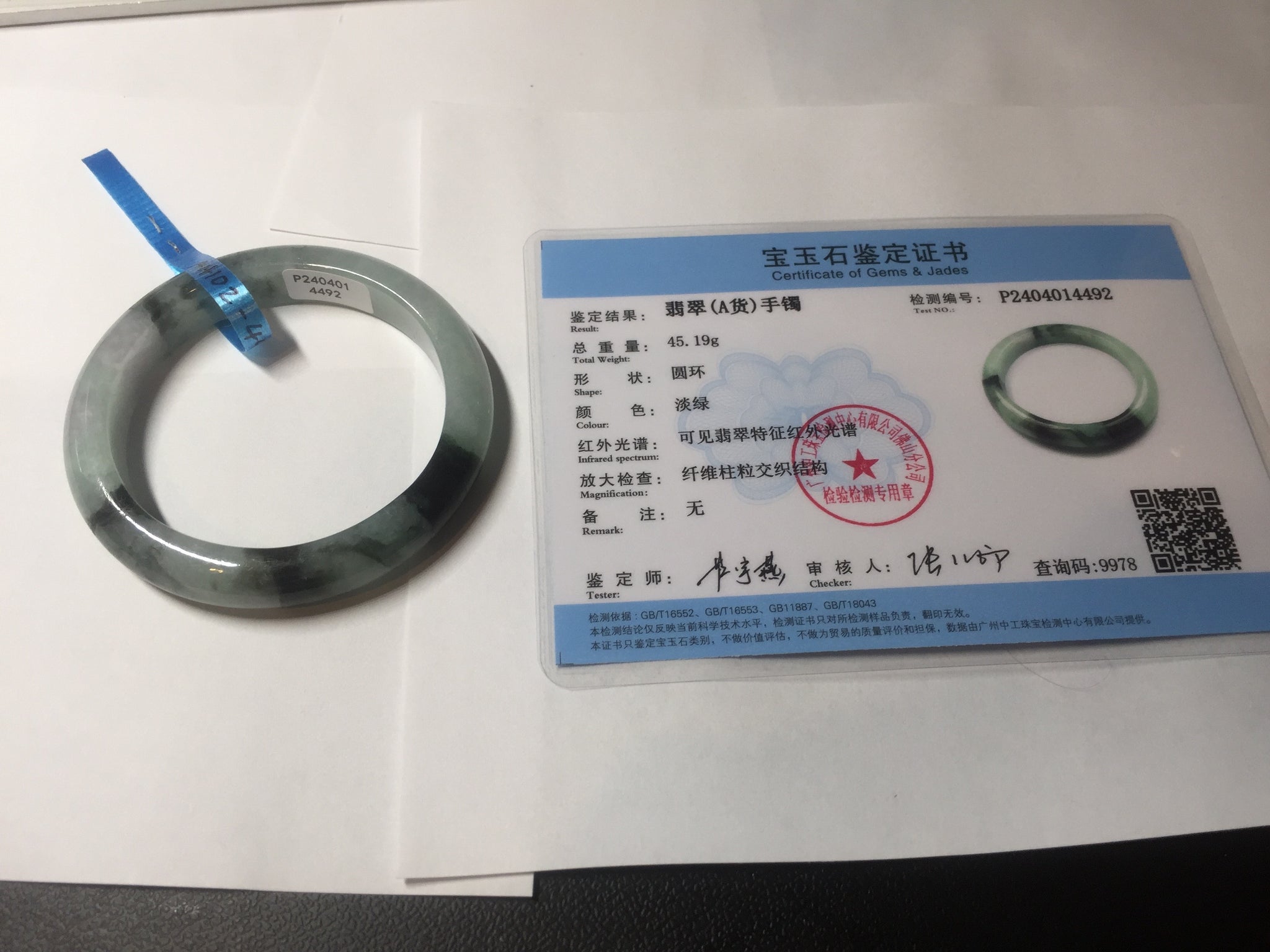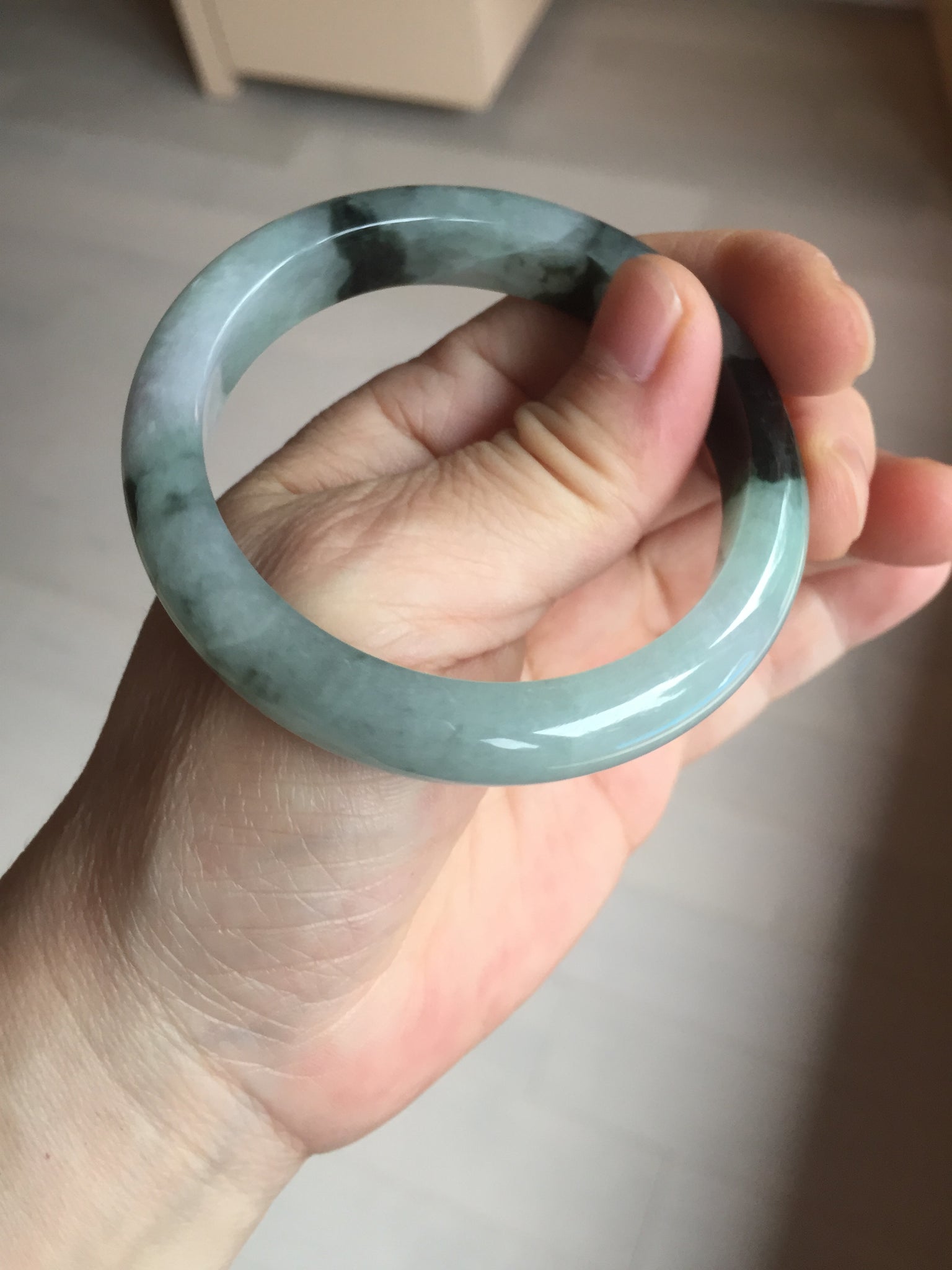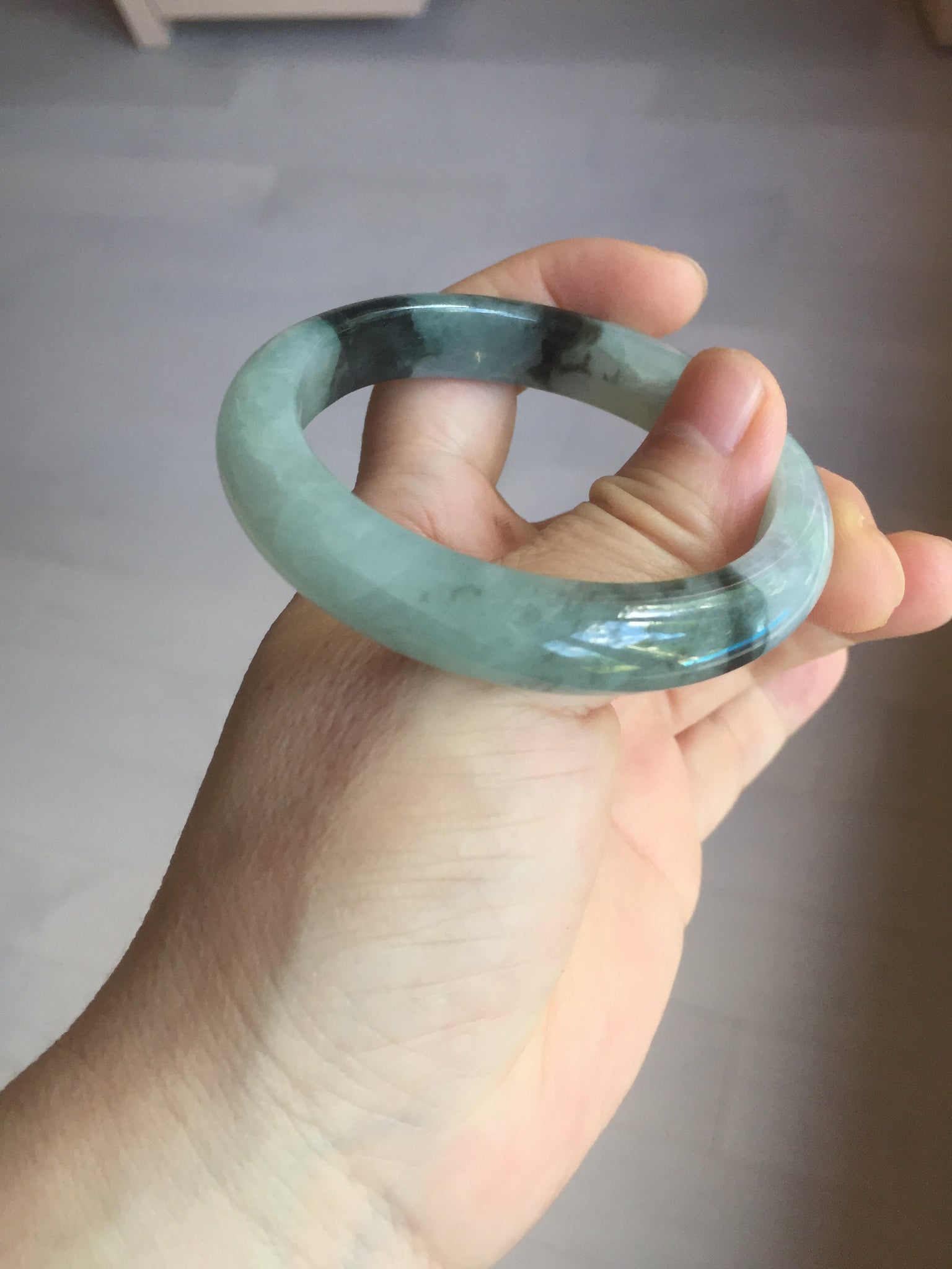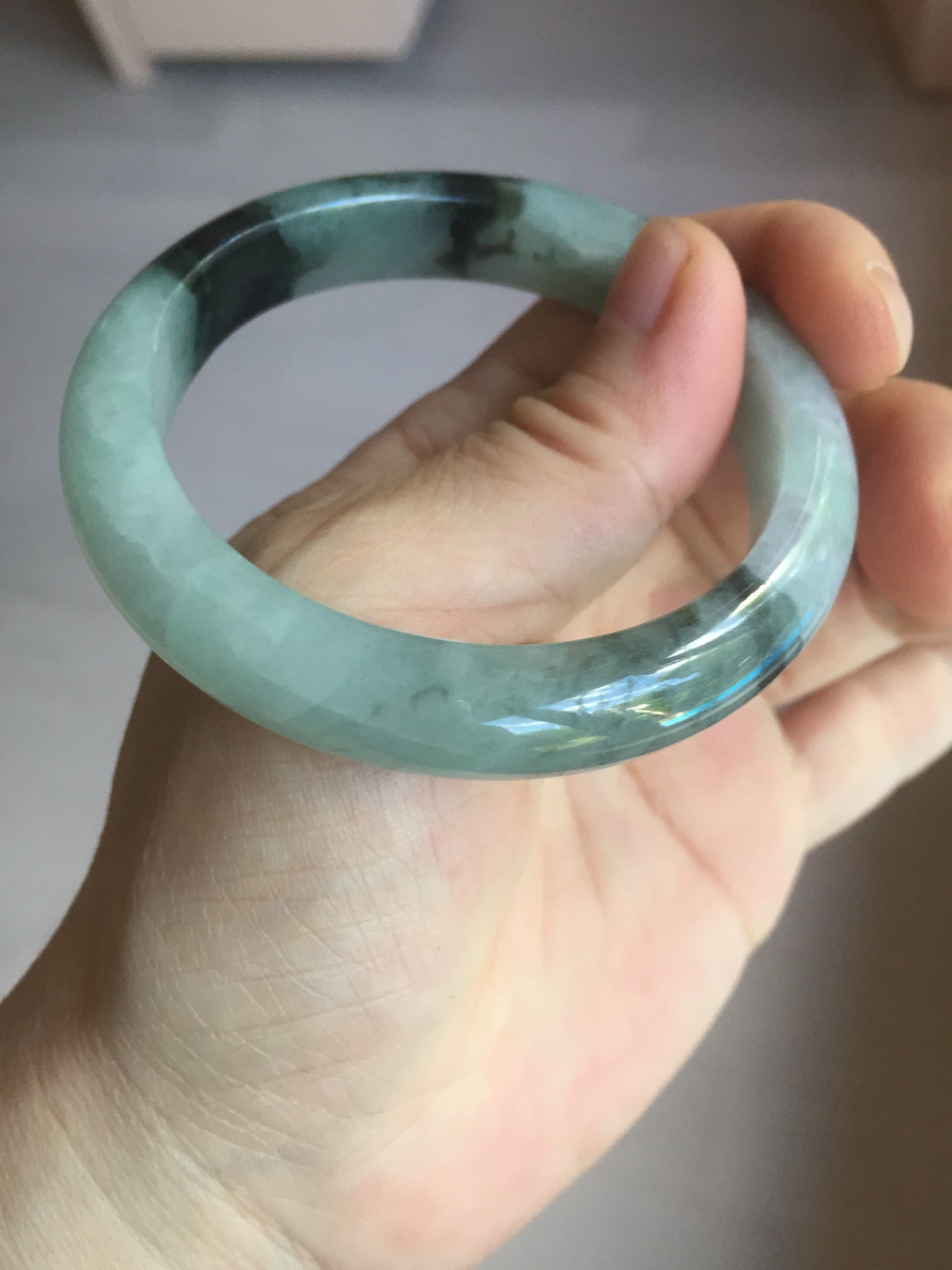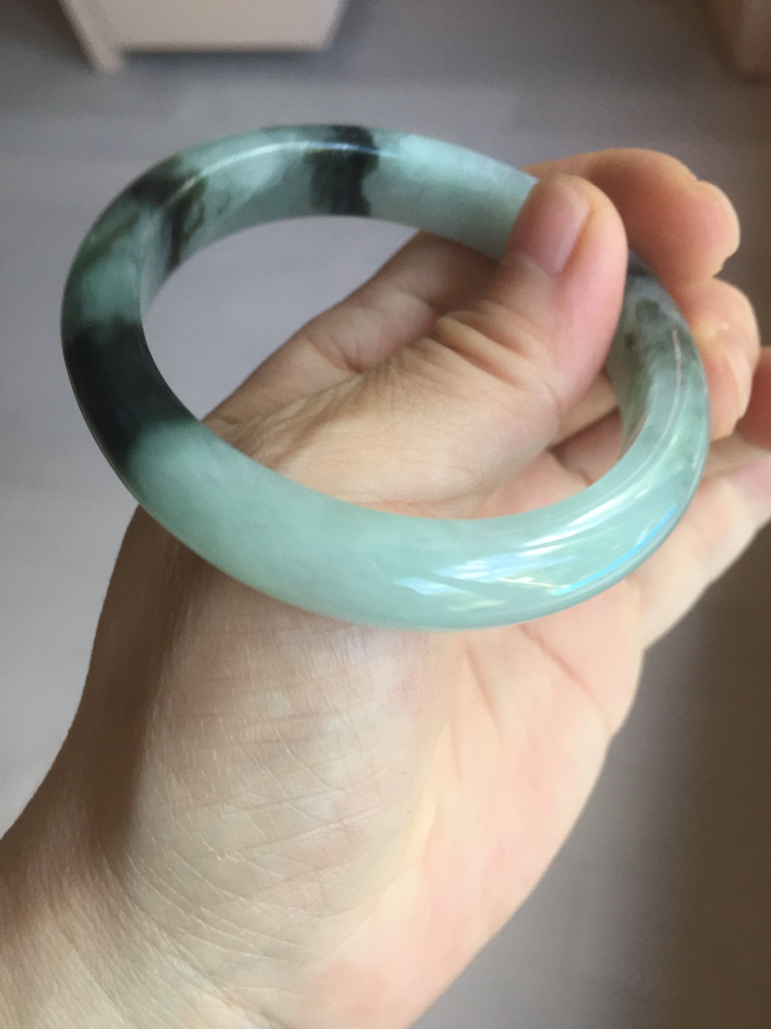 Some small rough surfaces with surface cracks and fissures. The bangle is solid (Guaranteed!). Some hairlines (at least 10 hairlines). Some hairlines may rest on rough surfaces, but they are not cracks.  Some cotton lines and cotton areas.