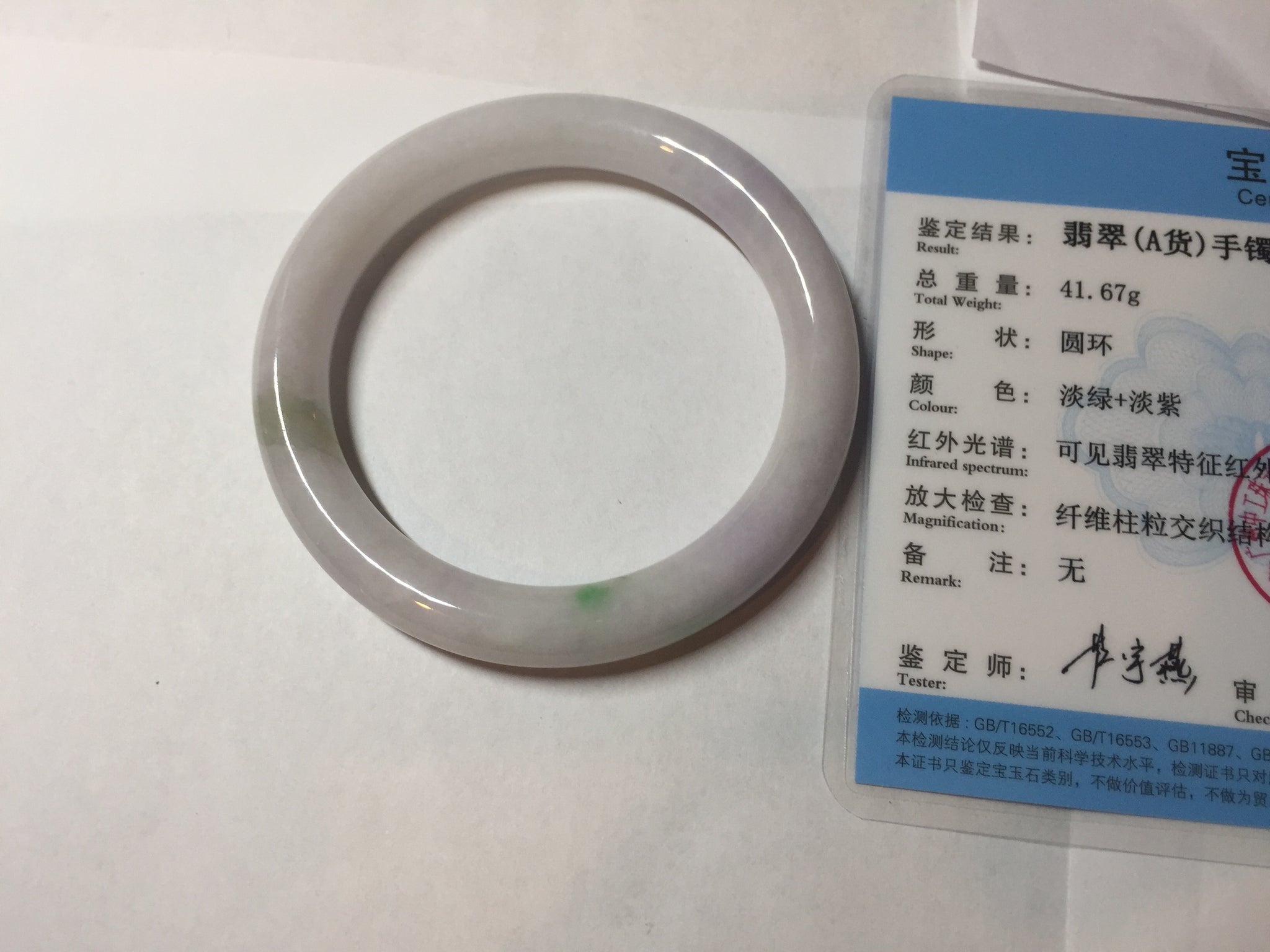 54mm Certified type A 100% Natural sunny green purple round cut Jadeite bangle PC101-4952