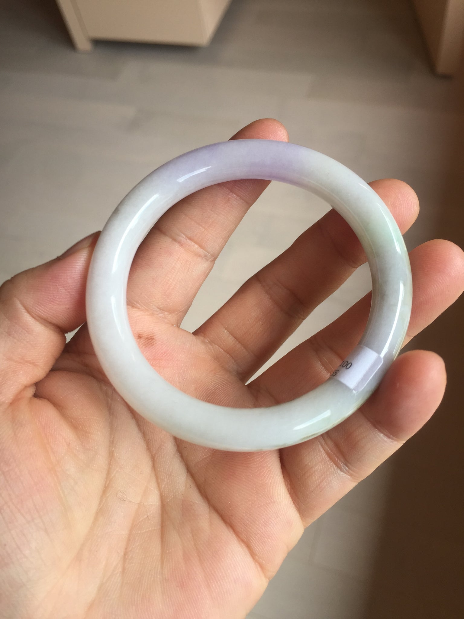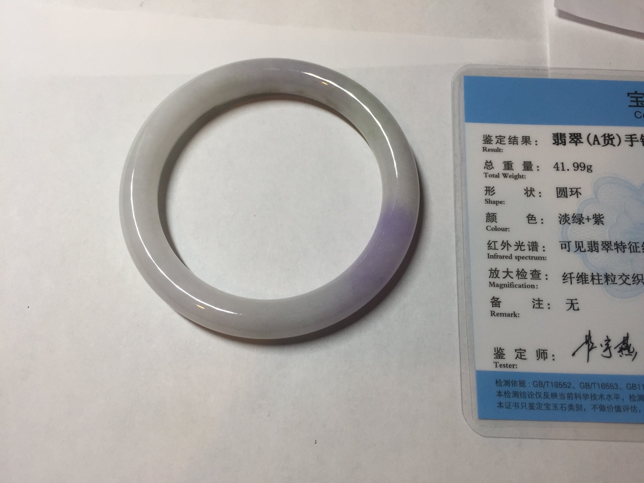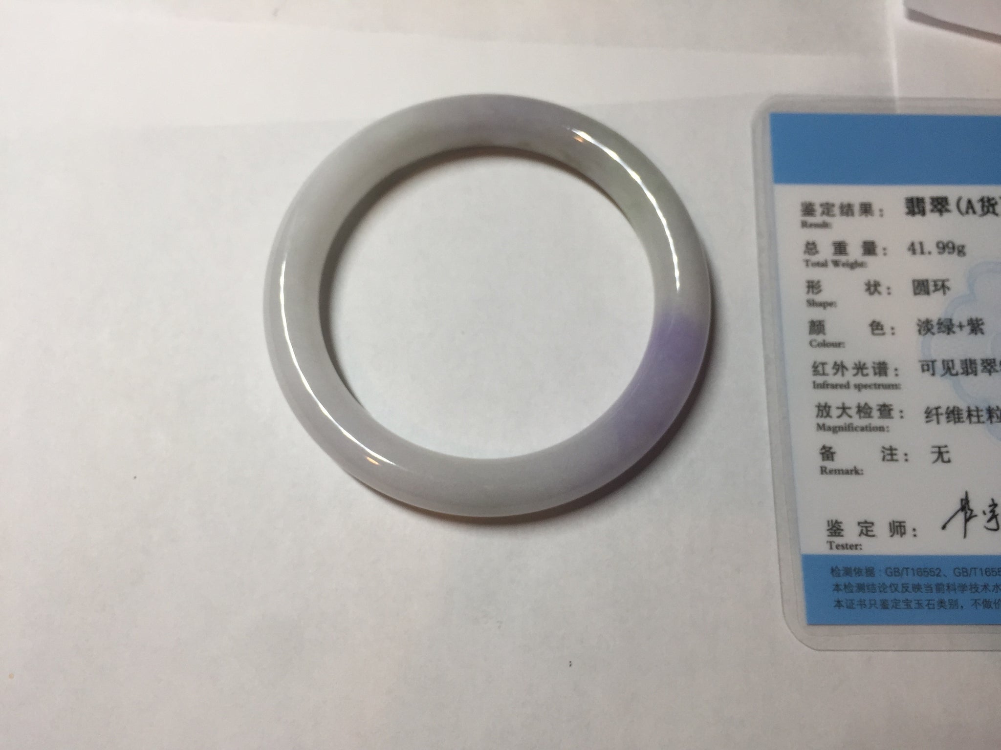 54mm Certified type A 100% Natural light green purple round cut Jadeite bangle PC102-4955