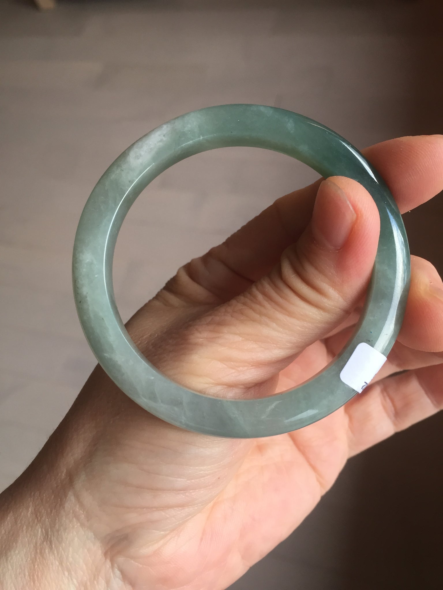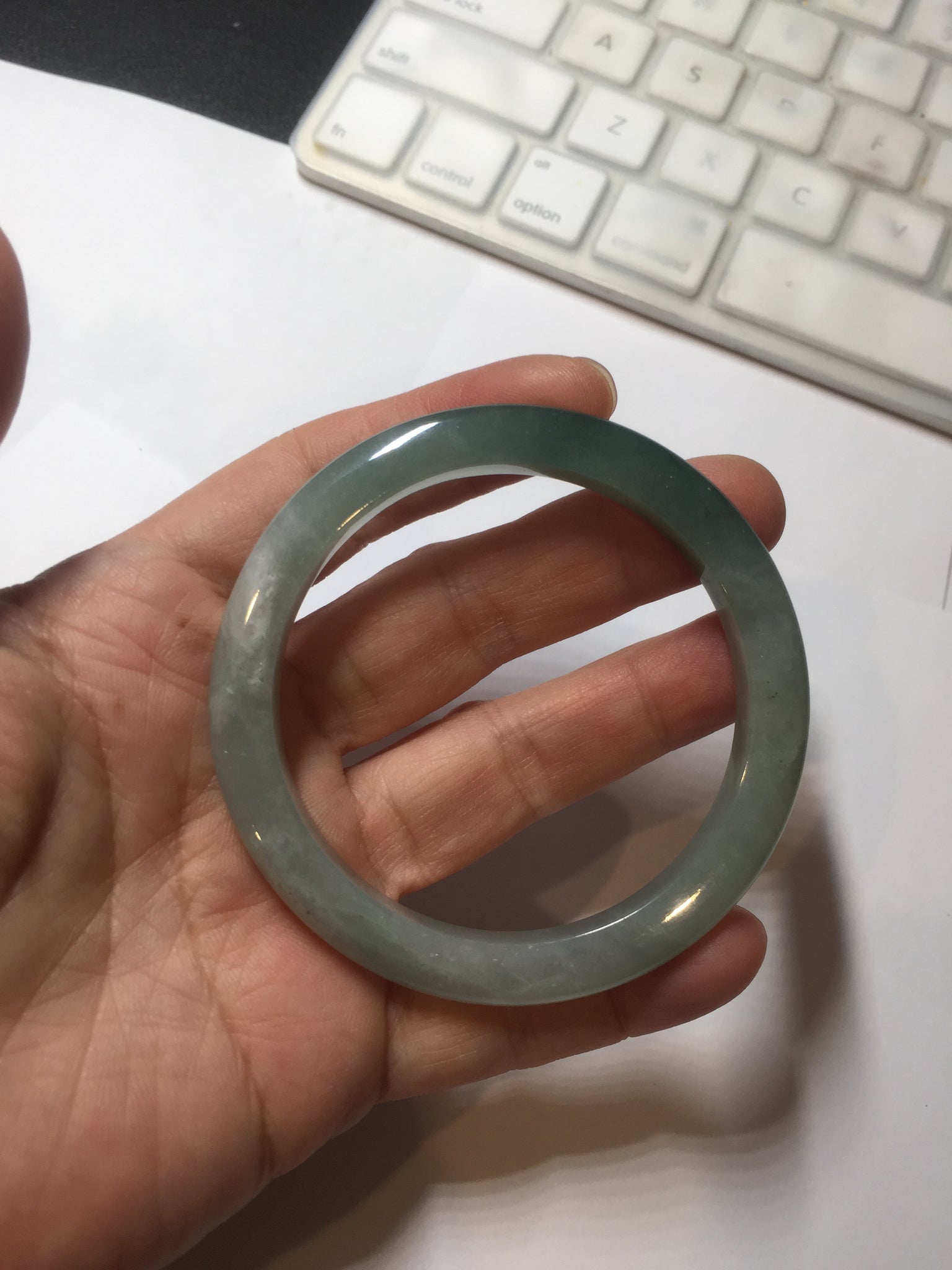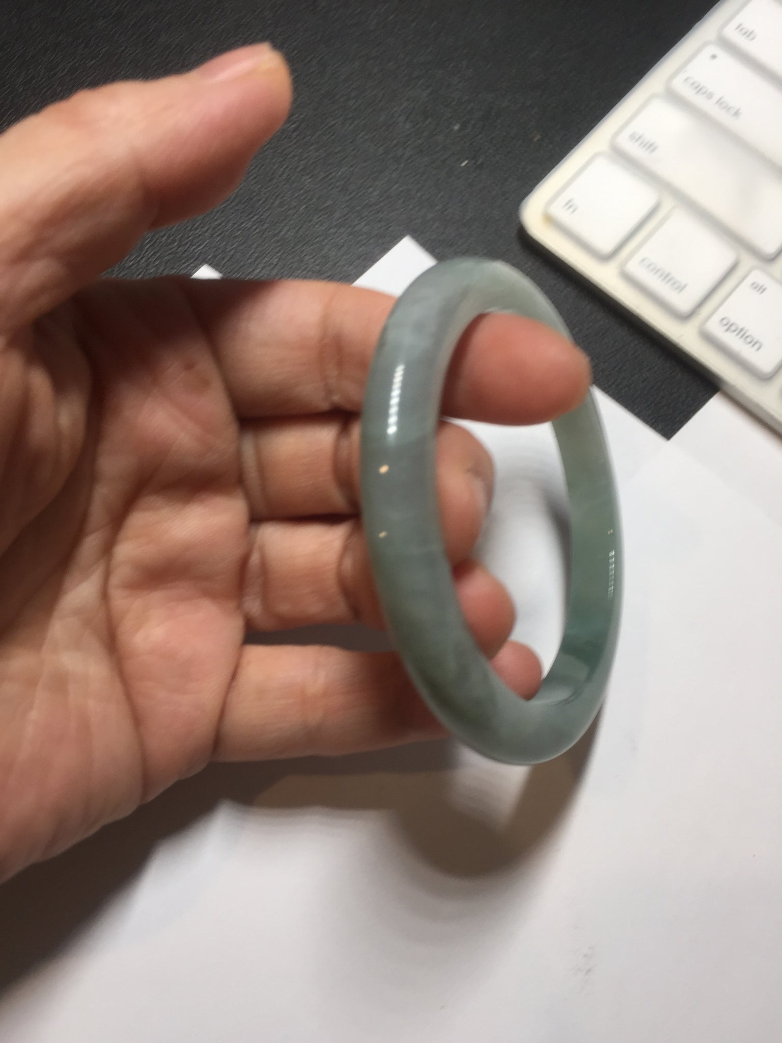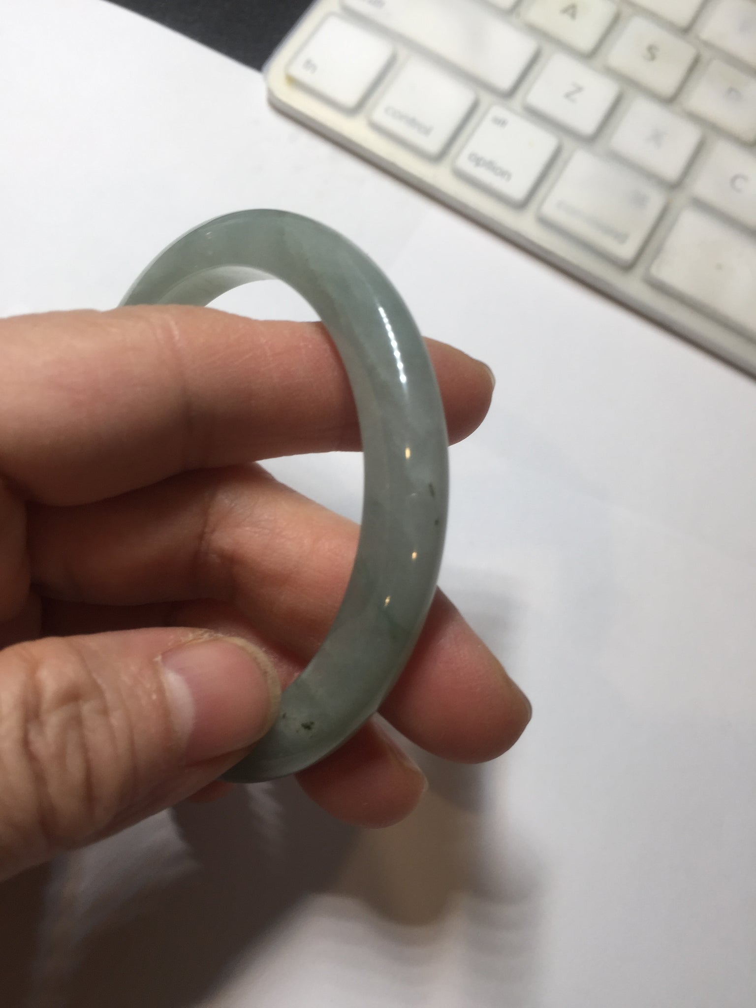 Some cracks(Photos may not show all). One of them is ring shape. The bangle is solid(Guaranteed). Makes high pitched sound when clicked. Some rough surfaces and black rough spots. Some cotton lines or cotton spots. No transparent. Has some gray/black colors.