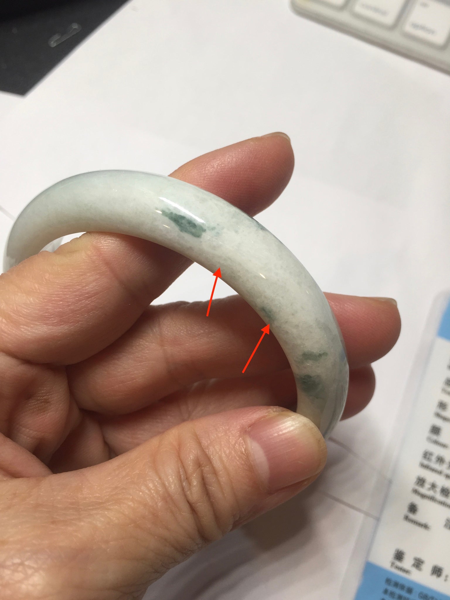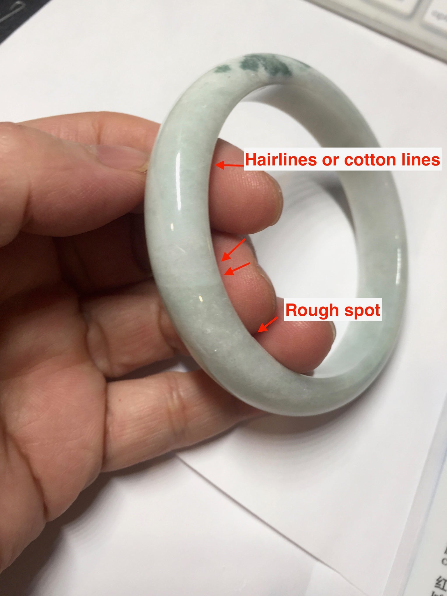 Two cracks. Some hairlines and cotton lines. Some cotton areas. Some tiny rough surfaces. Not transparent. Not watery.