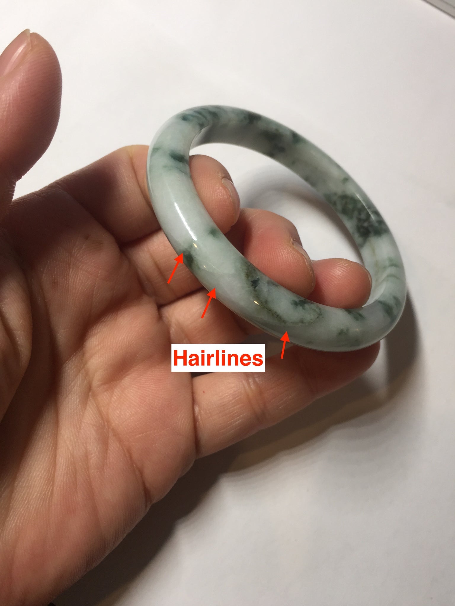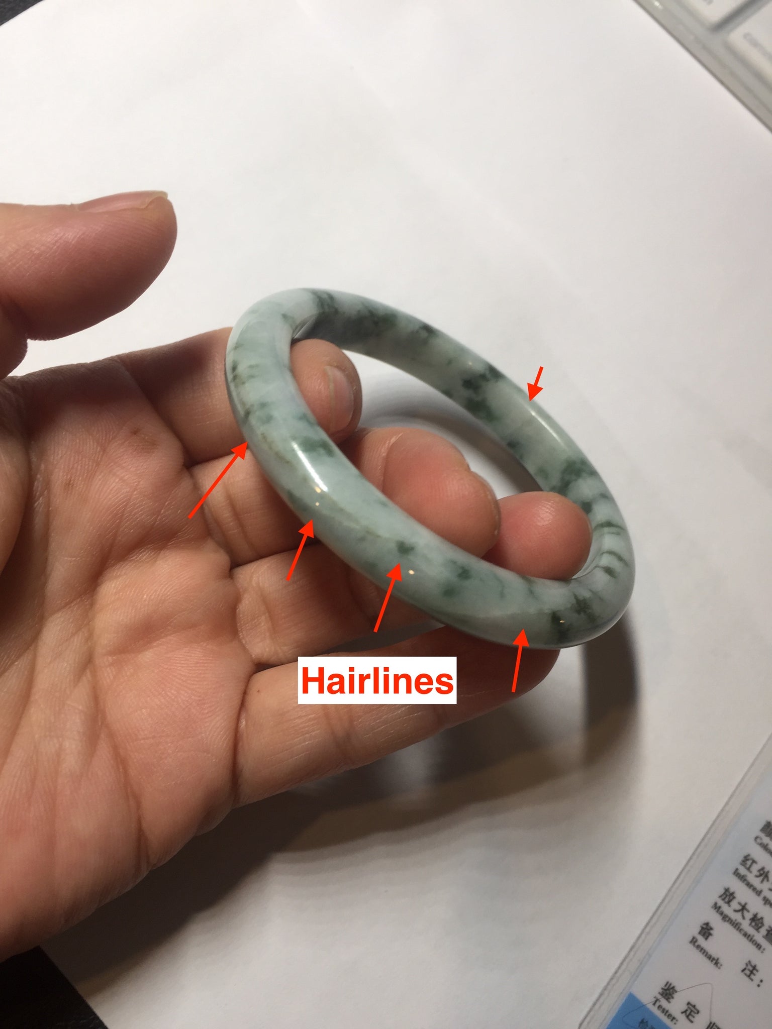 Jade root, or hairline root, and are not considered cracks. A crack is considered to be a crack you can feel that runs up and down the width of the bangle.