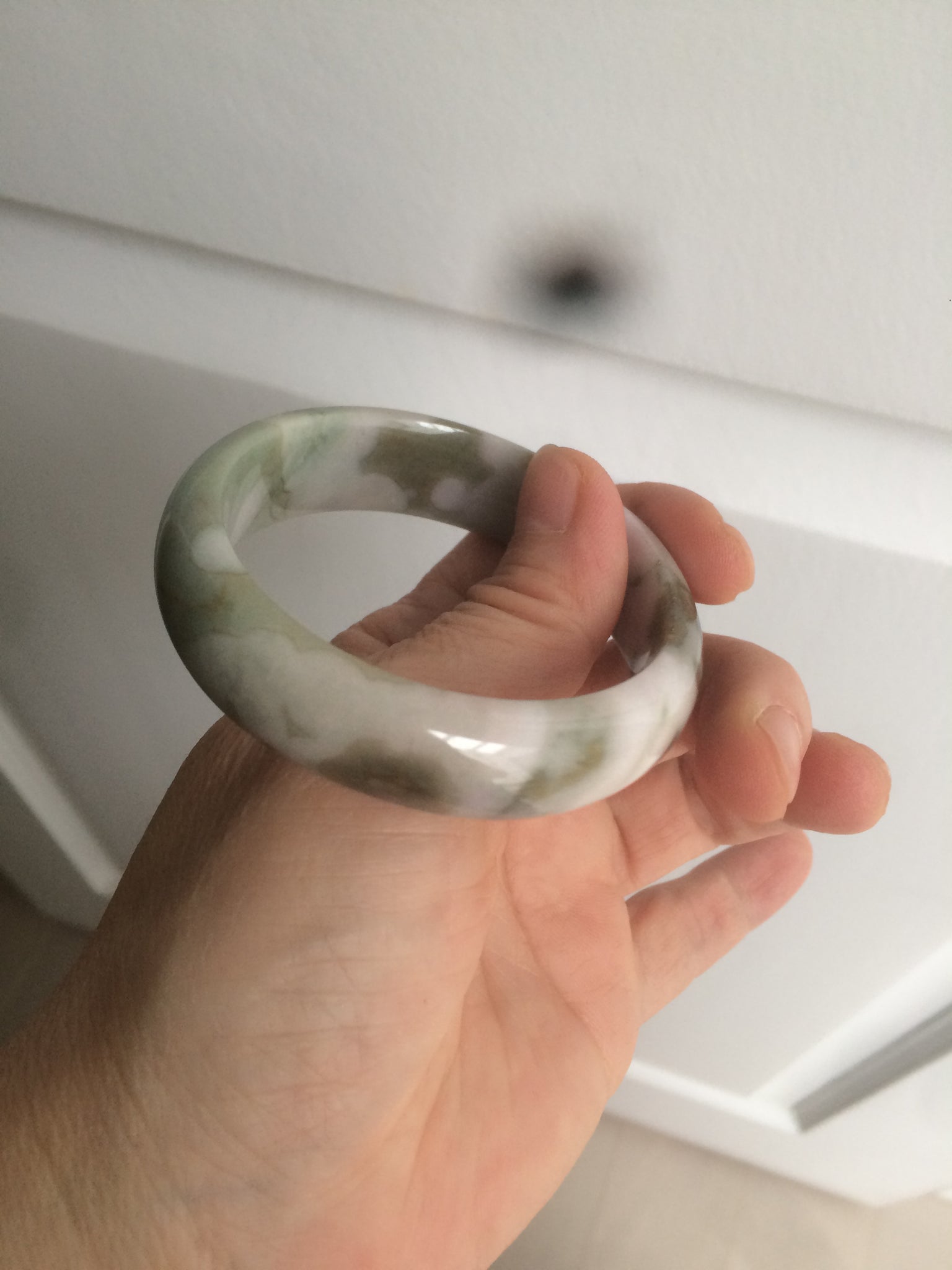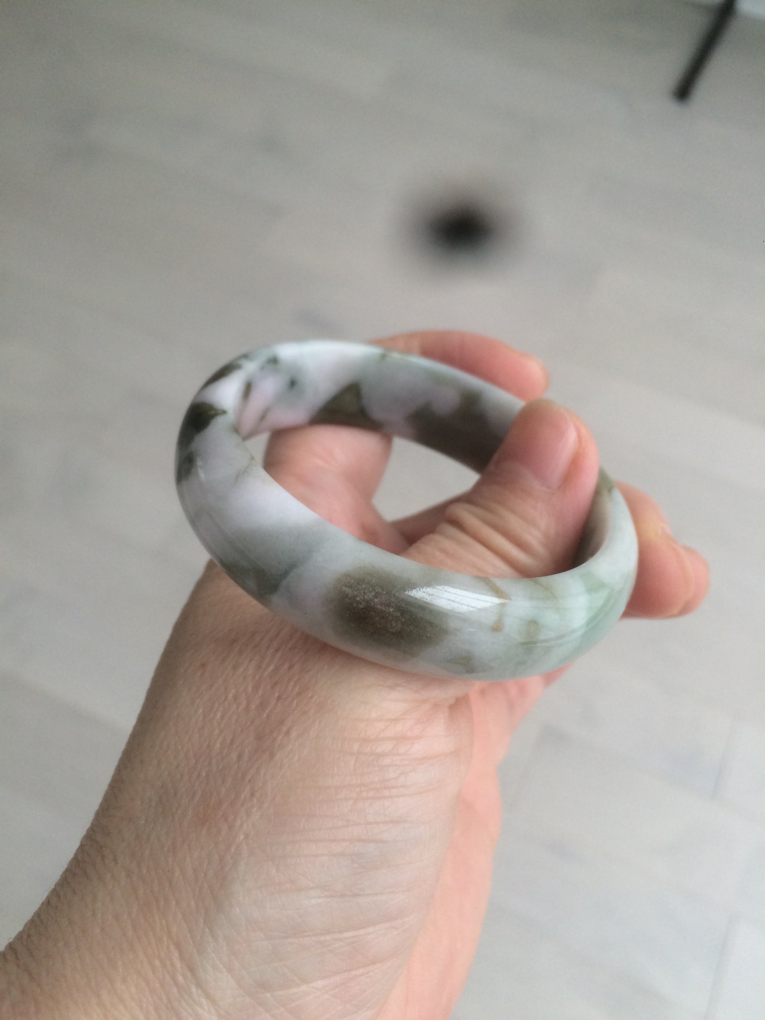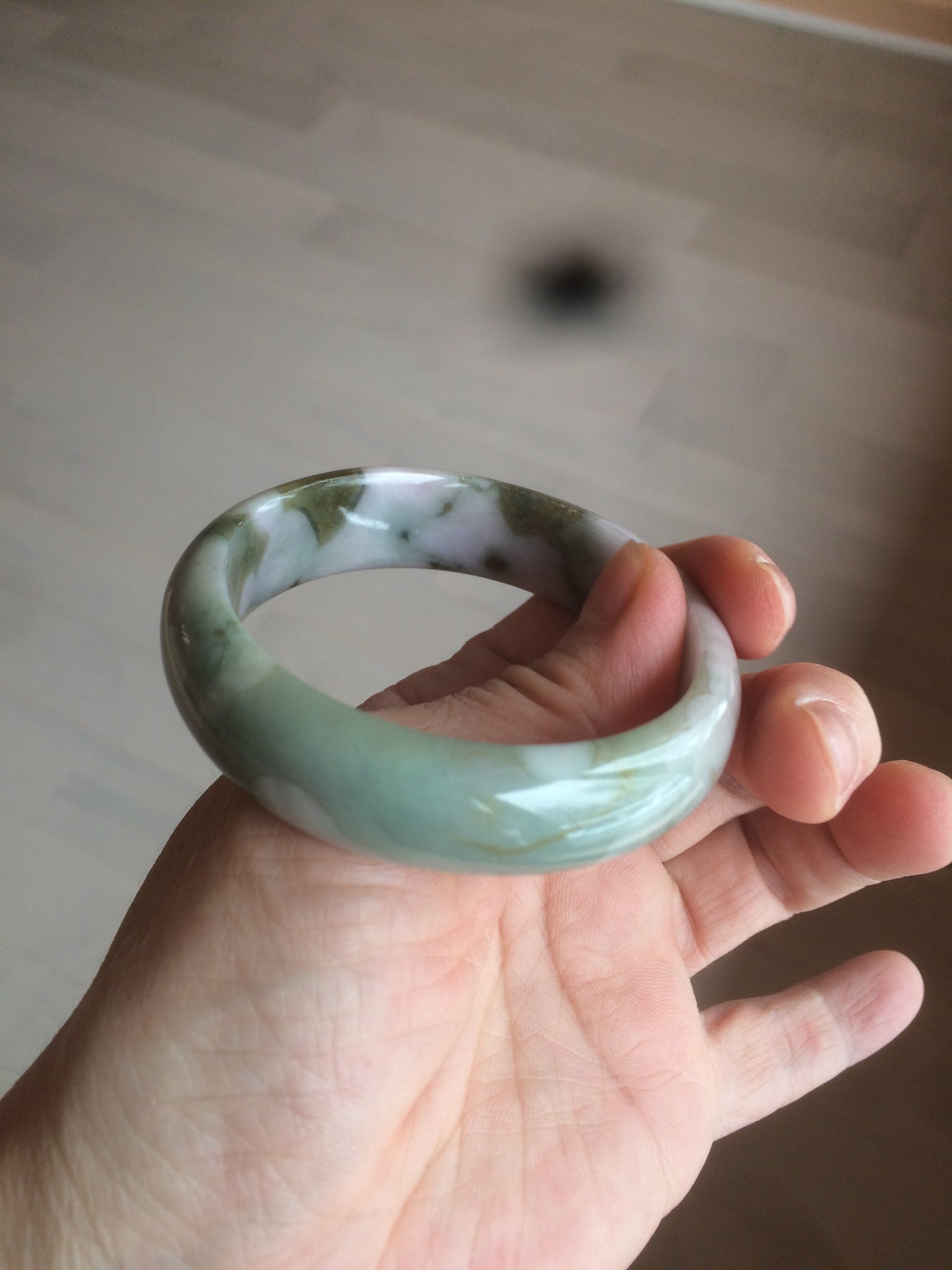 51.5mm certified Type A 100% Natural green/purple/brown Jadeite Jade bangle N99-3774