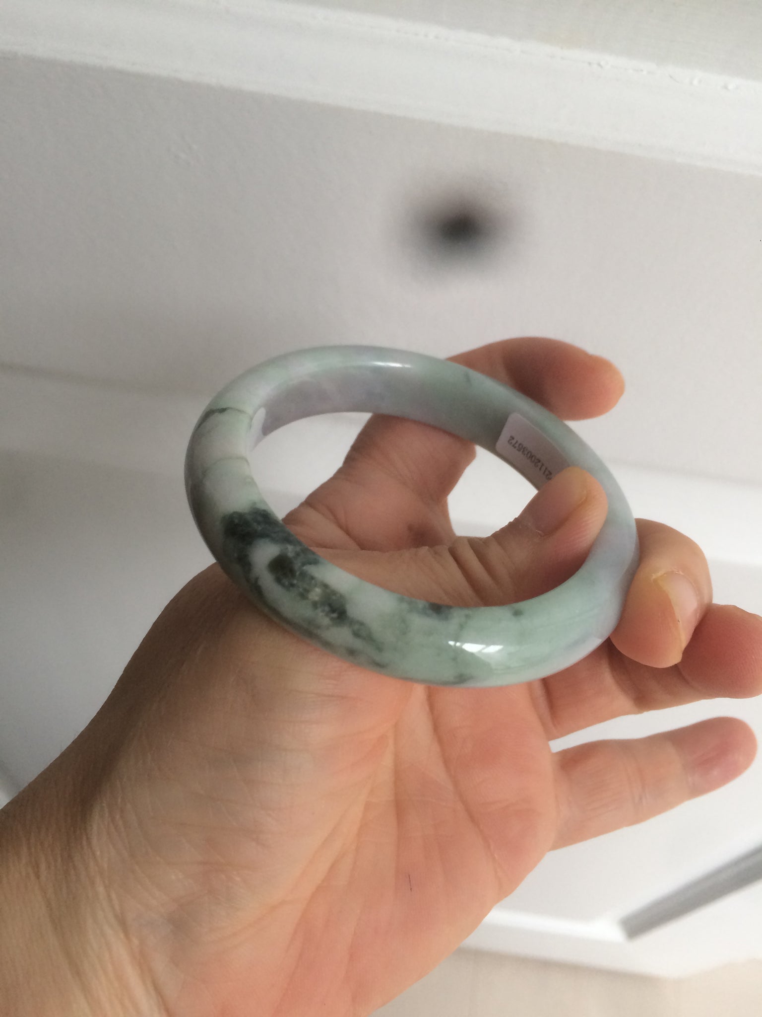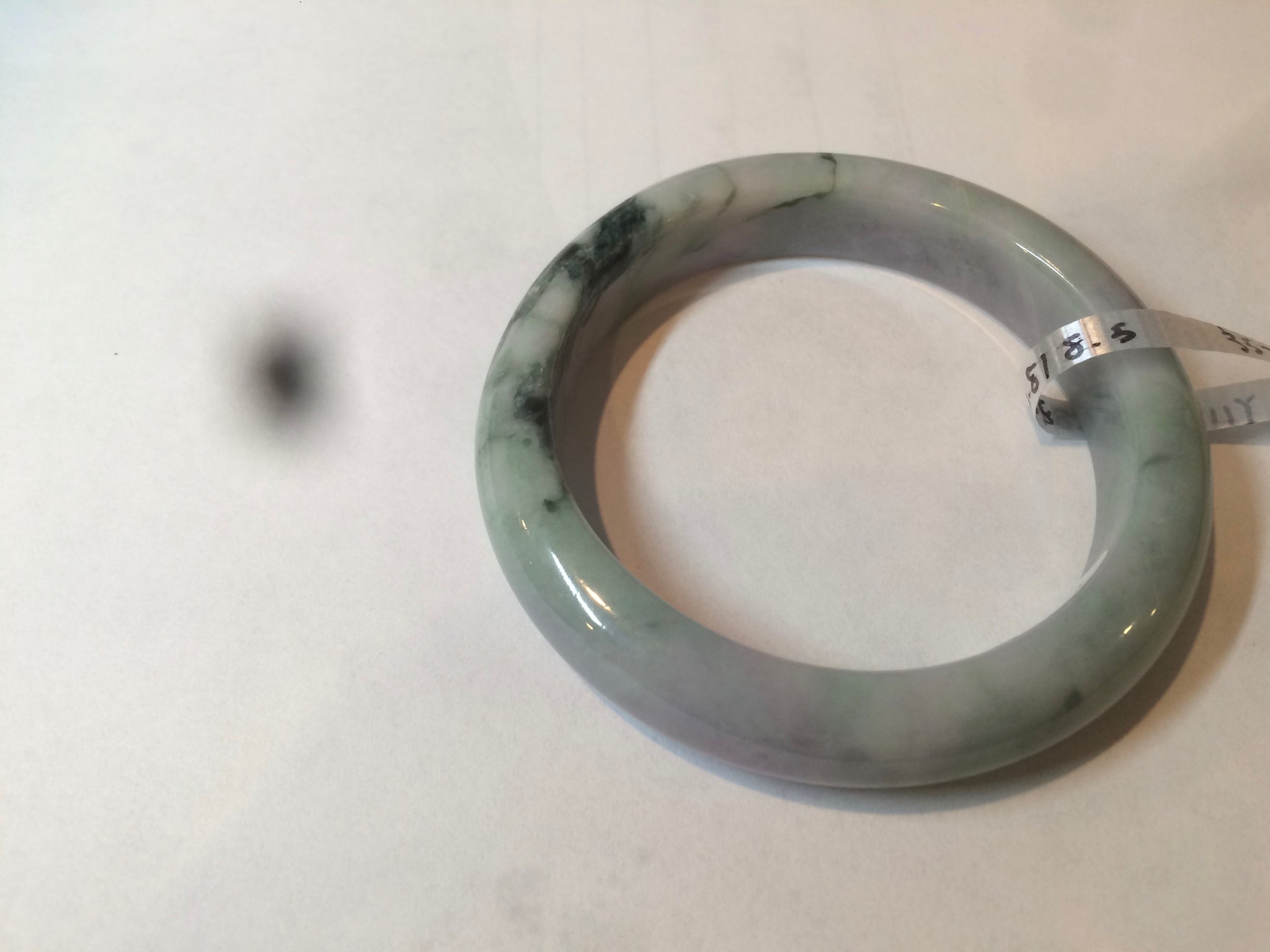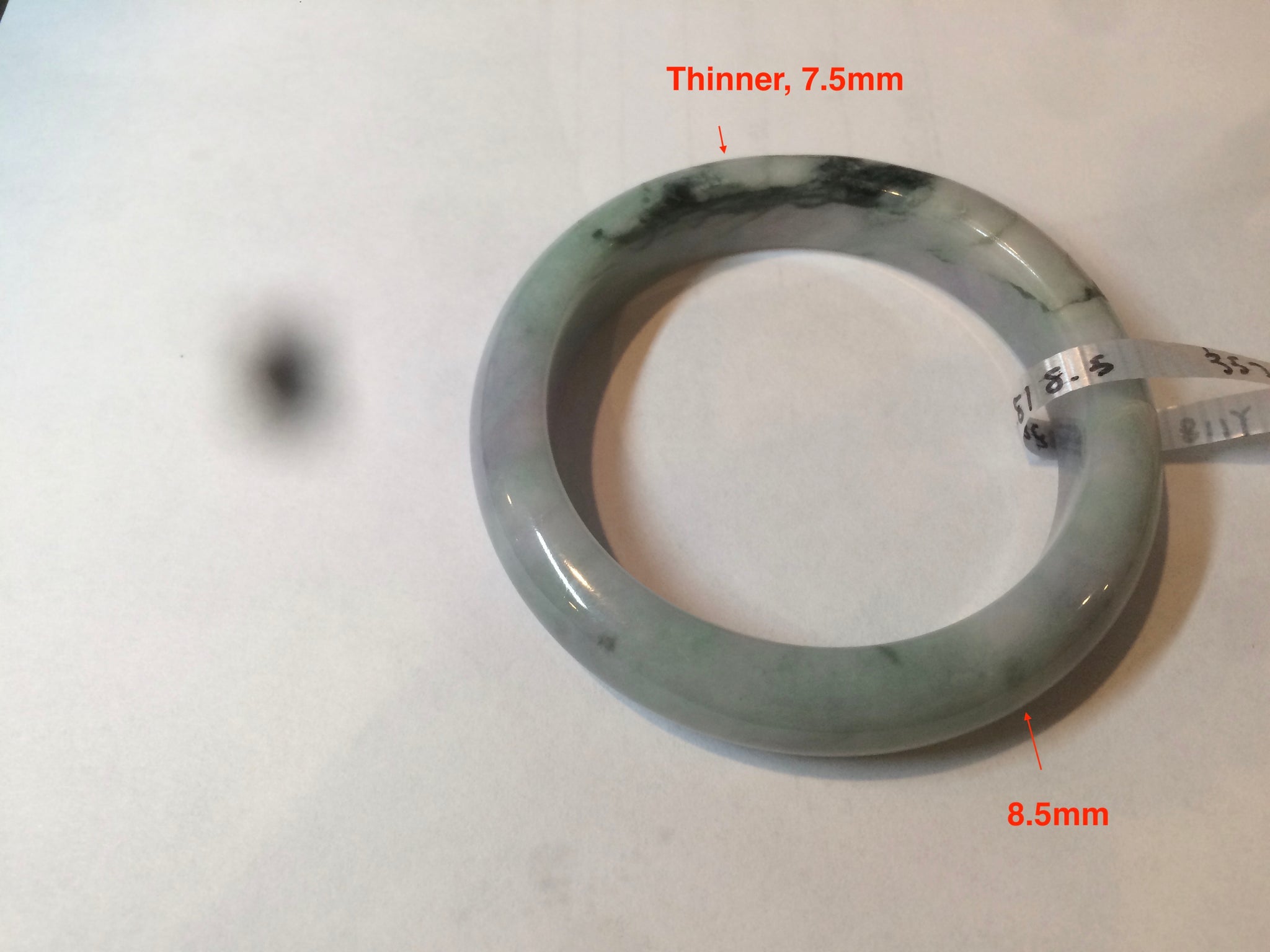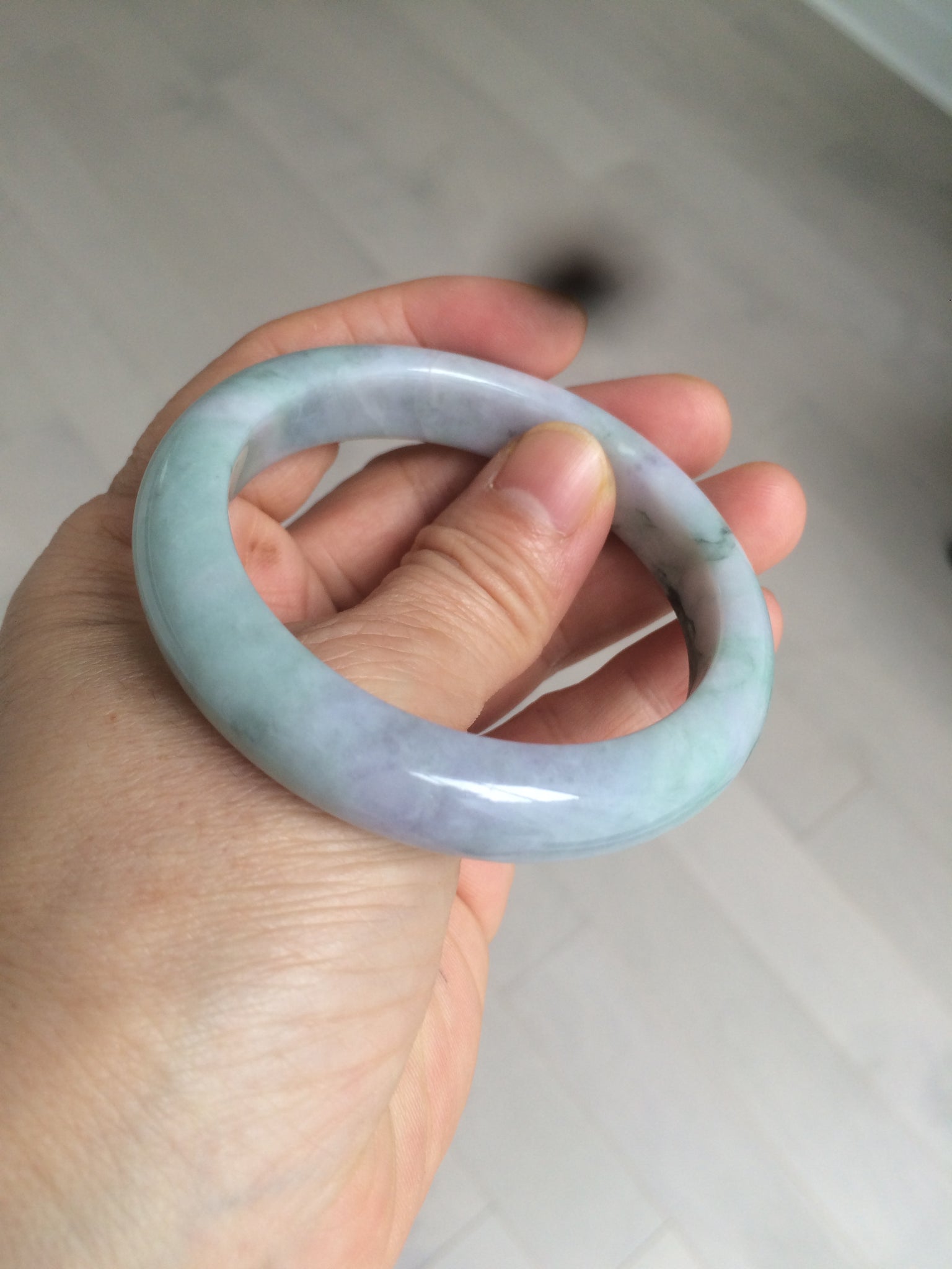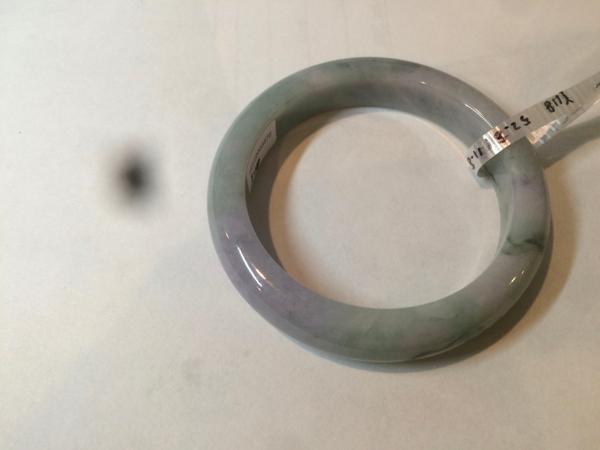 Some cracks. One deep, but not an around the bangle crack. Some rough surfaces with color root cracks. That area is a little bit thinner than the other parts (7.5mm vs 8.5mm). The purple is lighter than in the photos.