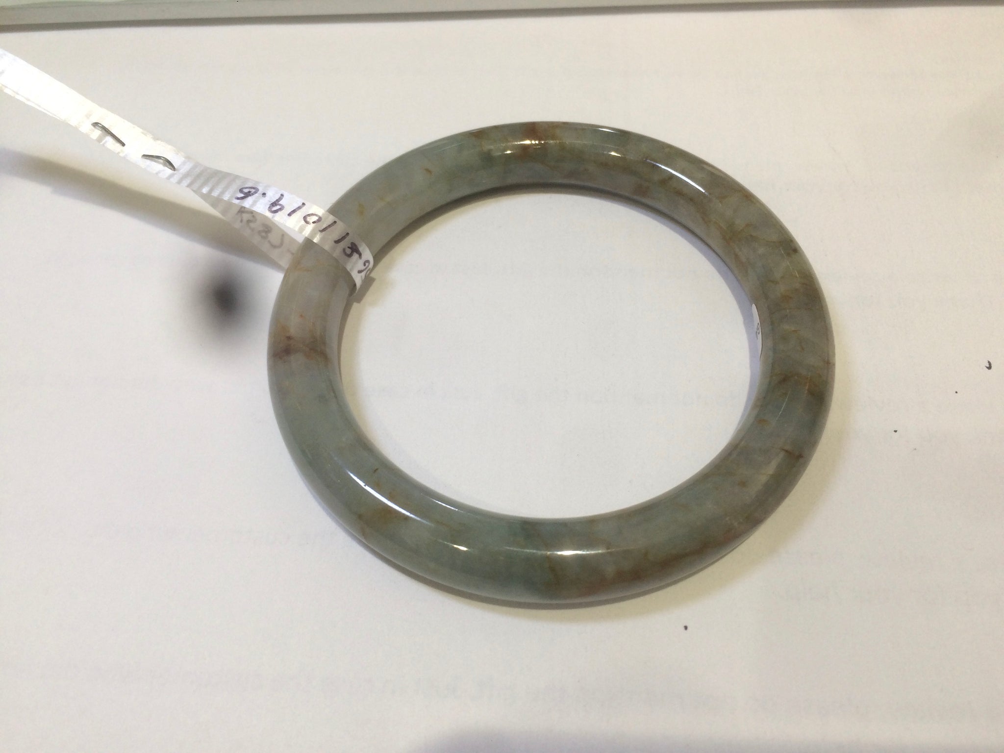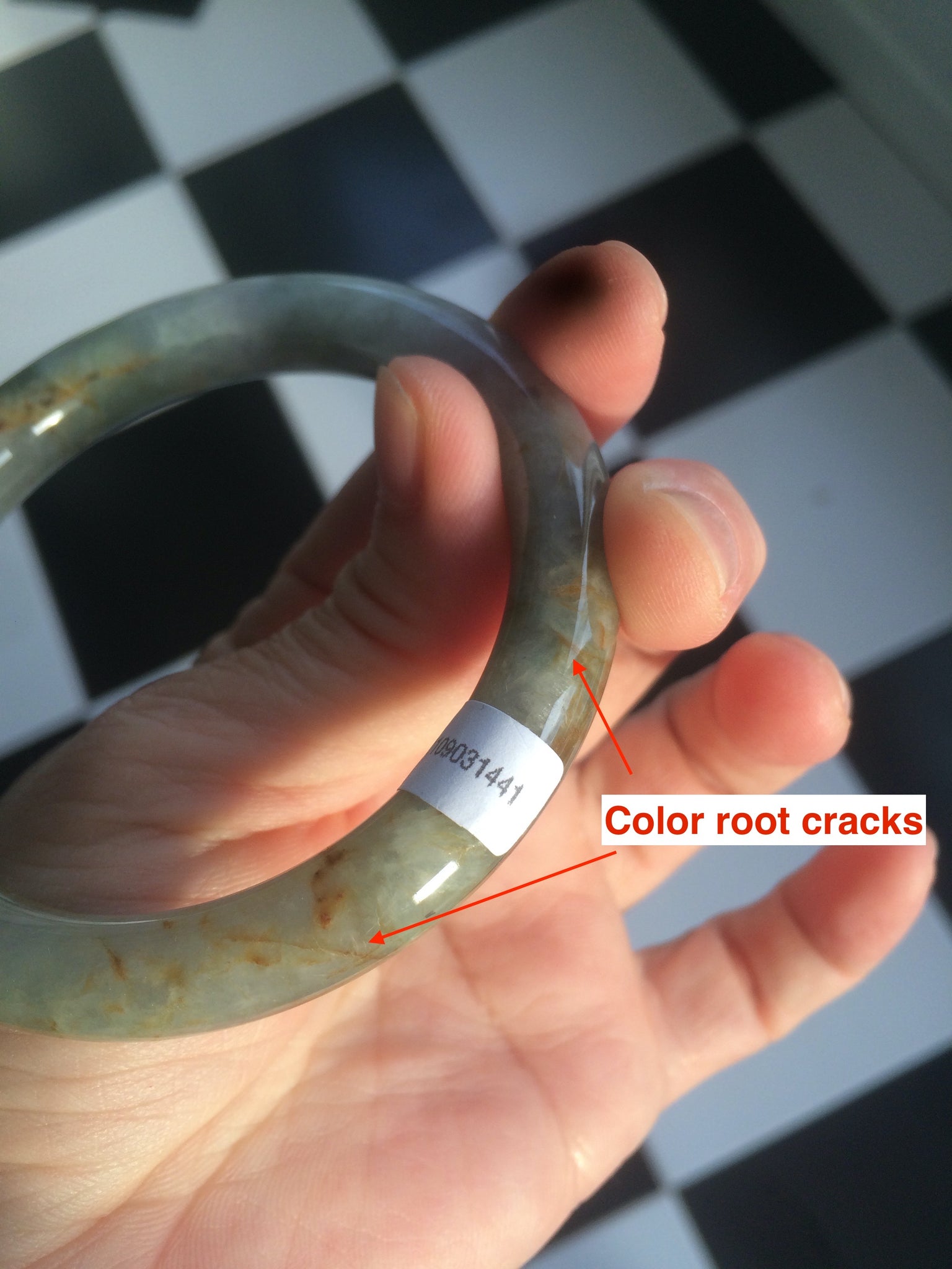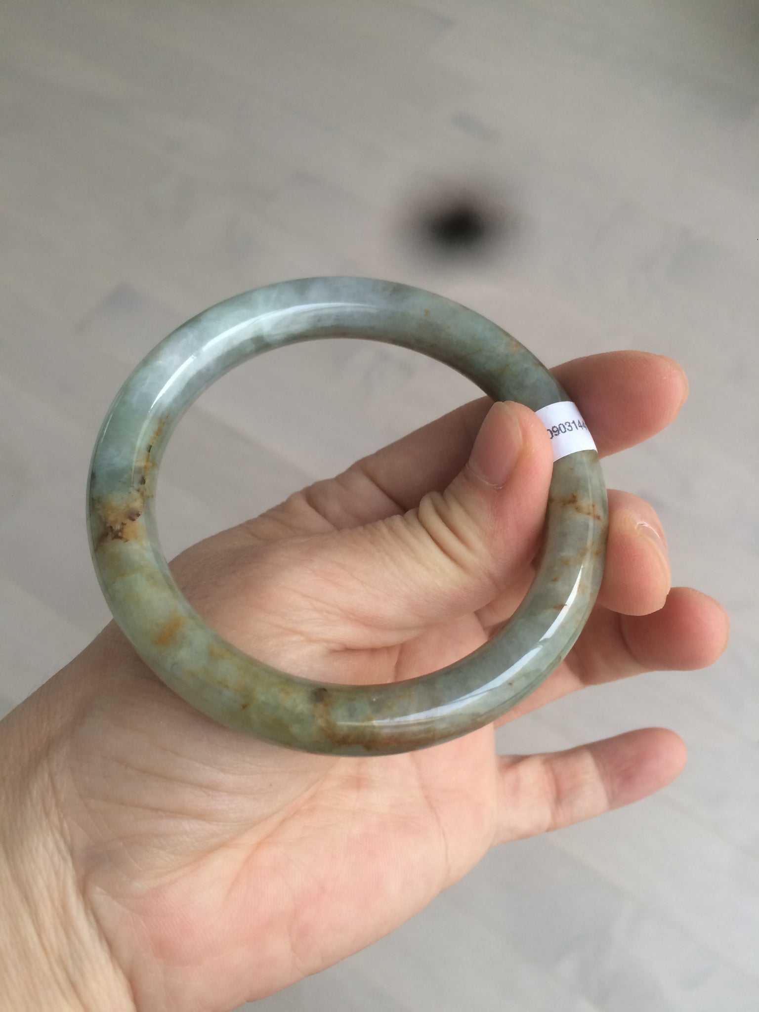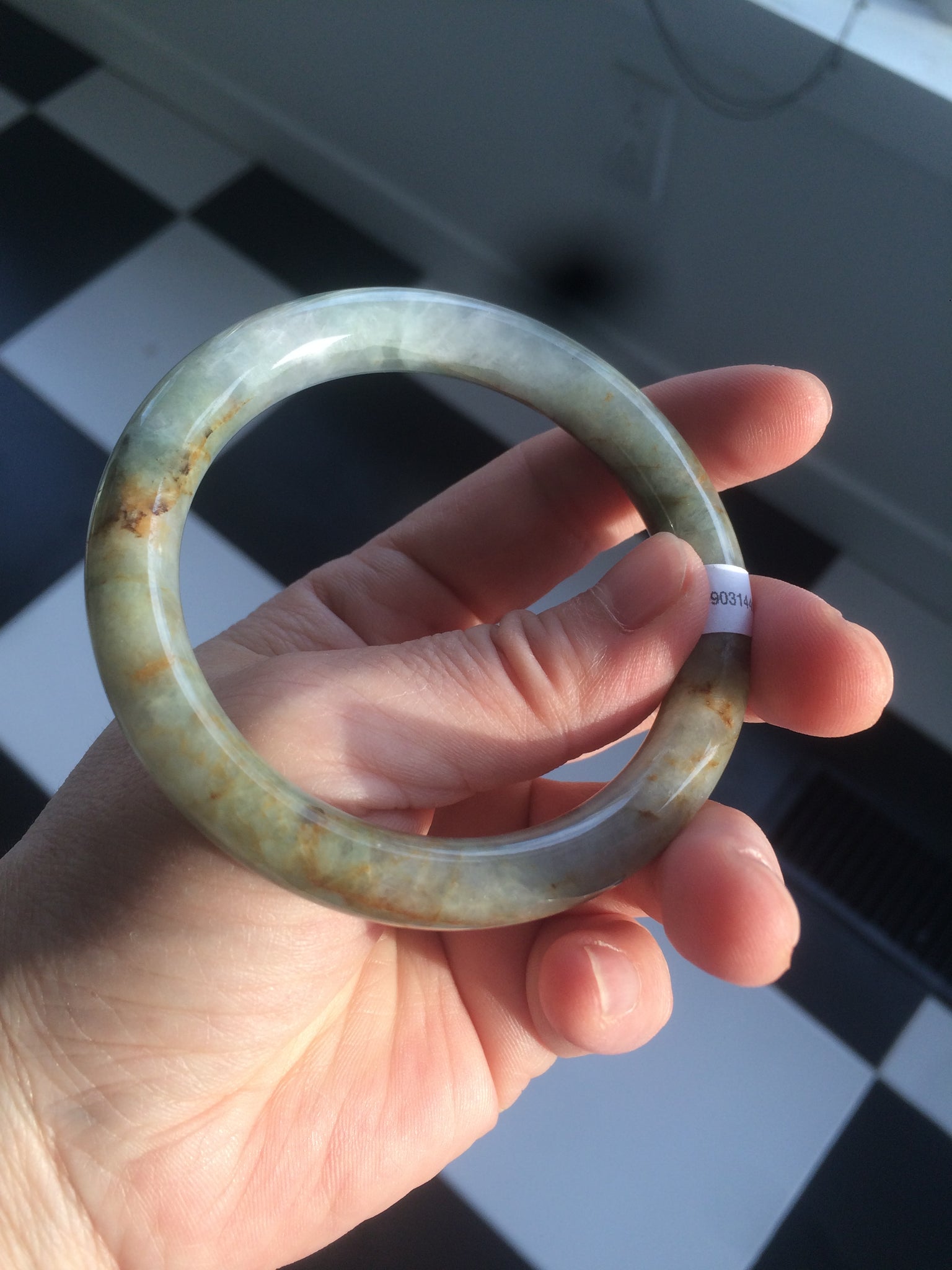 56.8mm certified Type A 100% Natural green/brown round cut Jadeite Jade bangle KS87-1441
