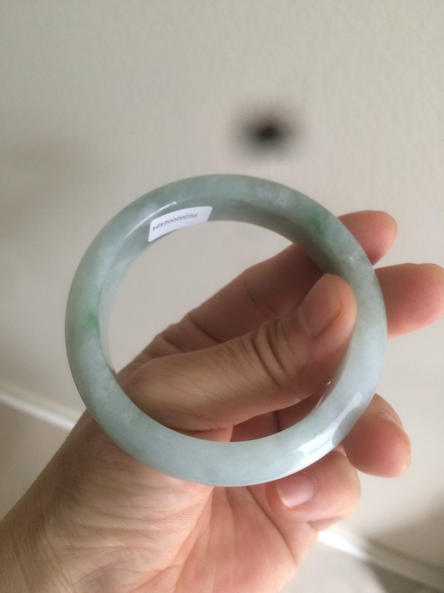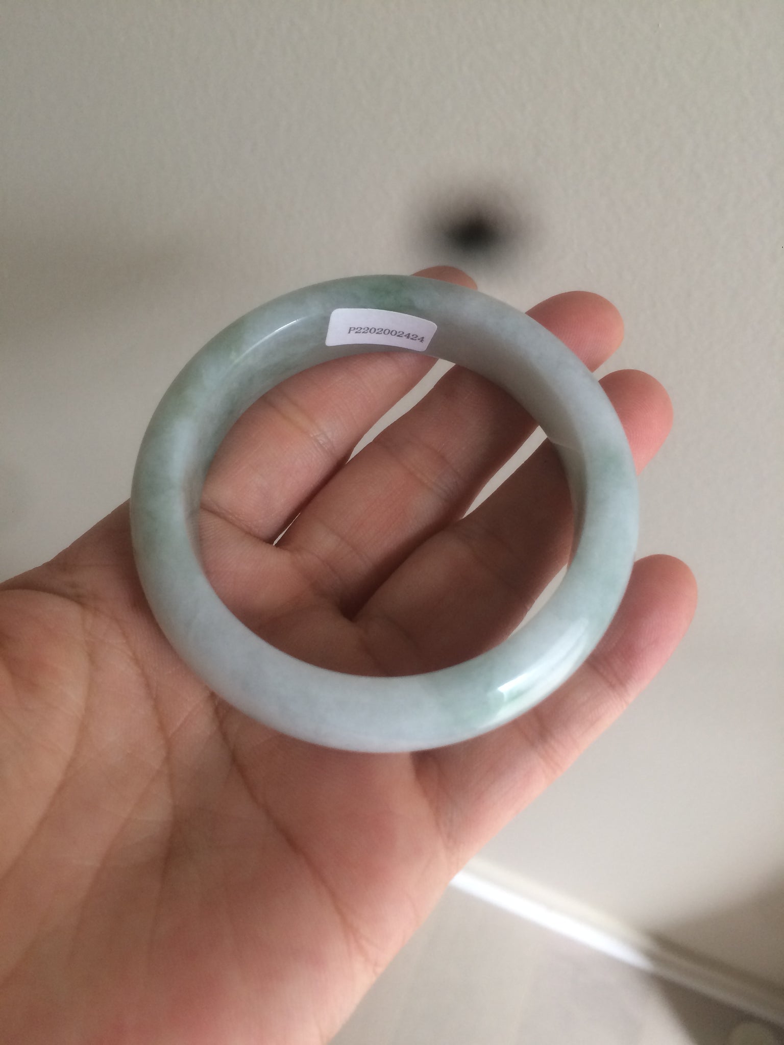 52.5mm Certified type A 100% Natural green white Jadeite Jade bangle A77-2424