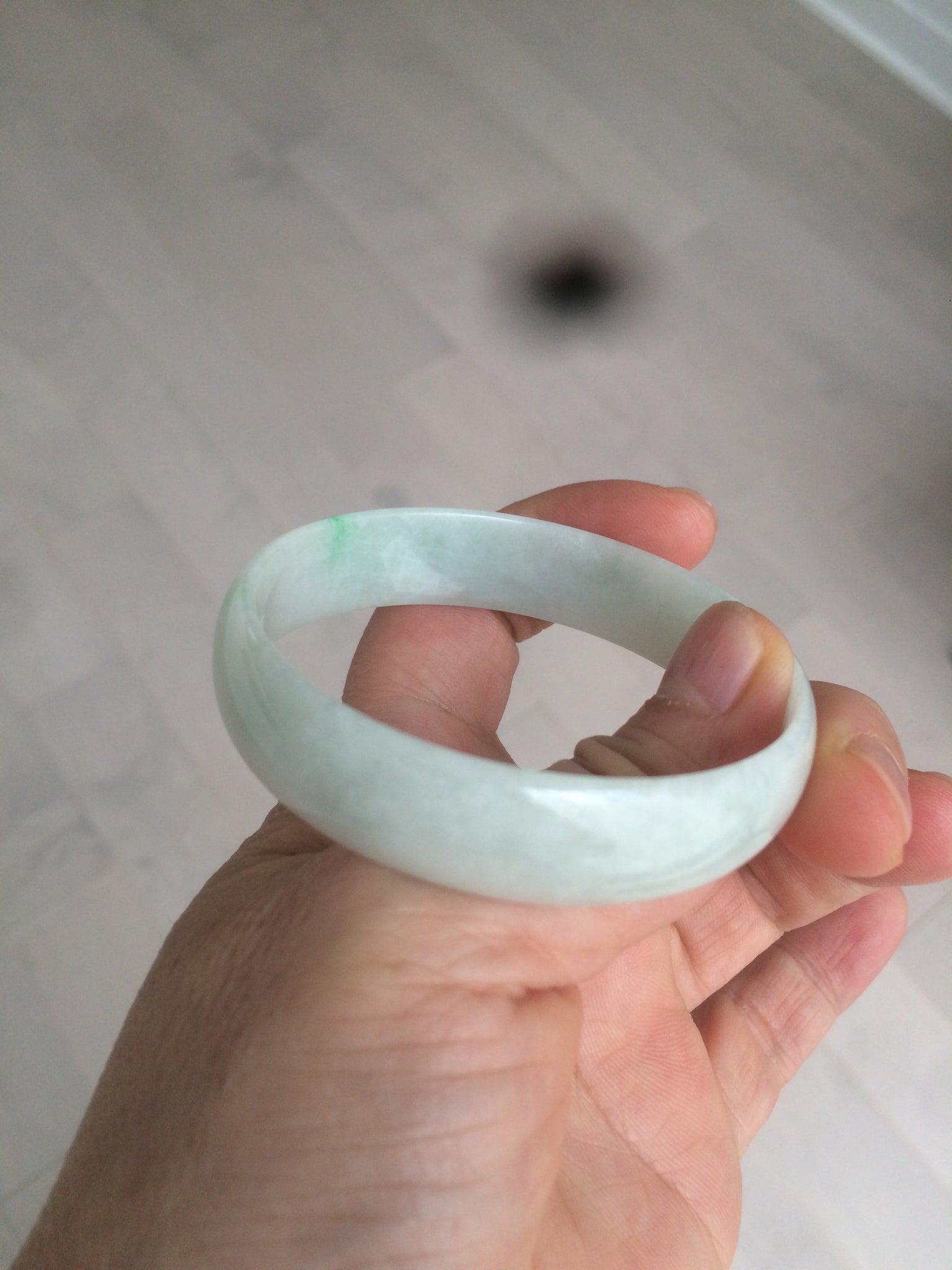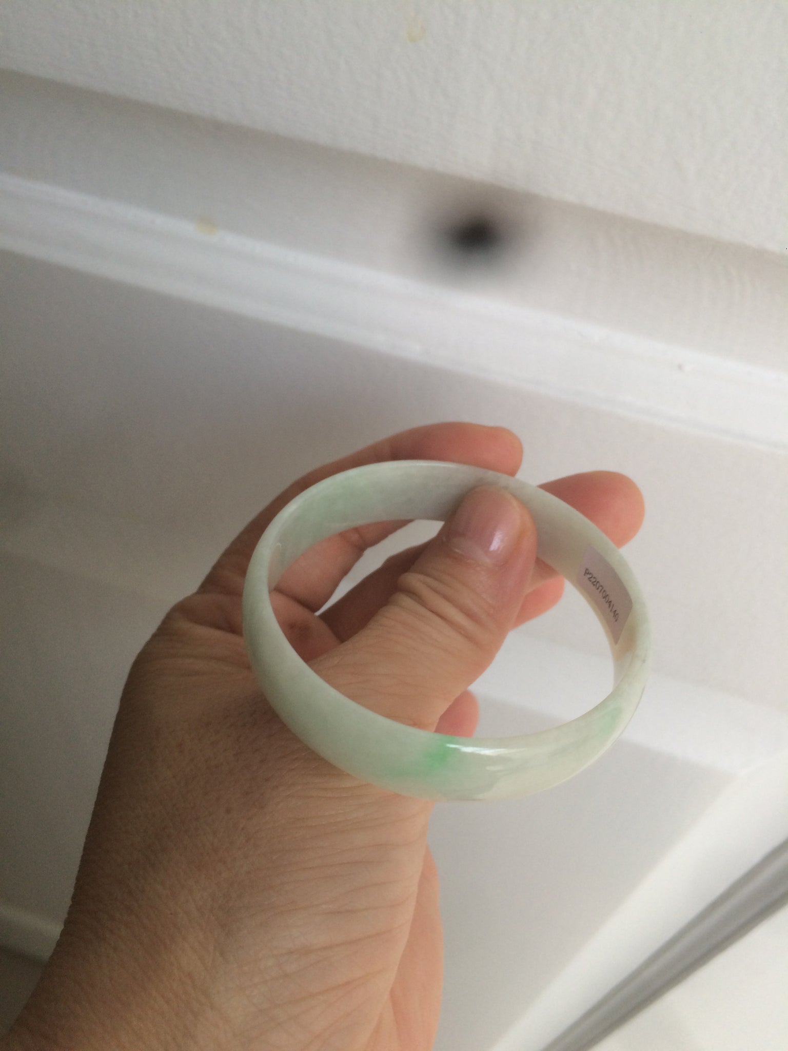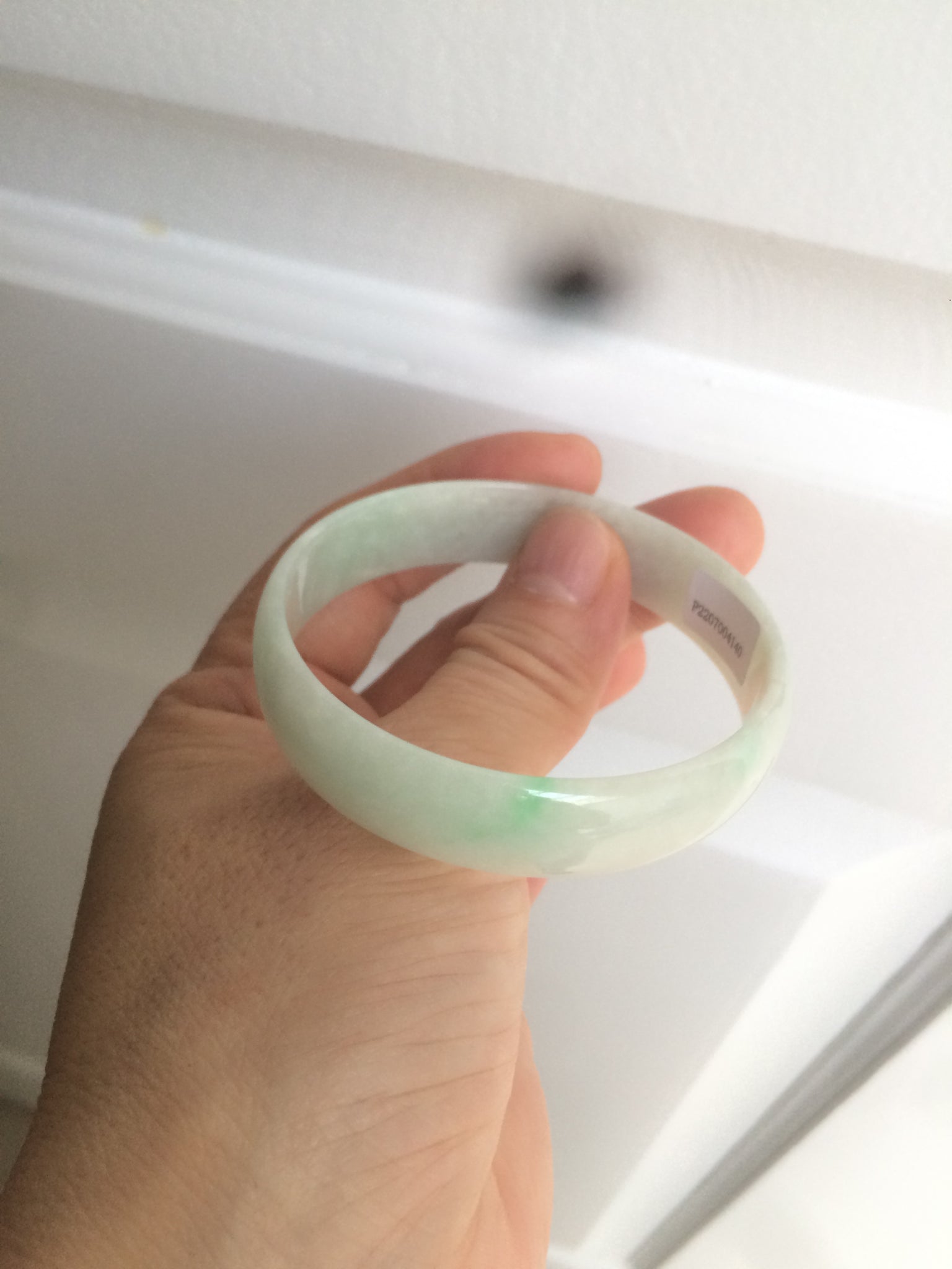 52.9mm 100% natural Type A sunny green/white jadeite jade bangle AQ45-4140